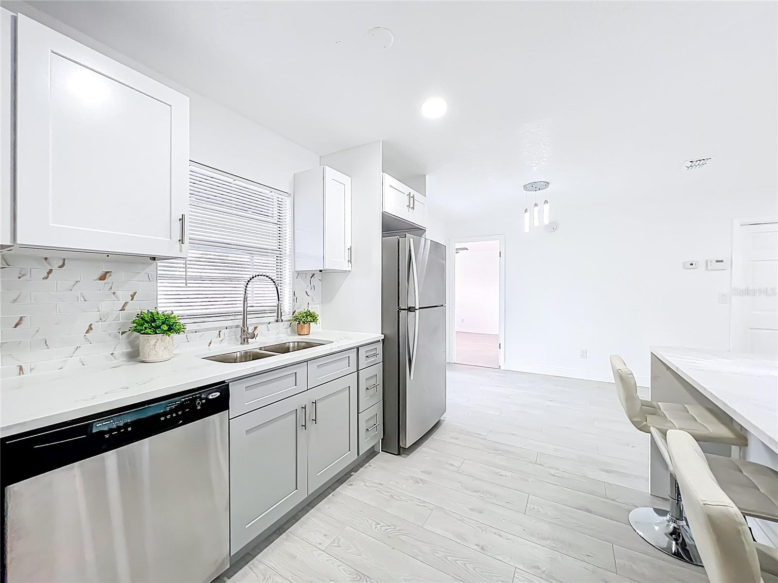 One or more photo(s) has been virtually staged. Closing costs assistance and low down payment available for those who qualify in this 4-bedroom/2-bathroom Home with NO HOA and over $100,000 in recent updates. This completely remodeled home is tucked away in a quiet, sought-after East Orlando neighborhood —offering the perfect mix of modern style, comfort, and convenience. Over $100,000 August 2025 upgrades include: New architectural shingle ROOF, Brand-new KITCHEN & BATHROOMS with luxurious Quartz countertops and top-quality wood cabinets, Premium gray laminate FLOORING throughout, and designer-style CERAMIC TILE tile on wet areas, Fresh interior & exterior PAINT, New privacy FENCE. From the moment you arrive, you’ll notice the beautiful new landscaping and peaceful street setting. Step inside to an open, sun-filled floor plan where the living, dining, and kitchen spaces flow seamlessly—ideal for entertaining or relaxing. The designer kitchen is a showstopper, featuring: Sleek quartz countertops and a 6-seat QUARTZ DINING PENINSULA illuminated by modern pendant lights, High-quality wood cabinetry with ample storage, High-end BACKSPLASH for a refined look, STAINLESS STEEL appliances, Over-the-range CURVED GLASS RANGE HOOD. Both bathrooms exude spa-like elegance with quartz countertops, high-quality cabinets, walk-in showers, and marble-style ceramic tile walls & floors. Enjoy Florida living year-round in the spacious covered lanai, perfect for afternoon relaxation or evening gatherings. The extra-large backyard and front yard make this home ideal for entertaining friends and family. Prime central location—just off Goldenrod Rd. and Lake Underhill Rd.—puts you steps from: Supermarkets, restaurants, shops, banks, hospitals, pet care, salons, schools & more. Within 5–16 minutes, you can reach: AdventHealth Hospital, Orlando Health Hospital, Major Universities: UCF, Valencia College, Full Sail University, Barry University, Major upscale communities: Winter Park, Baldwin Park, Waterford Lakes, Downtown Orlando, Orlando International Airport (MCO), Major Highways: 408, 528, 417, I-4. Entertainment parks such as Universal Studios and Islands of Adventure are just 20 minutes away. This home truly offers it all—modern finishes, a perfect location, and no HOA fees. Don’t wait—schedule your private tour today!