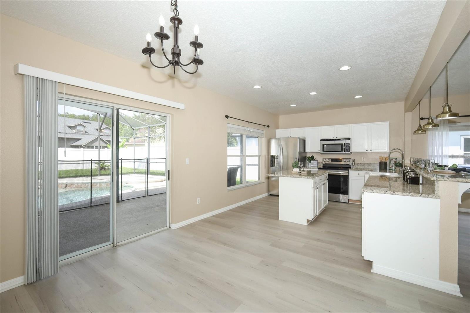 One or more photo(s) has been virtually staged. Welcome to 14255 Squirrel Run, a beautifully upgraded home located in the Glenwood Run village of the man-gated, golf course community of Stoneybrook East in desirable East Orlando. This thoughtfully designed residence offers comfort and functionality from the inside out. A charming front porch leads you into the open-concept living space where the kitchen serves as the heart of the home, featuring a center prep island, pendant lighting, dining counter, beverage cooler, and direct slider access to the covered lanai and screen-enclosed saltwater pool—perfect for indoor-outdoor entertaining. The first floor includes a spacious primary retreat, a convenient half bath, and laundry room for added ease of daily living. Recent updates include new luxury vinyl plank flooring throughout the main level living areas, new carpet on the stairs and second floor. Upstairs you’ll find all secondary bedrooms along with a flexible open loft area, ideal for a home office, playroom, or media space. The fenced rear yard offers additional privacy, and the owned whole-house solar system provides significant energy efficiency. Stoneybrook East is a premier 24-hour man-gated community offering residents access to a junior Olympic-size pool, clubhouse, fitness center, tennis, basketball, and pickleball courts, playgrounds, and walking trails—all within a meticulously maintained setting. Ideally situated in East Orlando, the home is just minutes from Waterford Lakes Town Center, Avalon Park, the University of Central Florida, and major commuter routes including 408, 417, and 528. Highly rated public schools, abundant shopping and dining options, entertainment venues, and a wide range of extracurricular activities make this an exceptional opportunity to enjoy a balanced and vibrant Florida lifestyle. Schedule your private tour today!