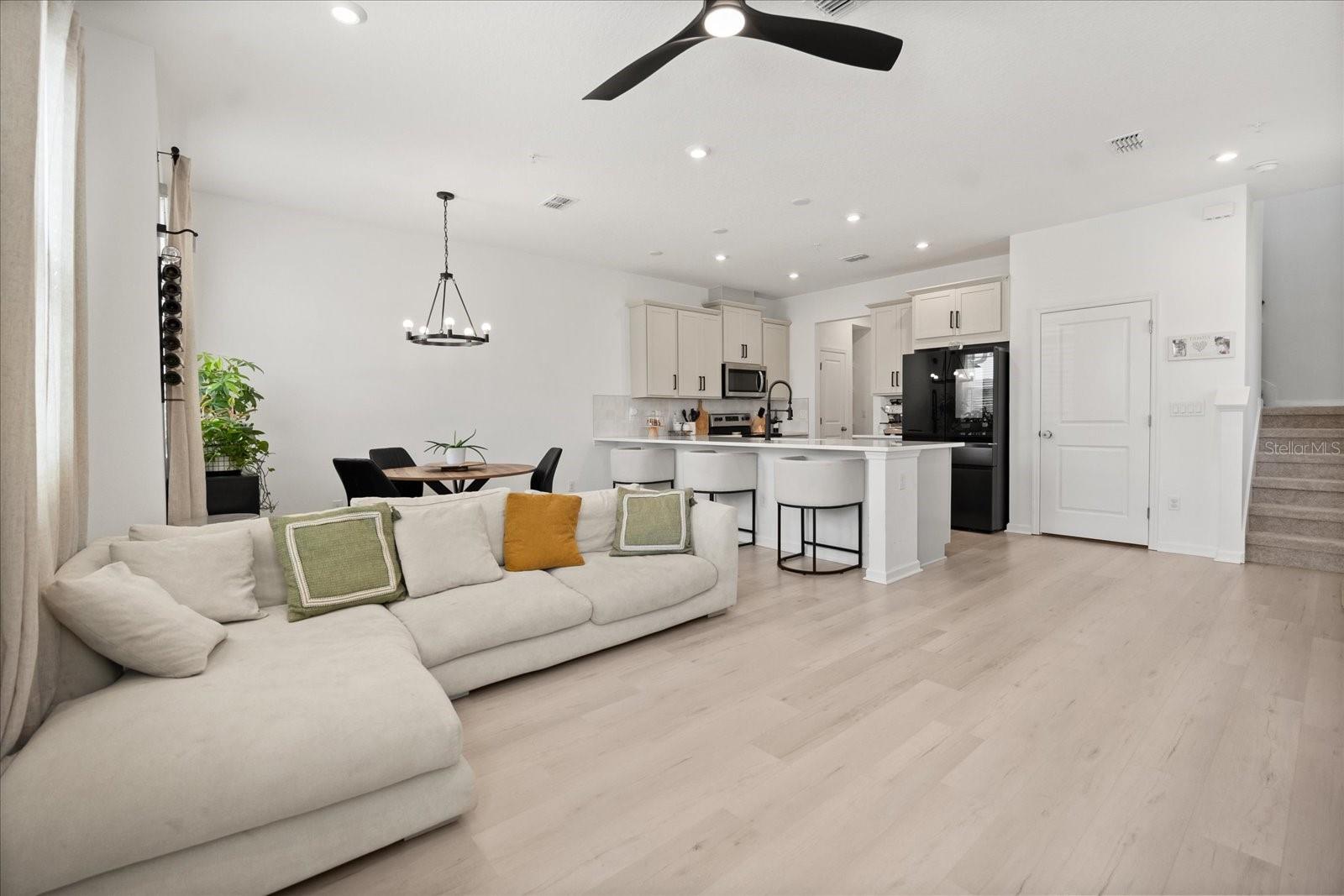 Welcome to 7744 Clove Hitch Way, a stunning 3-bedroom, 2.5-bathroom townhome in the sought-after Meridian Parks community of Orlando, FL 32832. Built in 2024 and spanning approximately 1,659 square feet, this modern corner unit offers contemporary elegance with clean lines, high-end finishes, and an open-concept layout. Step inside to a bright, airy interior featuring sleek quartz countertops, stainless steel appliances, and stylish black accents in the gourmet kitchen—ideal for entertaining or daily living. The spacious living and dining areas flow seamlessly, enhanced by abundant natural light, chic ceiling fans, and luxury vinyl plank flooring throughout the main level. Upstairs, discover a versatile loft space, three generous bedrooms including a luxurious owner's suite with an ensuite bath and walk-in closet, plus additional well-appointed bathrooms with modern fixtures and tiled surrounds. As a corner unit, enjoy extra privacy and a larger outdoor space with a private patio perfect for relaxation, plus a rear-loading 2-car garage for added convenience. The vibrant Meridian Parks community elevates your lifestyle with a resort-style amenity center featuring a one of a kind pool with a splash park for the kiddos, state-of-the-art fitness center, yoga lawn, amphitheater for events, playground, dog park (Paw Park), event lawn with firepit, outdoor art installations, multiple parks and green spaces, walking trails, and a bike share program. Located in vibrant Orlando, you’re minutes from Lake Nona’s shopping, dining, and top-rated schools, with the added bonus of proximity to Innovation High School—ideal for families. Don’t miss out on this exceptional property in Orlando’s booming market—opportunities like this won’t last long, so schedule your private showing today!