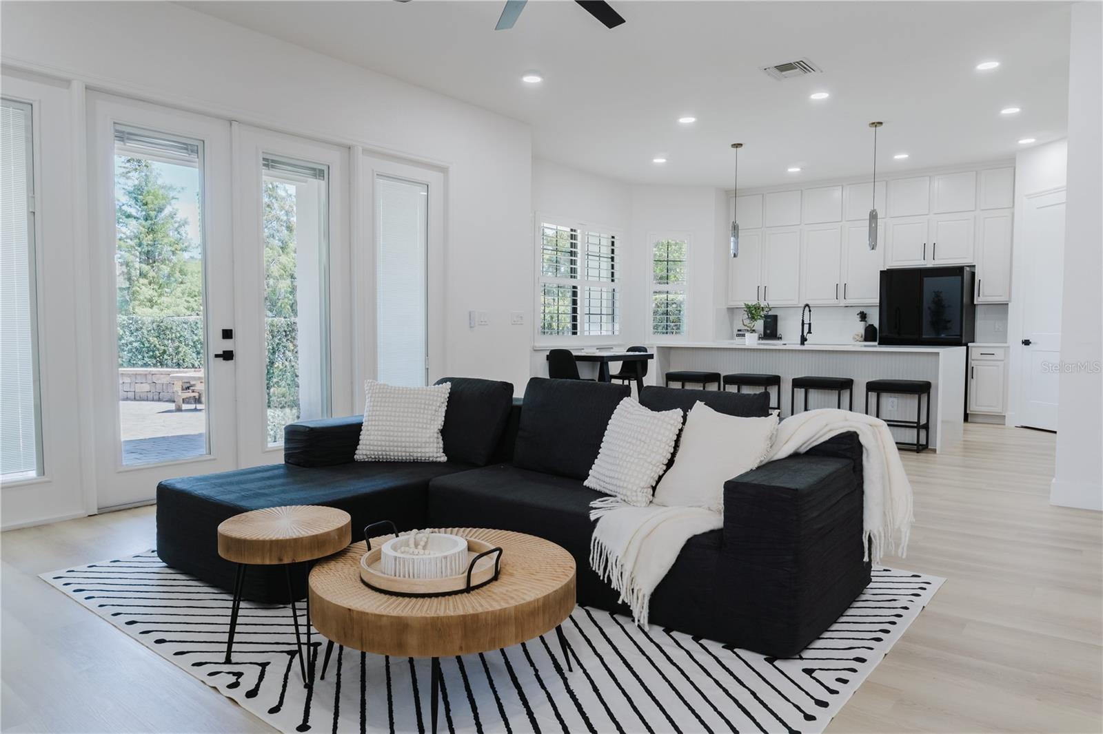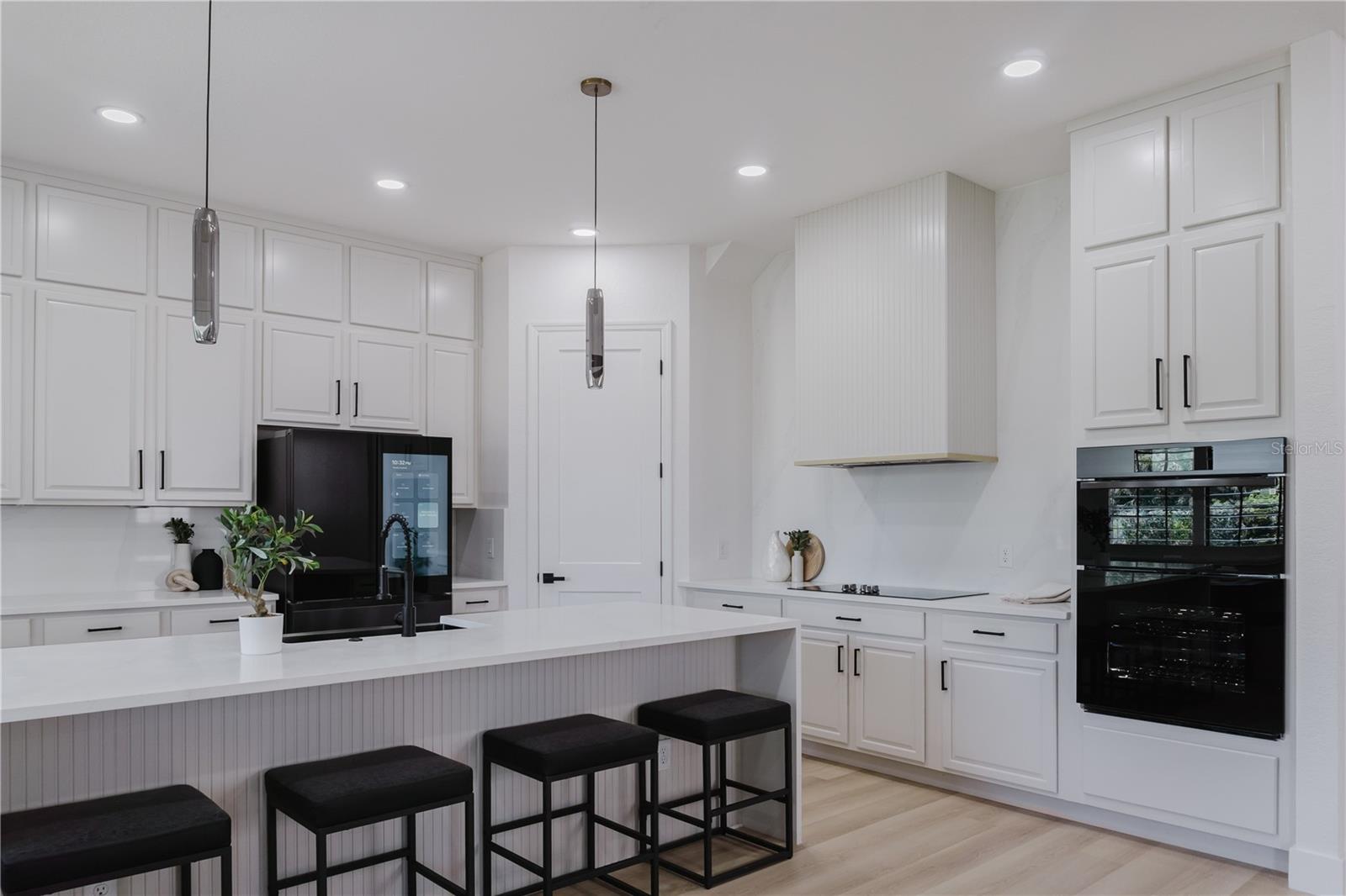 Welcome to this fully renovated, move-in ready masterpiece located within the prestigious guard-gated Eagle Creek golf course community. This custom-designed 5-bedroom, 4-full-bathroom home offers a unique blend of luxury, functionality, and sophisticated style—perfectly suited for modern living and grand entertaining. From the moment you arrive, the welcoming landscaping, quiet street, and curb appeal invite you to stay awhile. Step inside to discover a light-filled, open-concept layout with expansive windows that flood the home with natural sunlight throughout the day. The heart of the home is the gourmet kitchen, featuring premium Samsung appliances, a striking custom range hood, waterfall quartz countertops and backsplash to the ceiling. Whether you're preparing meals for family or hosting guests, this space is designed to impress. Oversized bedroom and full bathroom on the main floor offer ideal flexibility for multi-generational living or a private guest suite. Upstairs, you’ll find all of bedrooms throughout have space to spare. Spa-inspired bathrooms provide comfort and relaxation. Living area is anchored by a beautifully designed fireplace wall, creating a cozy yet refined atmosphere—ideal for intimate evenings or lively gatherings. Step outside to enjoy serene canal water views, all from the peace and privacy of your backyard oasis. New HVAC system, Tesla charging station. Located on a quiet, low-traffic street. Access to Eagle Creek’s premium amenities including golf, clubhouse, fitness center, pools, and more. This one-of-a-kind residence offers the rare opportunity to own a custom, turnkey home in one of the area's most desirable communities. Don’t miss your chance to experience refined Florida living at its finest.