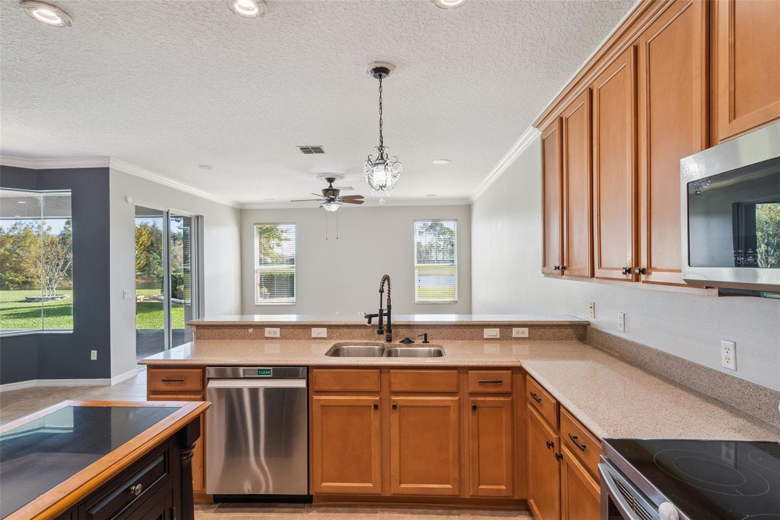 One or more photo(s) has been virtually staged. HUGE PRICE REDUCTION! Welcome to this beautiful 5 bedroom, 2.5 bathroom, 2 car garage home located in the highly sought after 24-hour GUARD GATED GOLF COMMUNITY of Stoneybrook East in Orlando! With almost 3,700 SqFt of living space, WATERFRONT POND and GOLF views, this home offers plenty of upgrading throughout and is MOVE-IN READY! Walking up to the property, you'll notice the meticulously landscaped yard, complete with a new irrigation system, new Pro Vista St Augustine grass, Rain Bird smart irrigation controller, upgraded gutters / French drains, lightning rods with direct grounding, and NEW EXTERIOR PAINT. Roof replaced in November of 2019! Once inside, you'll be greeted by an open floor plan with a separate formal dining room and separate formal living room. The primary suite is located down stairs and features a FULLY RENOVATED LUXURY BATHROOM, jetted tub, walk-in shower, walk-in closets, stone counter dual vanity sinks, and sliding doors out to the screened-in patio! The flooring has been upgraded to WOOD LOOK CERAMIC TILE flooring in the primary bedroom, living room, and dining room. NEWER ENERGY SAVING HYBRID HOT WATER HEATER! Other interior features include new front door, RENOVATED BATHROOMS, new door fixtures, WHOLE HOUSE WATER FILTRATION SYSTEM, Google Nest smart thermostat, upgraded smoke / carbon monoxide detectors, new faucets, epoxy garage flooring, and new hardware. Two HVAC systems with multi-zone control, professional grade OdorStop UV air purifier, and energy saving airflow sensors, keeping the air clean and running the systems efficiently! The kitchen features plenty of cabinetry, counter space, kitchen island, and NEWER STAINLESS STEEL APPLIANCES. The breakfast nook and family room have tons of natural light and provide amazing views over the pond and golf course. Upstairs, you'll find the other three spacious bedrooms, a full bathroom, additional closet space, and the OVERSIZED BONUS ROOM that could be converted to a SIXTH BEDROOM! Huge security upgrades throughout the home as well such as the high security smart lock, Ring doorbell and sensors, Ring exterior security light. The Stoneybrook community offers so many amenities as well such as their CHAMPIONSHIP GOLF COURSE, community pool, fitness center, tennis courts, soccer field, baseball diamond, basketball court, and new shaded playground! HOA dues also include Spectrum internet, phone package, as well as the TV package including most channels, sports, Disney Plus, Paramount, Xumo, 1000 internet, and more! Zoned for TOP RATED SCHOOLS! Conveniently located right next to Avalon Park and Waterford Lakes, offering plenty of different restaurants and shopping! Easy access to FL-408, 417, and 528 as well to get around to other areas of Central Florida. Call now for your private showing!