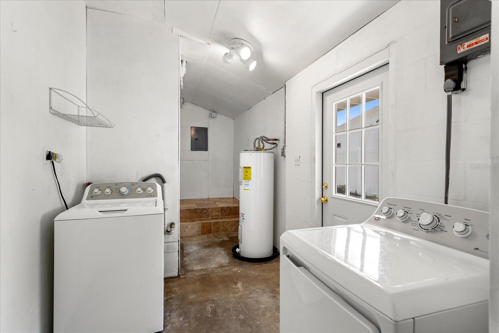 Nestled on a spacious corner lot in the heart of one of Orlando’s most vibrant neighborhoods, this charming 3-bedroom, 2-bath, 2-car garage College Park home offers 1,106 sq ft of well-designed living space—a true rare find! Additionally, the property includes a private workshop and shed offering exceptional storage and functionality. Unmatched location - just steps from top-rated Princeton Elementary, the College Park Community Center and Pool, and only a few blocks from AdventHealth Hospital. Inside, you'll love the thoughtfully designed split floor plan, featuring original hardwood floors, a fully renovated kitchen and bathrooms with travertine tile and stainless steel appliances, and a bonus front room perfect for a home office, playroom, or creative space. The primary suite is tucked away from the other bedrooms, offering a peaceful retreat. Two additional bedrooms on the opposite side of the home are generously sized, ideal for guests. Enjoy evenings in the fenced backyard, perfect for relaxing or entertaining, or sip your morning coffee on the inviting front porch—a nod to College Park’s classic architectural charm. This property stands out with an oversized garage (complete with its own AC), a spacious utility/laundry area, an additional workshop, built-in storage, and a large shed—offering ample space for hobbies, organization, and potential expansion under air. Recent updates include a 2023 Roof, updated electric panel, newer insulation (2014) for added efficiency, hot water tank (2017), and AC (2023). College Park residents enjoy many nearby cultural offerings such as Edgewater Drive shopping and dining, the Packing District, Dubsdread Country Club & public golf course, Jazz Festivals, McRae Art Studios, UCF Downtown & 4Roots Farm. Convenient location to traffic access points, I-4 and downtown Orlando. Truly, this home captures the very best of College Park living!