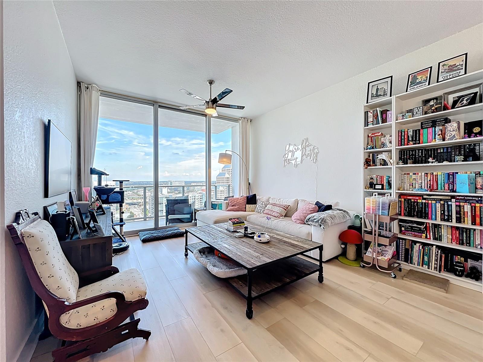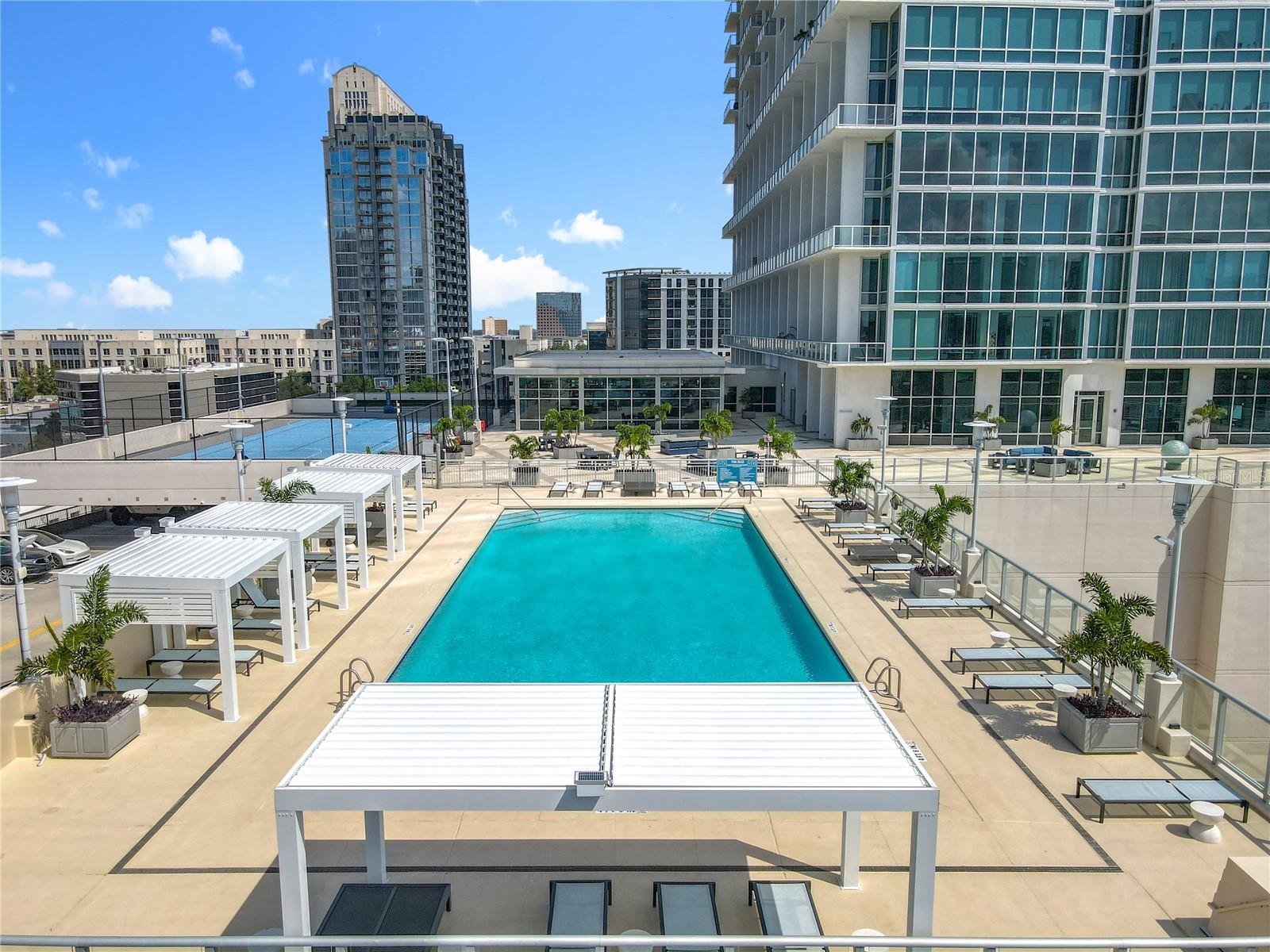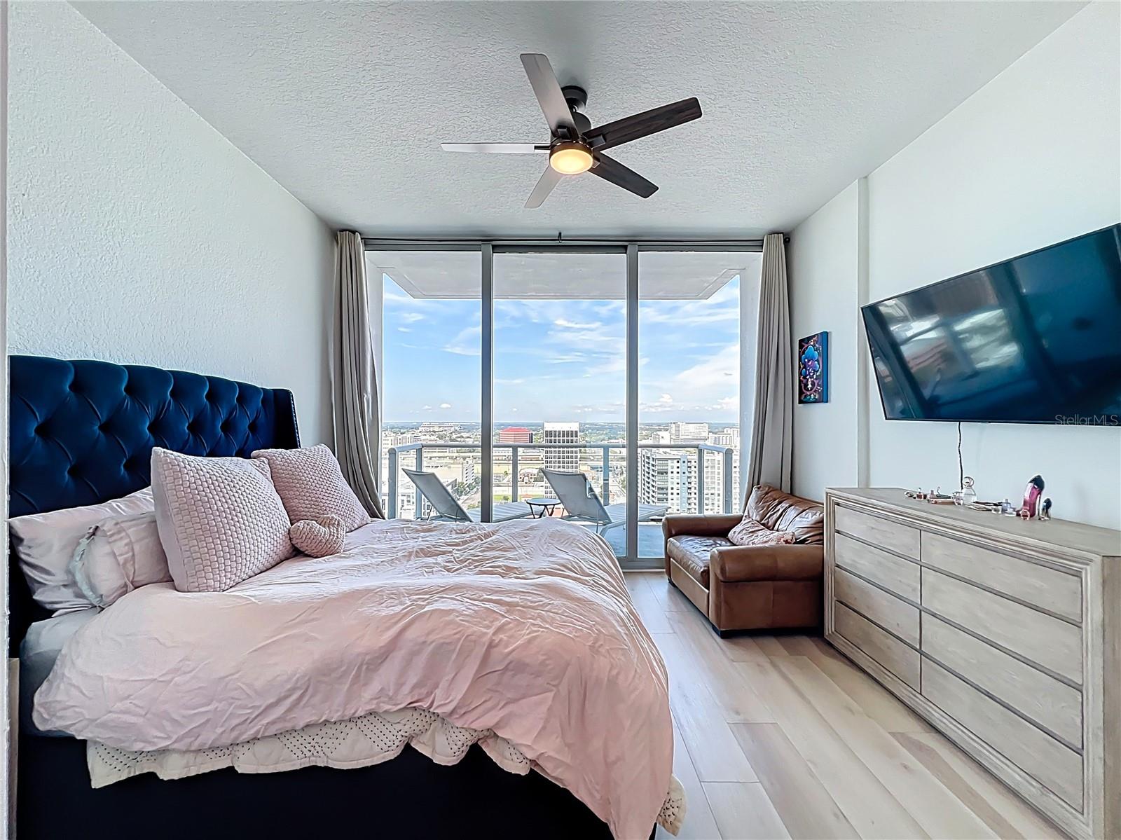 Welcome to The Vue at Lake Eola, Downtown Orlando’s premier luxury high-rise. This upgraded residence is one of the RARE FLOORPLANS in the building, featuring floor-to-ceiling windows in both bedrooms, flooding the home with natural light and offering breathtaking city views. The unit also includes two premium 4th-floor parking spaces (individually transferable and valued at $40–50K each) along with a first-floor storage unit. Inside, the home has been thoughtfully updated with high-end GE Profile appliances, a wine refrigerator, Wi-Fi–enabled oven and washer/dryer, and smart-home features including a Nest thermostat and Level electronic lock. Additional highlights include two private balconies, custom bedroom closets, a spa-like soaking tub, and an extended kitchen island with added storage—features that truly set this residence apart. The structural reserve study has already been completed and fully funded, with no future special assessment anticipated, and the HOA is well funded. The HOA fee includes an exceptional array of amenities and services such as 24-hour guard-gated security, exterior building and grounds maintenance, repairs, on-site management, trash service, and maintenance of common areas. Also included, residents enjoy access to a 30,000 sq. ft. amenity deck featuring a junior Olympic heated pool with cabanas, one of downtown’s largest private fitness centers, tennis and basketball courts, yoga studio, theater/media rooms, cyber café, dog park, clubhouse, community pool, sidewalks, and the exclusive Club Vue Lounge. Additional conveniences include full valet service (the only downtown building offering this), concierge service, EV charging stations, a car wash area, community mailboxes, and multiple outdoor dining and grill spaces. Located just steps from Lake Eola, Publix, coffee shops, dining, and the Sunday Farmers Market, this rare floorplan combines modern upgrades, strong financials, luxury amenities, and an unbeatable walkable downtown lifestyle.