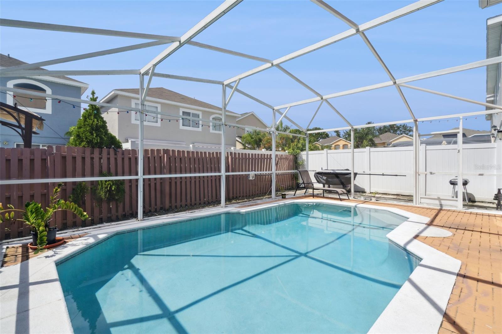 Welcome to this spacious 4-bedroom, 2.5-bath home with a screened and heated pool in the sought-after Sandpoint at Meadow Woods community! Inside, you’ll find an inviting floor plan with laminate flooring in the main living areas, a bright kitchen featuring granite countertops, stainless steel appliances, and a central island that flows seamlessly into the dining and family rooms. Upstairs bedrooms include a generous primary suite with dual vanities, a soaking tub, and a separate shower. Step outside to enjoy your heated private pool with screened lanai and paver patio, perfect for entertaining or relaxing year-round. Recent updates include a brand-new water heater (2025), HVAC (2019), and leased solar panels with transferable lease, providing energy efficiency and valuable savings on monthly power bills. Residents of Sandpoint at Meadow Woods enjoy a community pool with serene lake views, plus a prime location close to supermarkets, restaurants, shopping, major highways, Lake Nona, and Orlando International Airport. Don’t miss this opportunity to own a home that blends comfort, convenience, and modern upgrades in a fantastic location!
