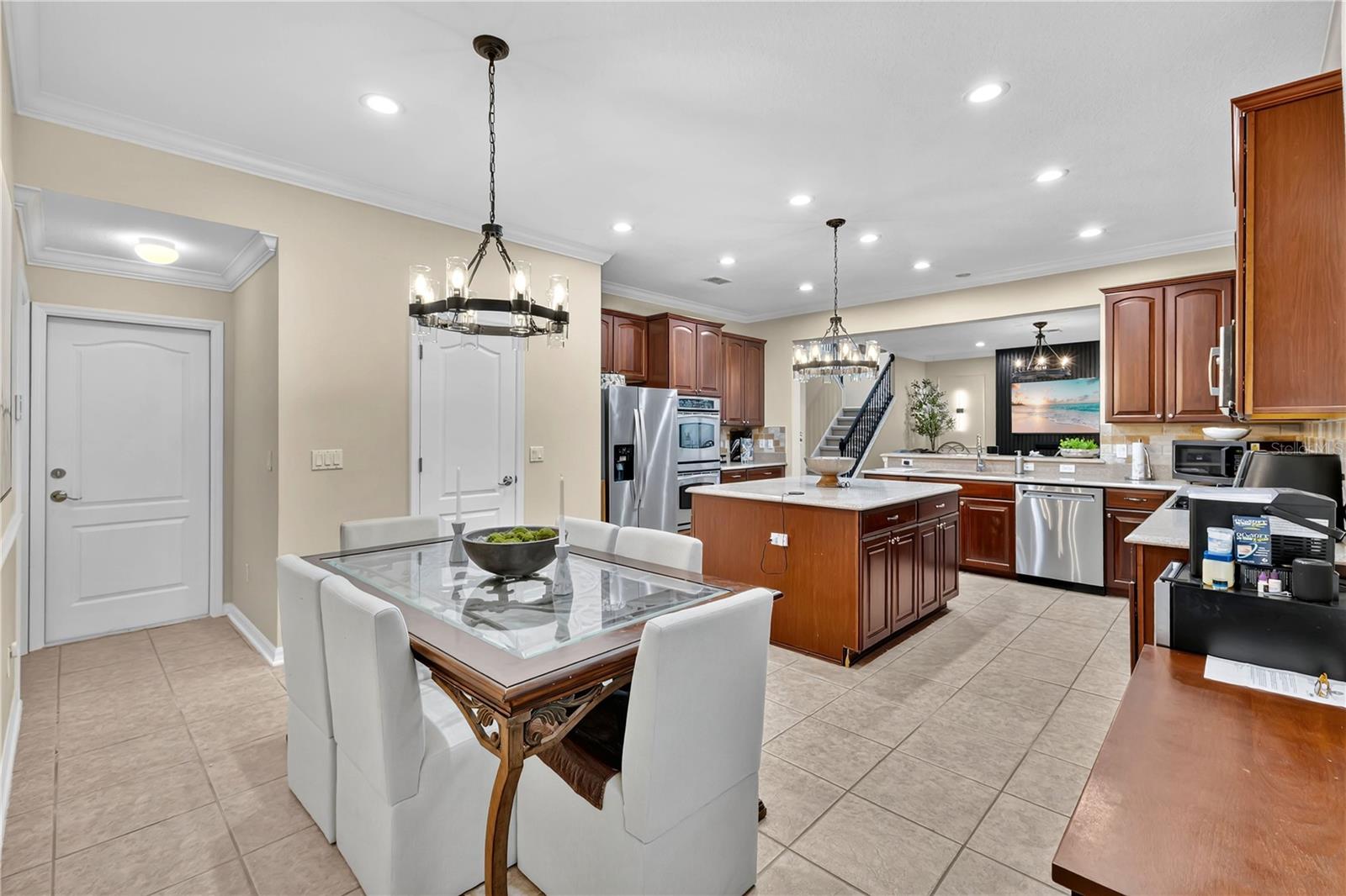 This 6-bedroom, 3.5-bath pool home in the gated North Shore at Lake Hart doesn’t just check boxes — it stretches the list. The curb appeal starts with a clean exterior and three-car garage, but it’s the space and layout inside that really deliver, offering room to grow and a private backyard with no rear neighbors. Step into a sunlit foyer that opens to both the formal living and dining rooms before flowing into the open kitchen-and-family room. The gourmet kitchen is a standout with granite countertops, newer appliances, a breakfast bar, and a walk-in pantry, creating the perfect hub for gathering. Upstairs is where this floor plan shines. Generously sized bedrooms surround a spacious central loft that works as a second living area, retreat, or play space. The primary suite is massive, complete with dual walk-in closets and a bathroom featuring two vanities, a soaking tub, and separate shower. Topping it off is a dedicated home theater with space for true stadium seating — movie nights and game days just got an upgrade. Out back, everyday living shifts outdoors to a wide, covered lanai that stretches the length of the house and a screened-in pool framed by tropical landscaping and total privacy. North Shore at Lake Hart is golf-cart friendly and packed with amenities: an 18-hole golf course, large pool, basketball and tennis courts, baseball field, playground, dog park, fitness center, and scenic parks and trails with charming street lighting, plus direct access to boatable Lake Hart for fishing and water sports. With Lake Nona’s Medical City, the USTA National Campus, Orlando International Airport, and the 417/528 minutes away, commuting is easy and weekends are wide open.