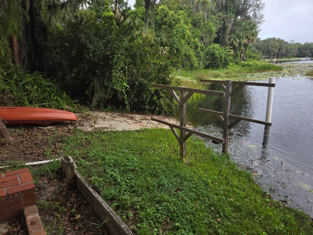 WAIT, WHAT? Yes, that price listed above is correct for this Florida home on Lake Georgia! Not only is Lake Georgia a ski lake, this 4 bedroom 3 bath renovated home is complete with a dock, boat ramp and no HOA! The dock is constructed of pressure treated wood and was rebuilt in 2018. (Dock supports are cemented into pvc pipe.) As you approach the front entry, the 1 car carport is currently being used as a covered front porch. To the left of the entry door is the door to the laundry room. The 165 sq ft air conditioned laundry room is not included in the square footage of the home which is shown as 1770 sq ft. Completely updated kithen with kitchen island, new cabinets, tiled backsplash, new range and refrigerator plus granite counter tops. Wood and tile floors throughout. A wood burning fireplace is in the family room. The primary bedroom has its own private bath (Granite counter top in bath. Tub with shower), walk in closet and a built in closet. The guest suite (4th bedroom) has its own full private bath and double doors that open to the screened patio/the closets were added and are attached. The 2nd and 3rd bedrooms share a full bath (tub and shower) off the hallway. There is a mini split in the primary bedroom and in the guest suite to add to your cooling/heating comfort in addition to the central air/heat system. 2 tankless water heaters (gas), Fenced yard with double gates at the front and rear allows for easy access for you to launch your boat from the boat ramp. Brick pizza oven/grill just outside the fenced area and a kayak/canoe storage rack at the waters edge next to the dock. Enjoy every morning sunrise while sipping your coffee in the rear screened paito. This home has a terminte bond that was renewed this year. Storage shed on the property plus extra storage closets in the laurndry room too. Room measurements and dock measurements are approximate. Buyer will need to verify all room measurements and schools.