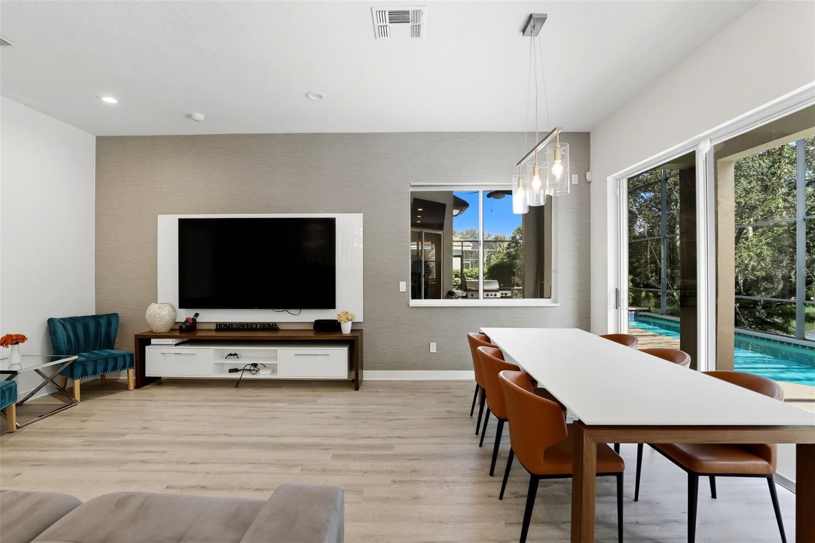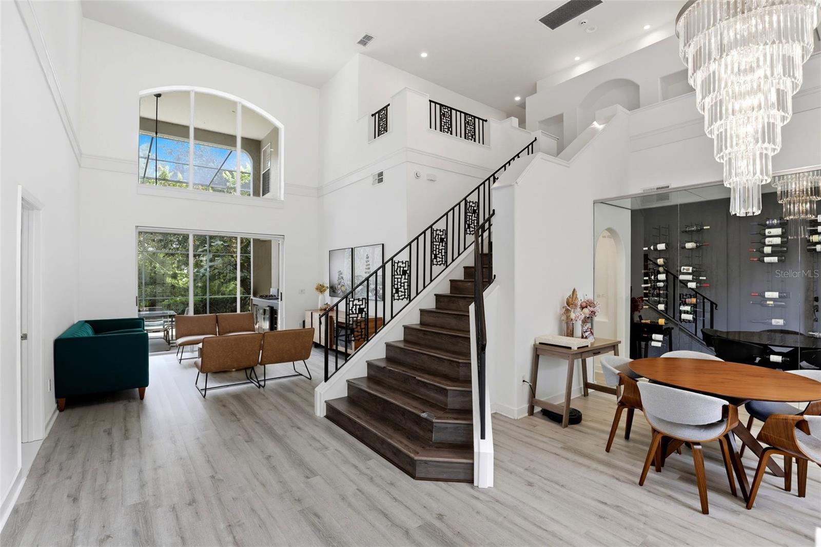 Welcome to 8955 Heritage Bay Circle, a luxurious residence located in the prestigious guard-gated community of Phillips Landing – Heritage Bay, in the highly sought-after Dr. Phillips area of Orlando. This exceptional 5-bedroom, 4.5-bath home with 3,528 square feet of living space was designed with elegance, comfort, and entertaining in mind. Perfectly positioned on a ¼-acre conservation lot with serene pond views, the property offers a rare combination of privacy and resort-style amenities. From the moment you arrive, the curb appeal is undeniable. A brick-paver driveway, wrought iron entry gate, and manicured landscaping set the tone for what awaits inside. Step into the foyer and you’re greeted by soaring ceilings, crown molding, custom paint, Venetian plaster finishes, and abundant natural light that enhances the home’s open and distinctive floor plan. The residence features formal living and dining rooms, ideal for hosting gatherings, as well as a spacious family room that flows seamlessly into the gourmet kitchen. Appointed with Corian countertops, premium appliances, a breakfast bar, and ample cabinetry, the kitchen is the heart of the home. An adjoining dinette overlooks the pool and lanai, creating a perfect space for casual dining. The primary suite is located on the main floor, offering a peaceful retreat with generous dimensions, walk-in closets, and a spa-inspired bathroom featuring a garden tub, dual vanities, and a separate shower. Upstairs, you’ll find three additional bedrooms, two full baths, and a versatile loft with built-in desk, ideal as a study or creative space. A private office with its own half bath and closet can also serve as a fifth bedroom, providing flexibility for guests, a nursery, or multi-generational living. Step outside to your personal paradise. The expansive covered and screened lanai boasts a full summer kitchen with Jenn-Air grill and sink, perfect for al fresco dining and entertaining. The highlight of the backyard is the spectacular 60-foot heated lap pool with spa, enhanced by a saltwater system, child safety fence, and peaceful views of the pond and surrounding conservation area. Whether you’re hosting friends or enjoying a quiet evening, this outdoor oasis is sure to impress. Additional features include plantation shutters, California closets, tinted windows, trey ceilings, custom draperies, and tile roof construction for durability and style. The property also includes central air, ceramic tile flooring, an attached garage, and thoughtfully designed details throughout. Living in Phillips Landing means access to exclusive community amenities, including 24-hour manned security, tennis courts, playground, and recreational facilities. The location is unbeatable—just minutes from world-class dining on Restaurant Row, upscale shopping, major highways, and Orlando’s famed attractions, while also being zoned for top-rated schools including Bay Meadows Elementary, Southwest Middle, and Dr. Phillips High. This home embodies the best of Florida living: luxury, convenience, and community. Don’t miss the opportunity to make this exceptional property your new home. Schedule your private tour today and experience the lifestyle you’ve been dreaming of.