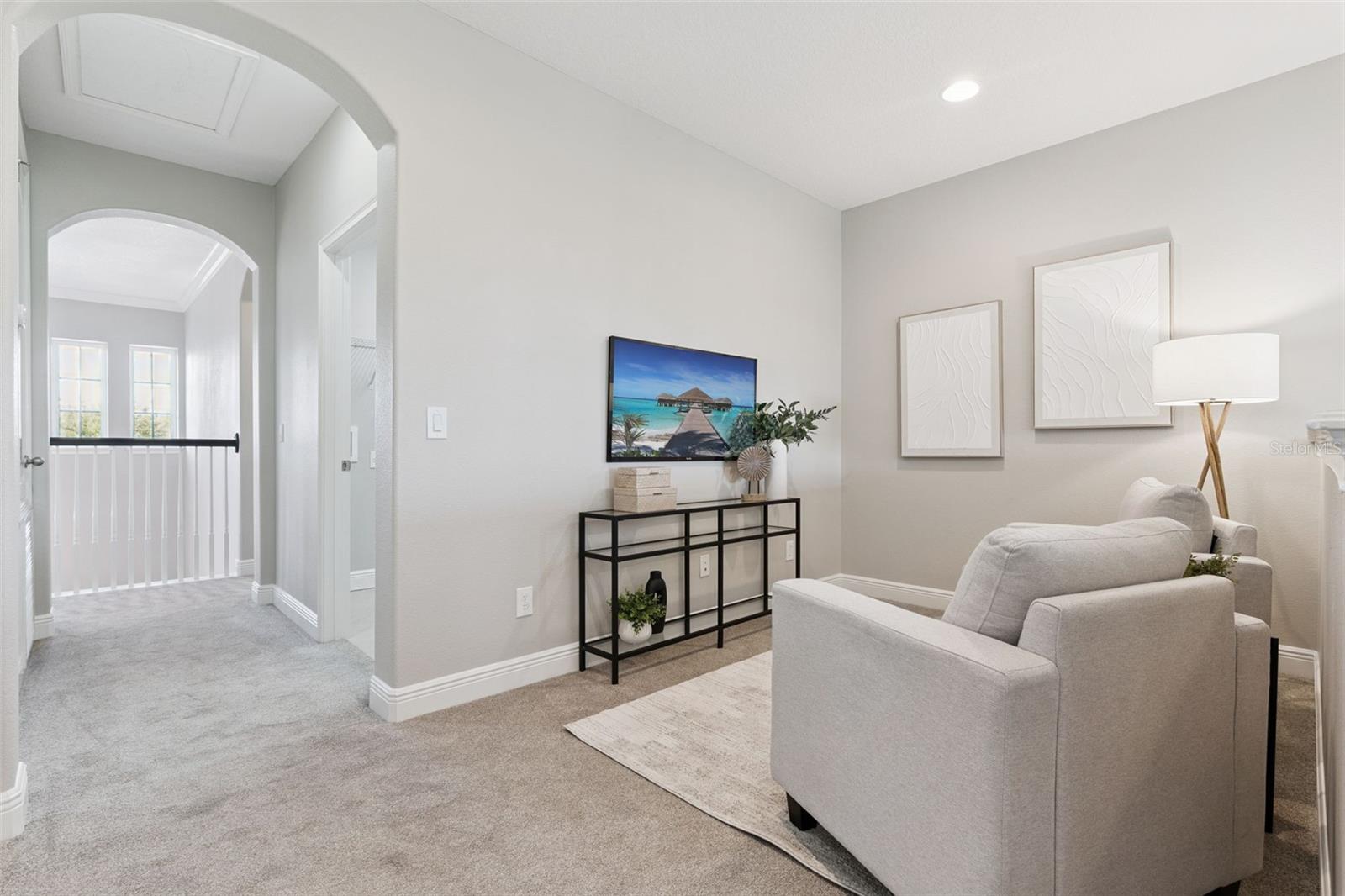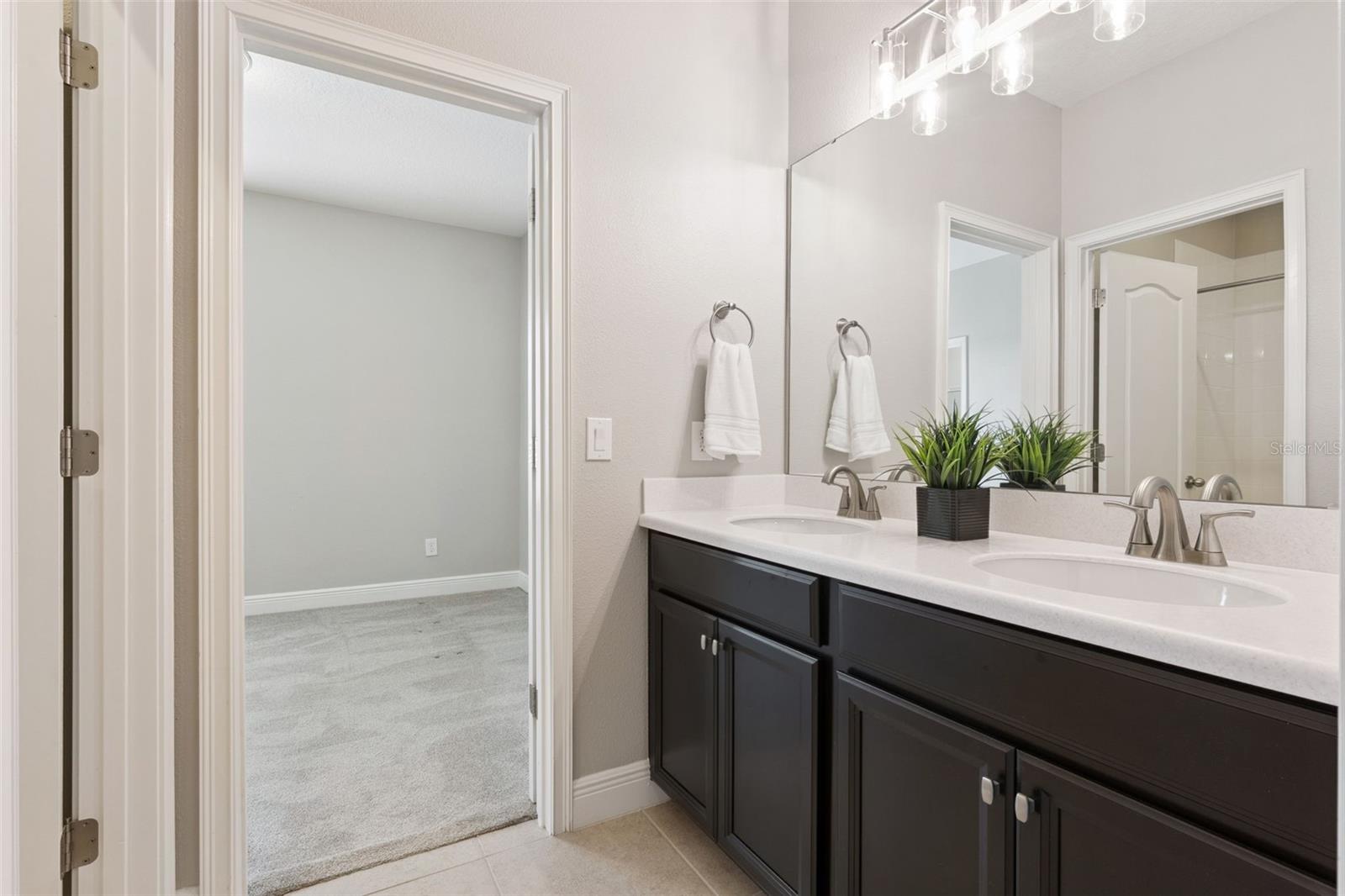 ***8246 Bellow Street | Modern Elegance Meets POOL AND Resort-Style Living*** Located in Laureate Park this Immaculately maintained and beautifully designed, two-story 4 bedroom, 3.5-bath home offers 2,731 square feet of sophisticated living space with warm, inviting interiors and a stunning private backyard oasis. From the moment you enter, soaring ceilings in the foyer and family room create dramatic architectural sight lines and an immediate sense of openness and light. The open floor plan flows seamlessly into the modern kitchen featuring newly and professionally painted cabinetry, sleek quartz countertops, a large center island, matte black fixtures, and a reverse osmosis water system—perfect for both entertaining and everyday living. Upstairs, all four bedrooms are thoughtfully situated for comfort and privacy, along with a cozy loft that provides the perfect spot for a reading nook, study area, or casual lounge. The serene primary suite features a spa-inspired bath with new tile flooring in the shower and a charming Juliet balcony, while two of the secondary bedrooms share a Jack and Jill bath and the fourth bedroom enjoys its own private en suite. From the back of the home, an additional outdoor balcony overlooks the lush tropical backyard, where a sparkling saltwater pool and spa take center stage amid vibrant, mature landscaping that creates the ultimate private retreat. Designed for both style and relaxation, the home also offers a covered lanai ideal for morning coffee or evening gatherings. Perfectly positioned just a short walk to Laureate Park Elementary and minutes from Lake Nona’s Town Center, Medical City, and dining, 8246 Bellow Street captures the best of modern design, meticulous care, and resort-style Florida living.
