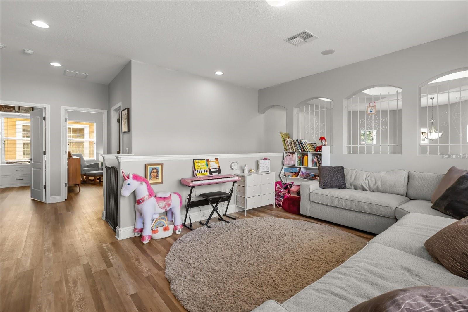 WELCOME HOME TO VISCAYA! — Guard-Gated Luxury in the Heart of Dr. Phillips. Welcome to this exceptional residence in the prestigious, guard-gated community of Vizcaya, where timeless elegance meets modern comfort. This home offers 4 bedrooms, 3.5 baths, a private study/den, a versatile bonus room, and a screen-enclosed pool and spa, creating the perfect sanctuary for refined living and effortless entertaining. Recent upgrades: including a new roof (2024), Upstairs HVAC (2022) water heater (2022) and new flooring in the upstairs and primary suite (2022), a new pool pump (2025), updated garage door opener (2023), and designer light fixtures throughout. The third bedroom was also upgraded in 2022 with a custom built-in queen Murphy bed and integrated shelving, combining functionality with sophisticated design. Step through the grand double-door entry into a dramatic foyer crowned with soaring tray ceilings—a stunning introduction to the home’s bright, spacious interiors. The formal living room is ideal for showcasing fine furnishings, while the elegant dining room, complete with a built-in wine and serving bar, is ideal for entertainment. The gourmet kitchen is a chef’s dream, featuring a large center island, built in double ovens, stainless steel appliances, a breakfast bar, and a casual dinette area, all overlooking the inviting family room. Expansive French doors open to a covered lanai and the tranquil screened-in pool and spa, offering a seamless blend of indoor and outdoor living. The luxurious first-floor primary suite provides a serene escape with a spacious sitting area and private lanai access. The spa-inspired bath showcases an oversized walk-in shower, garden soaking tub, and dual vanities, creating a retreat that exudes relaxation and style. Upstairs, a sunlit loft offers flexibility for work, play, or leisure, accompanied by three generously sized bedrooms. One with it's own en-suite! Each designed with comfort and sophistication in mind. Viscaya is ideally positioned within walking distance to Restaurant Row, upscale shopping, and renowned top schools, this residence embodies the best of Orlando’s luxury lifestyle—LOCATION, LOCATION, LOCATION.