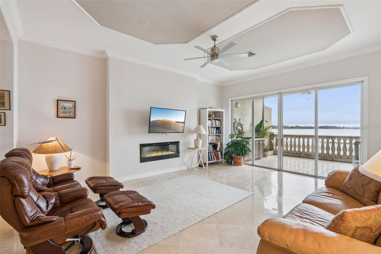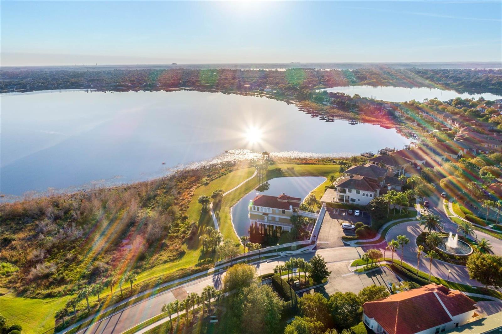 Welcome to this beautifully maintained 2-bedroom, 2-bathroom condo in the highly sought-after Vizcaya community of Dr. Phillips, a prestigious Mediterranean-style development surrounded by the tranquil waters of Big Sand Lake, Little Sand Lake, and Lake Serene. This beauty offers the perfect blend of elegance, comfort, and modern upgrades — all set against breathtaking panoramic lake views. Step inside to find gorgeous tile floors, trey ceilings, detailed crown molding, and designer lighting that adds warmth and sophistication throughout. The open-concept living area was thoughtfully updated, with the builder’s original TV wall replaced by a sleek flat wall featuring a custom electric fireplace for added ambiance. The kitchen has been enhanced with new kitchen appliances, and updated plumbing — ideal for those who love both form and function. New AC unit installed 2026. The guest suite features a newly installed window, ceiling fan, and renovated bath with new faucets and plumbing. The primary suite boasts its own serene retreat with updated dual sink faucets, and refinished under-sink plumbing. Additional home improvements include soundproofed ceilings, a Solace Air Protector and Filter system, cleaned and regulated air ducts and electric panel, and a refreshed dryer vent — ensuring both comfort and peace of mind. This condo combines luxury, practicality, and a lifestyle defined by stunning water views, privacy, and proximity to Orlando’s best dining and entertainment. Just minutes from Universal Studios, International Drive, Disney and downtown Orlando, you are in the heart of all Orlando offers. Wait until you see this unit! Don't wait to make these views yours.