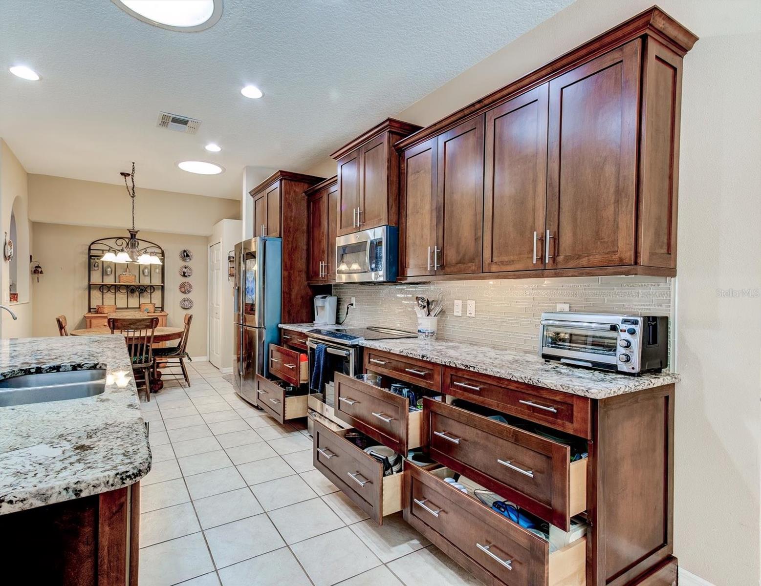 One-of-a-kind pool home in Stoneybrook with spectacular lot – a paradise of privacy! Don’t miss out on this opportunity to own a home that feels like you’re living on acreage all by yourself in the most beautiful tropical surrounding while enjoying the safety, vibrancy, and comforts of being in one of the most desired neighborhoods in East Orlando. This 4 bedroom, 2 bathroom home impresses upon driving up to it: located in a cul-de-sac with a newly pavered driveway on a lot that opens up toward the back facing a conservation area with stunning beauty. Entering the house you are greeted by a formal sitting and formal dining room to either side of you featuring large windows and bathing the home in Florida sunlight. As you make your way through the house you will find the beautifully remodeled kitchen in the heart and center with a large, over-sized island, all new cabinets, granite countertops, stainless steel appliances, and a fridge with all the bells and whistles. The bright kitchen enhanced by large skylights does also have the space for a breakfast nook for cozy meals in this open floor plan. The family room is right off the kitchen with a gorgeous view to the outside and plenty of room. The split floor plan boats the main bedroom to your right and was thoughtfully expanded offering a huge primary bedroom experience with en-suite bathroom. To your left-hand side are two of the other bedrooms both of which are also expanded. The second bathroom serves as the pool bath allowing for easy access from the pool to the bathroom. The 4th bedroom is located at the front of the house by the formal sitting room. And to top off the list of customizations in this extended house, the original owners also expanded the garage – so plenty of space for all your needs! This well-maintained single-story home is a gem in itself but the heavenly outdoor area and perfect location make this home an unparalleled sanctuary of beauty and privacy! It might just be the best location in the whole neighborhood! With a sparkling pool, spa, and plenty of outdoor sitting space, a screen enclosure and a view that is to die for, you will enjoy your time in the great outdoors in style, comfort, and privacy. For your furry friends, one side of the yard is fully fenced for convenience. The recent upgrades include a newer roof (2020), A/C (2022), and brand-new dishwasher, reverse osmosis water filtration system, pool filter and filter housing (all 2025). Also brand-new flooring in one of the bedrooms and master bedroom closet. Located in the highly desirable, guard-gated community of Stoneybrook, you'll enjoy access to world-class amenities including a state-of-the-art clubhouse, a fully equipped fitness center, a large community pool, a playground, a vita-course, sports fields, basketball courts, tennis courts, pickleball courts and walking trails. Within the guarded gates at Stoneybrook you will feel safe and at home while enjoying A-rated schools this area is zoned for. Shopping, UCF, MCO Airport, and many of Central Florida’s major employers are close by and access to 528 as well as 417, and 408 is quick and easy. Don’t miss this once in a lifetime opportunity to become a part of Stoneybrook – a place like no other!