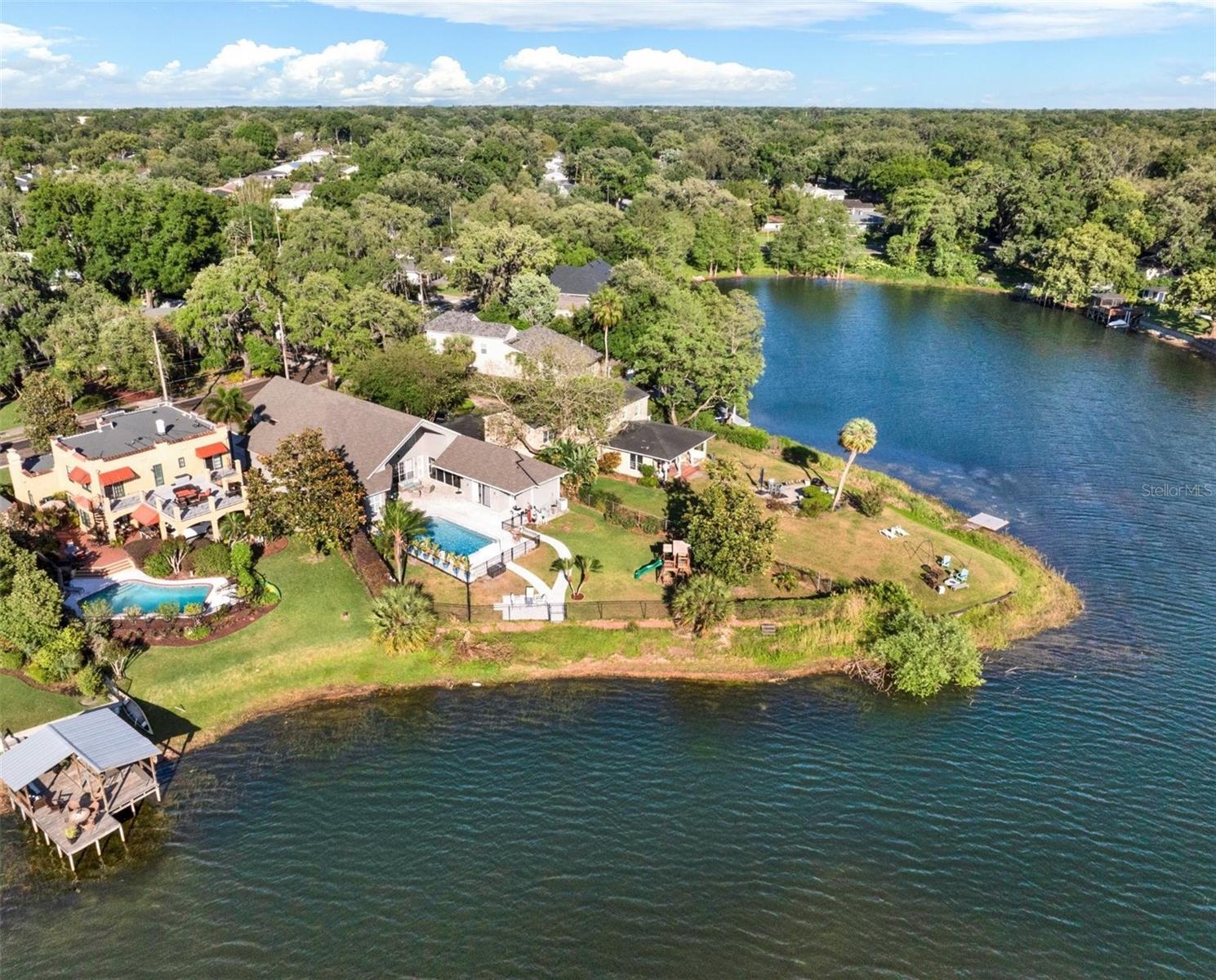 Gorgeous Custom Home on Lake Lancaster, Now Available! Located in the Highly Desirable Blankner/Boone School District. This amazing property boasts 100 ft of Lake Frontage on a 1/2 Acre Lot. This lake is perfect for paddleboarding, fishing, jet skiing, and more. Inside of the home you'll find 4 large bedrooms, a small office, and a Huge Upstairs Bonus room. There's also an Attached Pool House with a full bathroom & kitchenette, that would be ideal for use as an In-Law Suite (ground level, no stairs), or even a Short-term Rental if you're looking for an Income Stream. Interior features and amenities include: Engineered Wood Flooring, Crown Molding, Chair Rail, Brick Accent Wall, Surround Sound, updated master & guest bathrooms, New Flooring in the pool house & bonus room (2024), and more. The Gourmet Kitchen offers Granite Counters, Stainless Steel Appliances, Gas Range, Double Ovens, Breakfast Bar, and Center Island. Other Upgrades include: New Roof (2020), New A/C units (2025 & 2021), Pool Resurfaced (2022), New Paver Pool Deck (2022). This home also has an Oversized 2 car Side-entry, with Additional Bay for Storage (currently used as a tackle room... bring your rods). The central feature of this home, however, is the Outdoor Space. This backyard was made for Entertaining all your closest friends/family, with Plenty of Room to Spread out in one of several outdoor areas: Covered patio area, Uncovered patio, Heated Pool/Spa, Massive lake-facing lawn, or the Secluded Patio Sitting Area at the water. Wherever you are, you'll experience some of the Most Breathtaking Sunsets in all of Orlando, and Great Views of the Downtown Skyline. This location, school zone, lot size, and lake frontage are truly unique. Don't miss your opportunity to secure this amazing Lakefront Lifestyle. Schedule your private showing today!