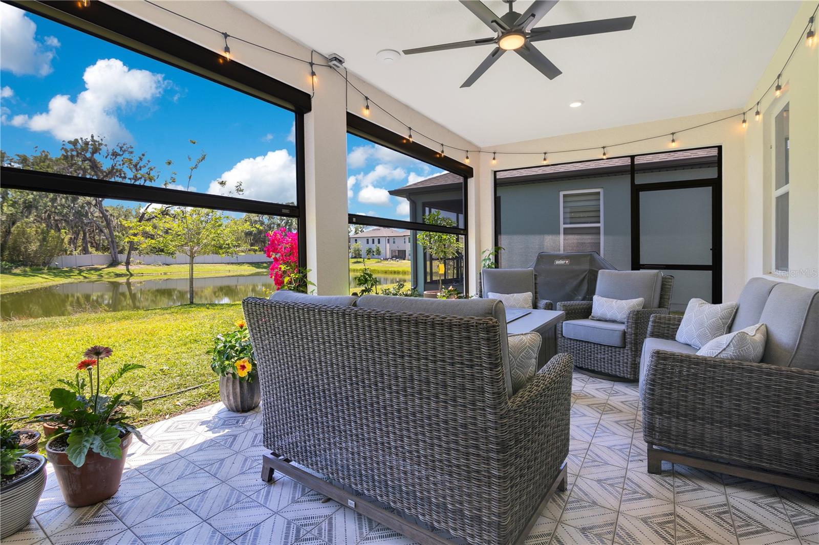 SELLER TO CONTRIBUTE $10,000 TOWARDS BUYER'S CLOSING COSTS. This stunning four-bedroom, three-bathroom Ashton Woods home is a modern masterpiece in the heart of Orlando! Located near the University of Central Florida, top-rated shopping, dining, and entertainment, this nearly new home showcases sleek design, premium upgrades, and thoughtful details throughout. Step inside to an open and inviting floor plan designed for both entertaining and everyday living. The bright and airy living area features large windows that fill the space with natural light. The gourmet kitchen boasts stainless steel appliances, quartz countertops, soft-close cabinetry, and a large navy-blue island, perfect for meal prep and gathering. The spacious and inviting family room, featuring soaring walls that create an open, airy feel. and a built-in electric fireplace serves as the centerpiece, adding warmth and character to the space. Enjoy water views from the upgraded dining area or unwind on the extended covered lanai, complete with tile flooring, two motorized screen enclosures, and market lights for year-round outdoor living. Upstairs, the luxurious primary suite offers a true retreat with a soaking tub, dual vanities, and a walk-in shower with multiple shower heads. Three additional spacious bedrooms provide ample comfort and flexibility, while the downstairs bedroom and bath offer the ideal setup for guests or multi-generational living. This home is filled with high-end upgrades, including engineered wood flooring in all bedrooms, Philips HUE smart lighting, motorized blinds, two Nest thermostats, Yale electronic keypads, a whole-house water filtration and softener system, reverse osmosis in the kitchen, and whole-home surge protection. Exterior enhancements include seamless gutters, upgraded landscaping, and a soon-to-be-installed backyard fence for added privacy. Additional features include upgraded elevation and structural additions, fiber internet, POE home security system, whole-house wireless access points, and updated A/C capacitors—ensuring comfort and convenience in every detail. Move-in ready and perfectly located, this home truly combines luxury, technology, and Florida living at its best!