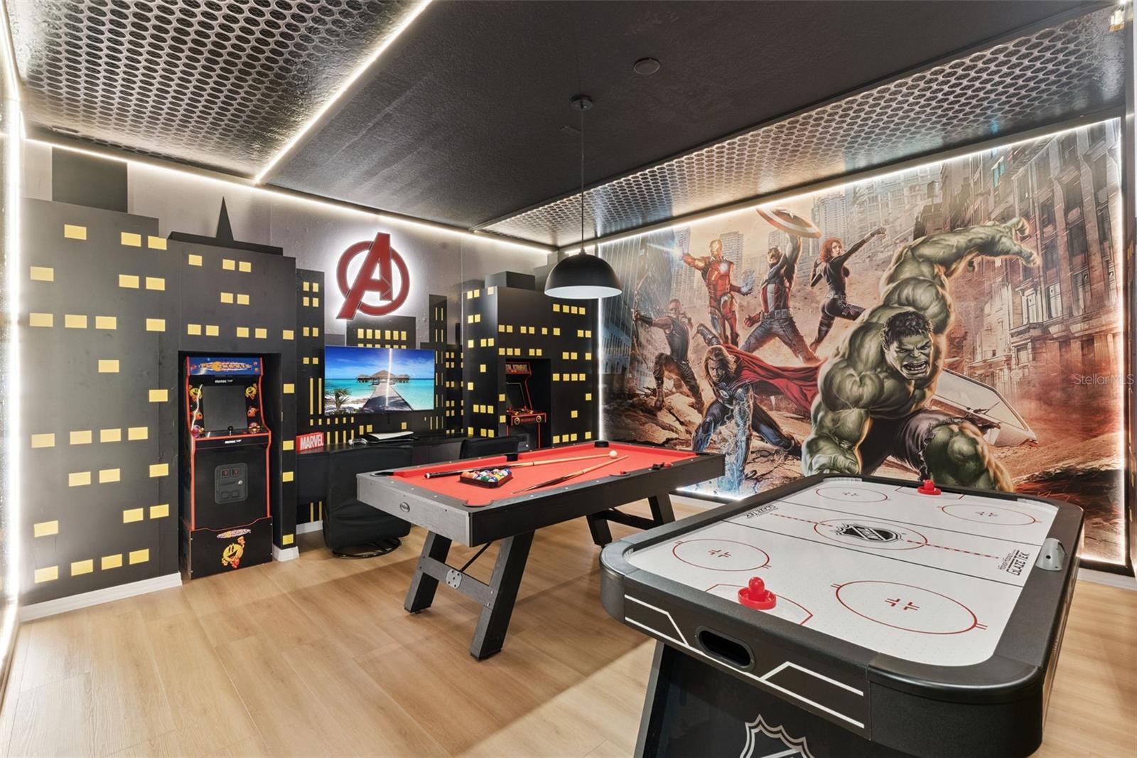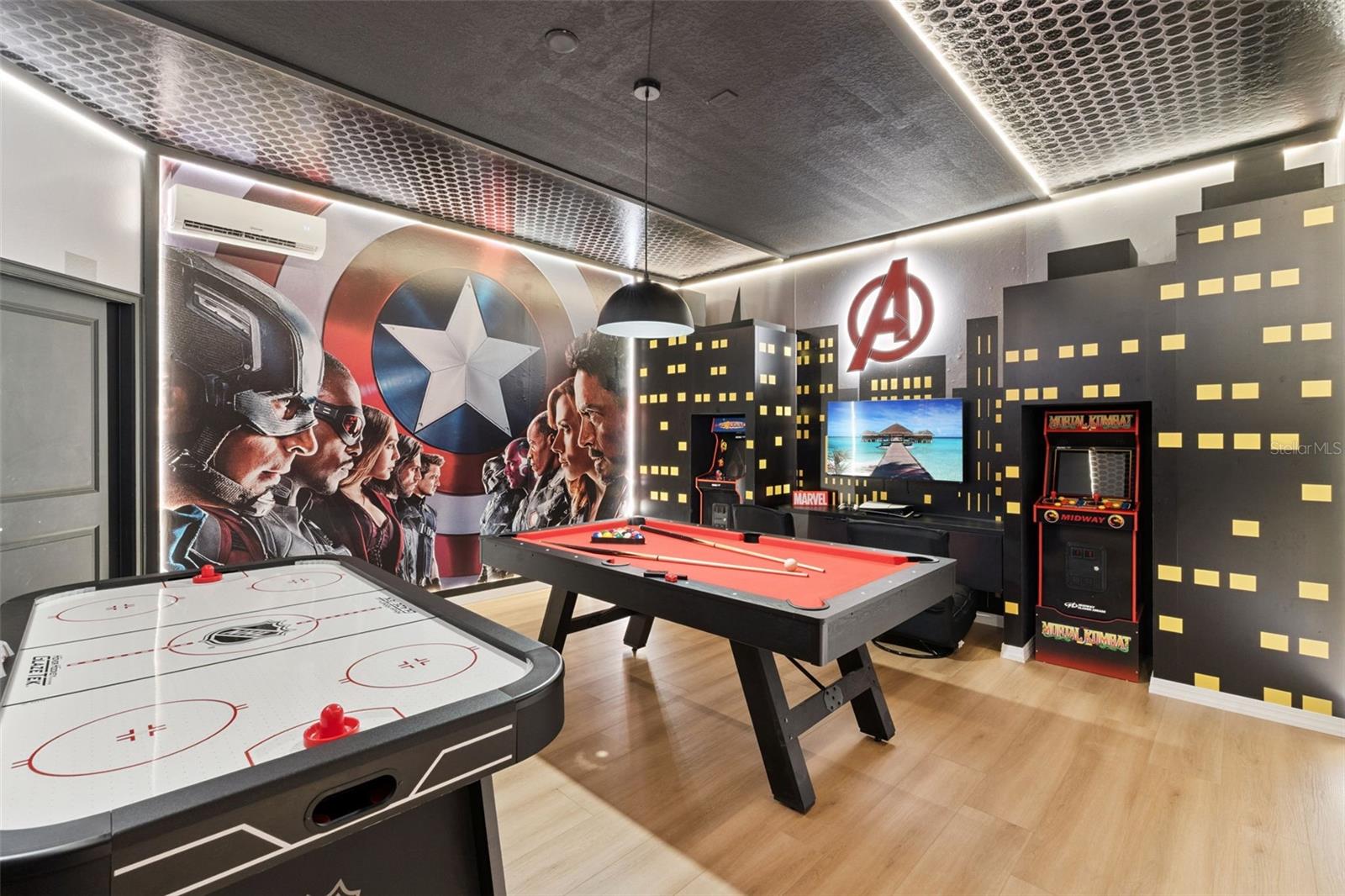 Spectacularly themed and fully furnished, this end-unit townhome in the sought-after Paradiso Grande Resort is truly one-of-a-kind! Designed to impress both guests and investors alike, this stunning 5-bedroom, 5-bath residence offers over 1,900 sq. ft. of beautifully curated living space, featuring nearly $150,000 in custom décor and design upgrades that make it a standout among Orlando’s luxury vacation homes. Step inside to discover a world of imagination and style — from meticulously designed themed bedrooms that delight guests of all ages to the professionally decorated open-concept living and dining area that blends modern elegance with a fun, resort-like atmosphere. Every space has been thoughtfully crafted for both comfort and wow factor. The garage has been transformed into a fully air-conditioned game room, providing additional entertainment and making it ideal for rental appeal and guest enjoyment year-round. Outside, enjoy your private heated pool with spa jets, perfect for relaxing after a day at the parks or entertaining family and friends. As an end-unit, this home offers extra privacy and natural light, enhancing its premium feel. Located within Paradiso Grande, the only vacation-home community situated right on International Drive, residents and guests have access to world-class resort amenities — including a tropical swimming pool with lazy river, state-of-the-art fitness center, and on-site convenience market. Just minutes from SeaWorld, Universal Orlando, the Convention Center, and the endless dining, shopping, and entertainment options of International Drive, this property combines unbeatable location with top-tier design. Whether you’re seeking a turnkey short-term rental investment or a luxurious vacation retreat, this spectacular home delivers the ultimate Orlando resort experience. Paradiso Grande – where unforgettable memories and exceptional returns meet.
