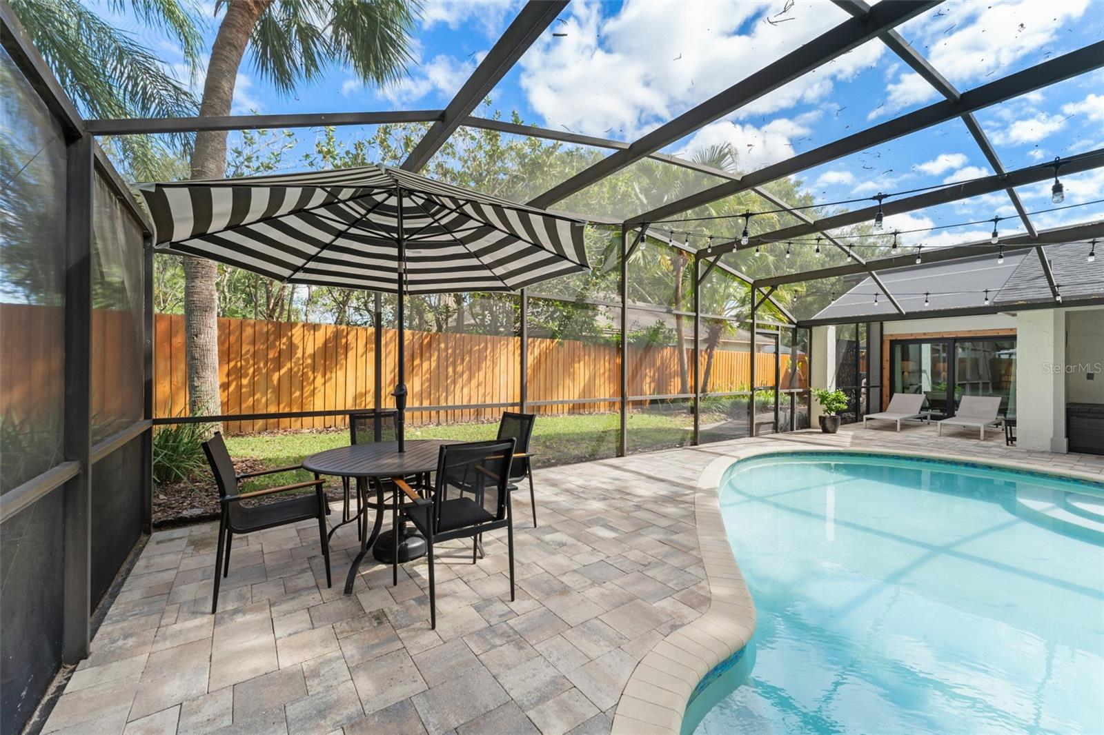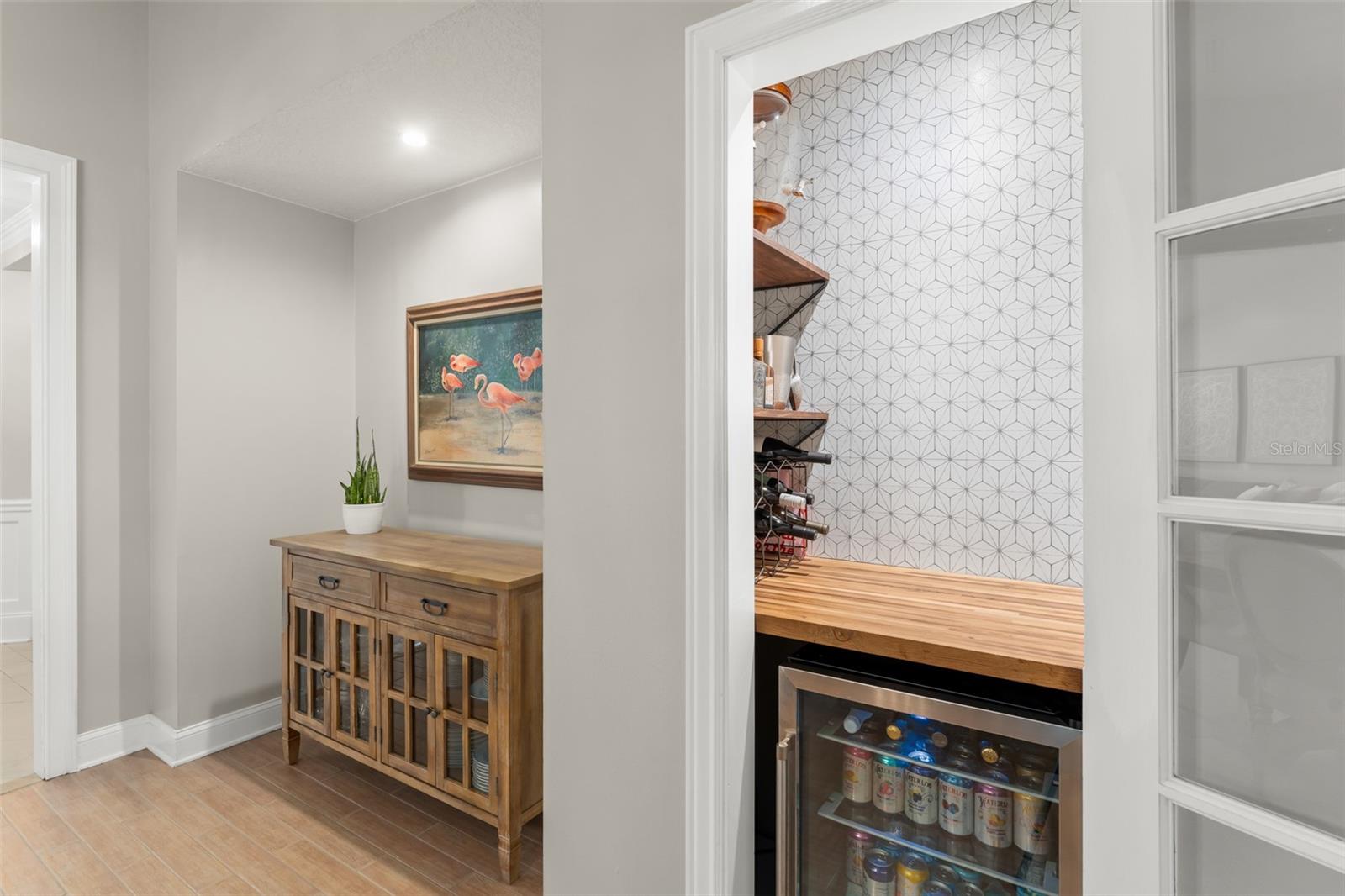 Enjoy refined Florida living in this spacious 3-bedroom, 2.5-bath pool home with office, just a 5-minute walk from Bay Hill Golf Course—home of the Arnold Palmer Invitational. The split floor plan includes separate living, dining, and family rooms. New dual-pane, energy-efficient windows and sliding doors fill the interior with natural light. The kitchen features granite countertops, a new LG refrigerator, and a walk-in pantry with a beverage station. In the dining room, a built-in bar is tucked away with a wine refrigerator—perfect for entertaining. The laundry room includes a stainless steel utility sink, cabinetry, and a closet for additional storage. The primary suite opens to the pool and patio and features dual vanities, a California Closet system, and a spa-style walk-in shower with rainfall head. The office includes a skylight and built-in wardrobes for flexible use. Enjoy professional landscaping and a private backyard oasis shaded by mature trees, featuring a screened-in, heated saltwater pool, paver deck, outdoor shower, and convenient cabana bath—perfect for year-round relaxation. Additional highlights include a 2020 architectural shingle roof and a two-car garage with epoxy-finished floor. North Bay is a golf cart–friendly community with tennis courts, a low quarterly HOA, and zoning for top-rated Dr. Phillips schools. Just minutes from Restaurant Row and Orlando’s premier theme parks, this home offers the perfect blend of comfort, style, and location.
