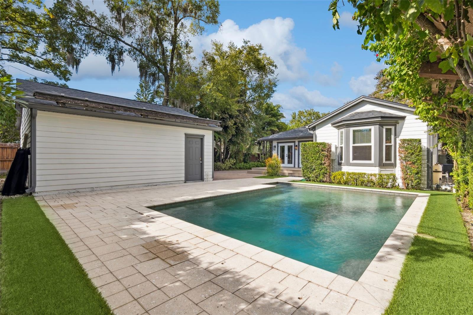 Charming 1939 Craftsman bungalow in walkable College Park with a side-entry porte-cochère and oversized detached two-car garage! Inside, the updated kitchen features new stainless steel appliances, wood and granite countertops, and plenty of storage, flowing seamlessly into a large family room with French doors opening to a polywood deck and pool—perfect for the Florida lifestyle. The split floor plan offers three bedrooms, including a spacious primary suite, and an oversized indoor laundry adds extra convenience. Additional updates include refinished hardwood floors, plantation shutters, new AC (Oct 2025), freshly painted interior/exterior (2025), roof (2019), tankless water heater (2023), reinforced foundation with full encapsulation (2024), and a transferable termite bond. Just steps from Edgewater Drive shops, Publix, dining, and parks, with easy access to downtown Orlando, Winter Park, the airport, and area theme parks.