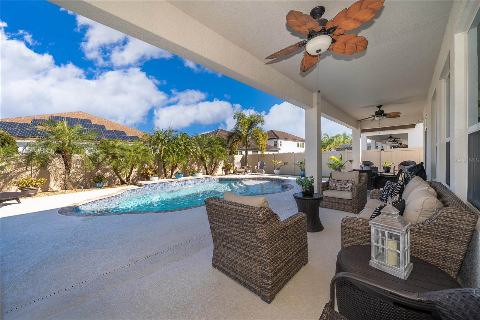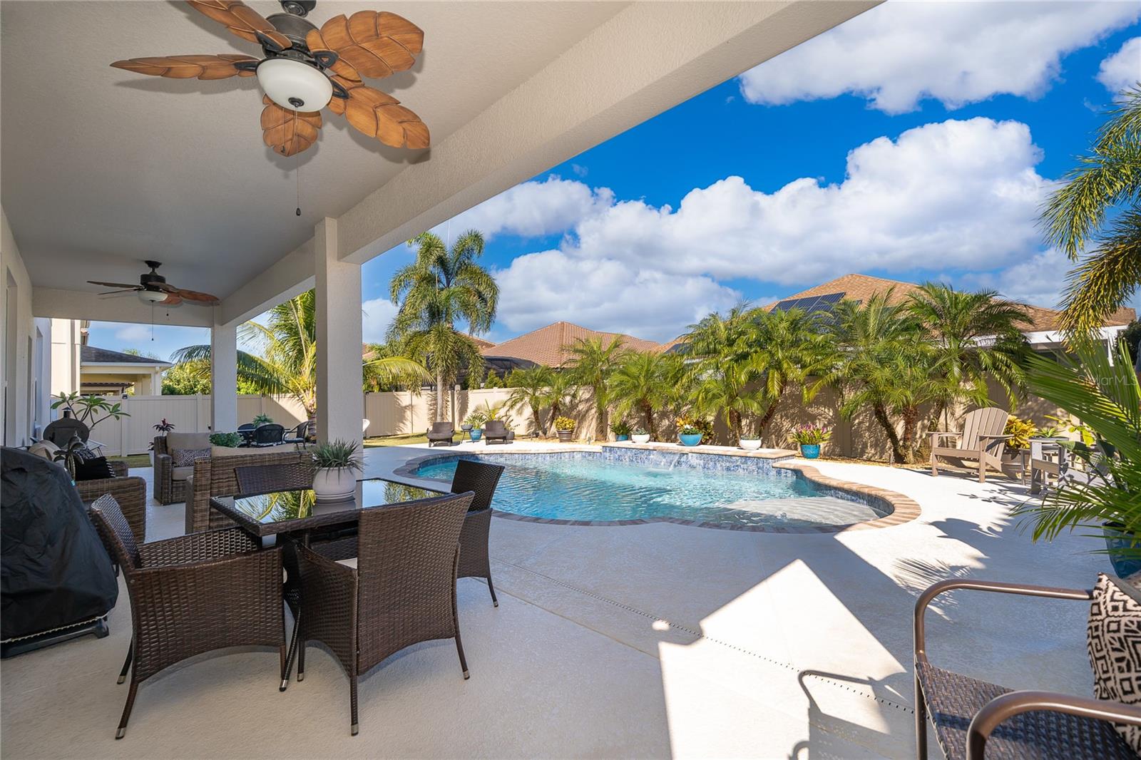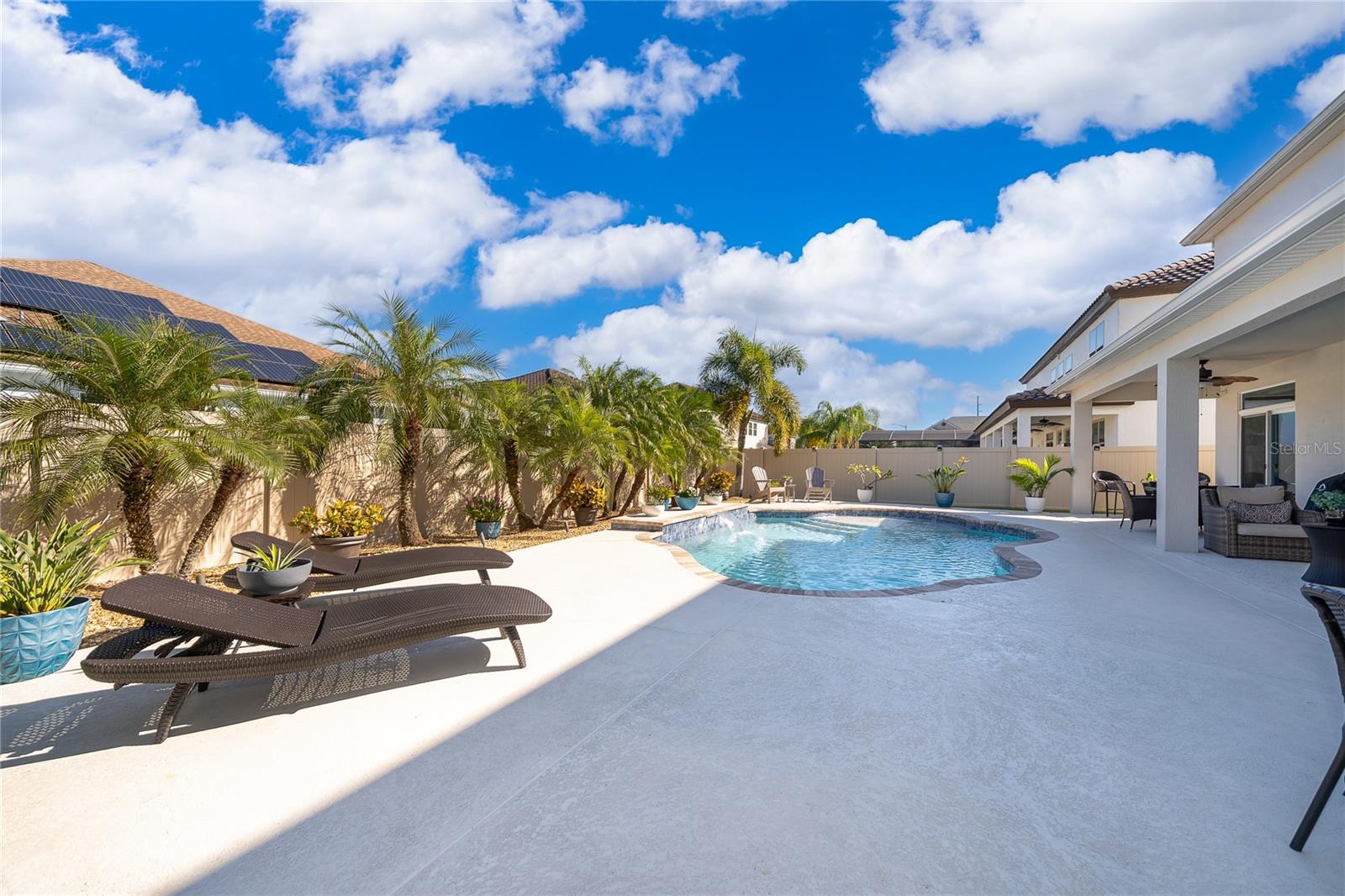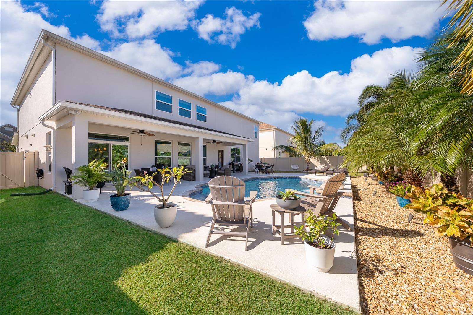 Experience luxury living in the sought after Fells Landing community of Lake Nona with this stunning 5-bedroom, 4-bath home featuring a private office and home theater. Meticulously maintained and thoughtfully upgraded, this residence offers the perfect blend of elegance, comfort, and modern efficiency. Recent enhancements include a 2021 PVC privacy fence, 2022 solar panel installation (leased and transferable), brand-new 2022 pool, and new appliances including washer and dryer. The home was freshly painted in 2023, with one of two A/C units replaced the same year for optimal comfort. In 2024, two 40-gallon water heaters were added, ensuring convenience for every household need. Inside, you’ll find an inviting open layout with high ceilings, abundant natural light, and refined finishes throughout. The gourmet kitchen is a chef’s delight, boasting stainless steel appliances, granite countertops, custom cabinetry, a center island with breakfast bar, and a walk-in pantry. The spacious primary suite offers a tranquil retreat with a spa-like bath featuring dual vanities, a soaking tub, and a large walk-in closet. Located in the heart of Lake Nona, Orlando, this exceptional property offers the ideal balance of modern sophistication and family-friendly living—just minutes from top schools, shopping, dining, and medical facilities.