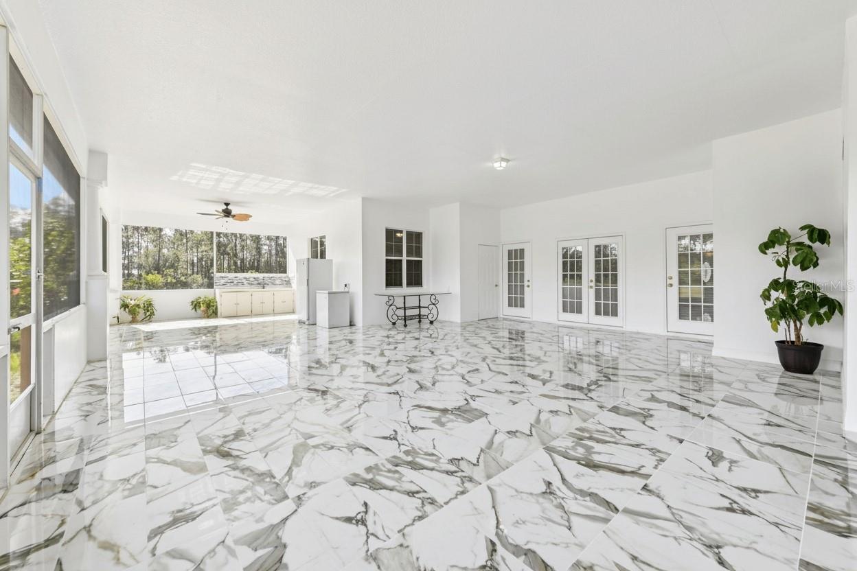 One or more photo(s) has been virtually staged. Dreams do come true! Welcome to your private slice of paradise in Wedgefield! This impressive custom-built estate offers over 5,000 square feet of living space with 6 bedrooms and 6 bathrooms, beautifully set on 4.77 acres and zoned A-2, so you can bring your horses, goats, chickens and more. Built in 2004 and well-maintained, this property blends peaceful country living with modern convenience and community amenities, including an 18-hole golf course, playgrounds, sports courts and nearby Hal Scott Preserve for hiking, biking and nature lovers. A 5-foot wrought iron fence spans the 360-foot front yard with a 20-foot wrought iron electric gate and pedestrian gates on either side, while the rest of the property is enclosed with 5-foot wire fencing- ideal for animals and added privacy. The enormous front and back yards are perfect for play, gardening, entertaining and enjoying the quiet setting, and the 288 sq. ft. Tuff Shed provides excellent additional storage. Step up to the Shark Coating front porch and through the double-door entry into a grand foyer that sets the tone for the rest of the home. Gorgeous inlaid porcelain tile flows throughout the first-floor living areas, and arched vaulted ceilings add volume and elegance. To one side of the foyer is a welcoming sitting room, and to the other, a formal dining area ready for large gatherings. The spacious, open kitchen anchors the main level with granite countertops, a granite breakfast bar, recessed lighting, abundant cabinetry and a huge walk-in pantry. The open concept layout connects all the spaces, giving you endless options for arranging living, dining and entertaining spaces to suit your lifestyle. On one side of the main floor you will find a guest bedroom with its own private bathroom featuring a Jacuzzi tub with shower - great for visiting guests or multi-generational living. The opposite side of the home hosts two individual office spaces, each with its own exterior entrance and one with a half bath, creating an ideal setup for remote work, home-based business, studio or hobby spaces. The main floor primary suite is a true retreat, complete with a tranquil sitting area and separate dual walk-in closets. The expansive primary bath offers a glass-enclosed shower, luxurious Jacuzzi garden tub and dual vanities, giving you a spa-like experience at home. French doors from the main living area open out to an approximately 1,100 sq. ft. screened lanai with porcelain tile flooring and a peaceful forest view. This impressive outdoor living area includes counter space with cabinets, a sink and a convenient half bath - perfect for hosting parties, enjoying quiet mornings with coffee, or relaxing after a long day without ever leaving your property. Up the grand curved staircase, a loft area opens to a balcony overlooking the front yard, giving you yet another beautiful space to relax or gather. Four additional bedrooms extend off the loft, two on each side, and each pair of bedrooms is served by a bathroom with a Jacuzzi tub and shower. One of the upstairs bedrooms features its own private sunroom, adding even more flexible living space for a reading nook, playroom, workout area or creative studio. This home is truly impressive - offering space, serenity and versatility inside and out! Come experience the peaceful setting and spectacular location for yourself. Call today to schedule your private showing an ASK US ABOUT THE ASSUMABLE VA LOAN or LENDER PROVIDED RATE BUY-DOWN CREDIT!