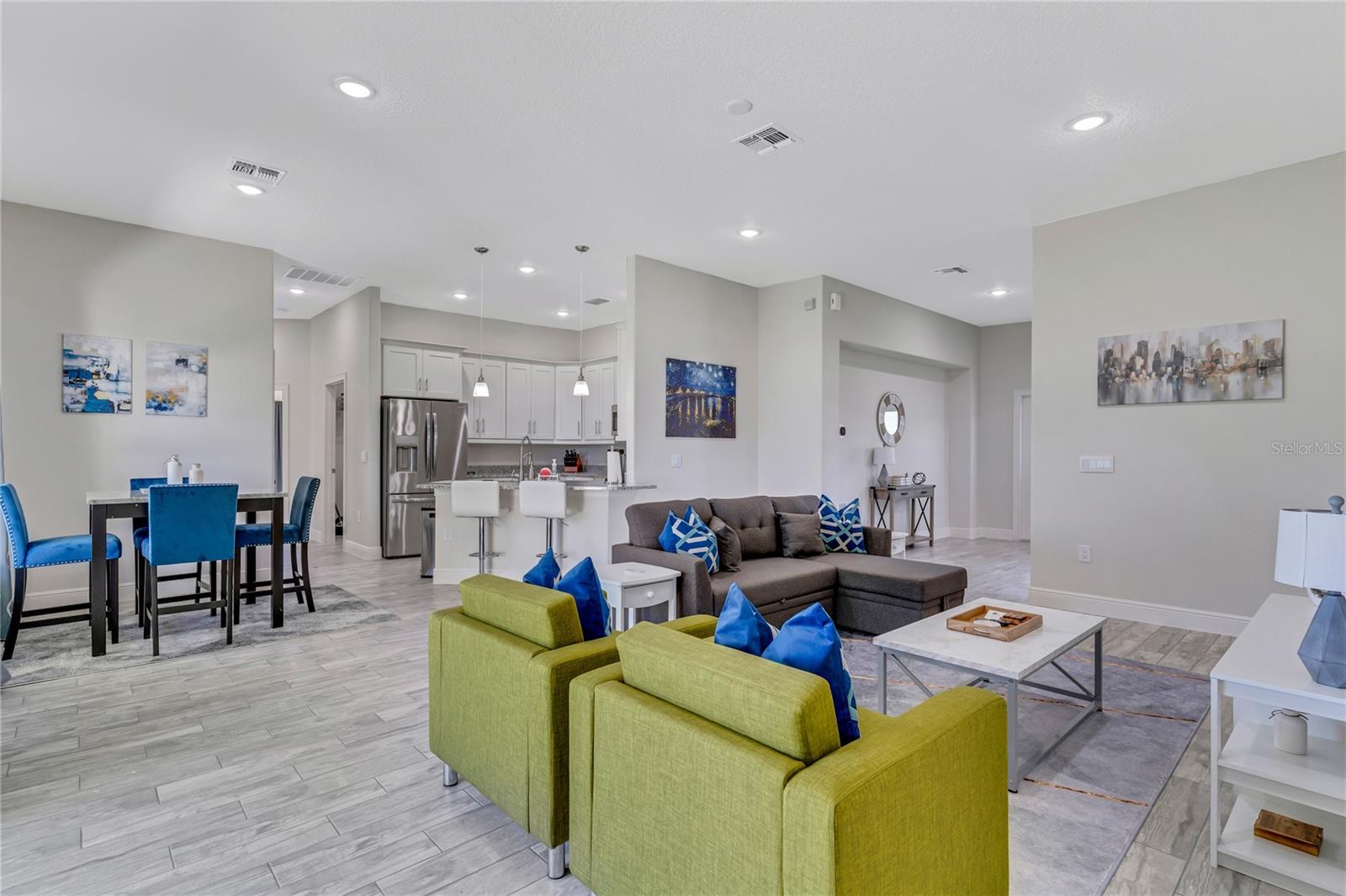 Spacious 3 bedroom, 3 and half bath fully furnished home with an OVERSIZED 3 car garage. Each Bedroom has it's own bathroom! Fenced in backyard, solid floors throughout, modern design, spacious, smart features, oversized driveway, Split floor plan, Covered Lanai, real wood cabinets, granite countertops, stainless steel appliance, cooktop, built-in oven, HIS & HERS closet in primary bedroom, large shower with frameless enclosure, dual sinks, energy efficient windows, LED lighting throughout, irrigation system ..... too many features to mention. A MUST see! Located inside the desirable Wedgefield Golf Community and minutes away from Downtown, UCF, Disney and Port Canaveral