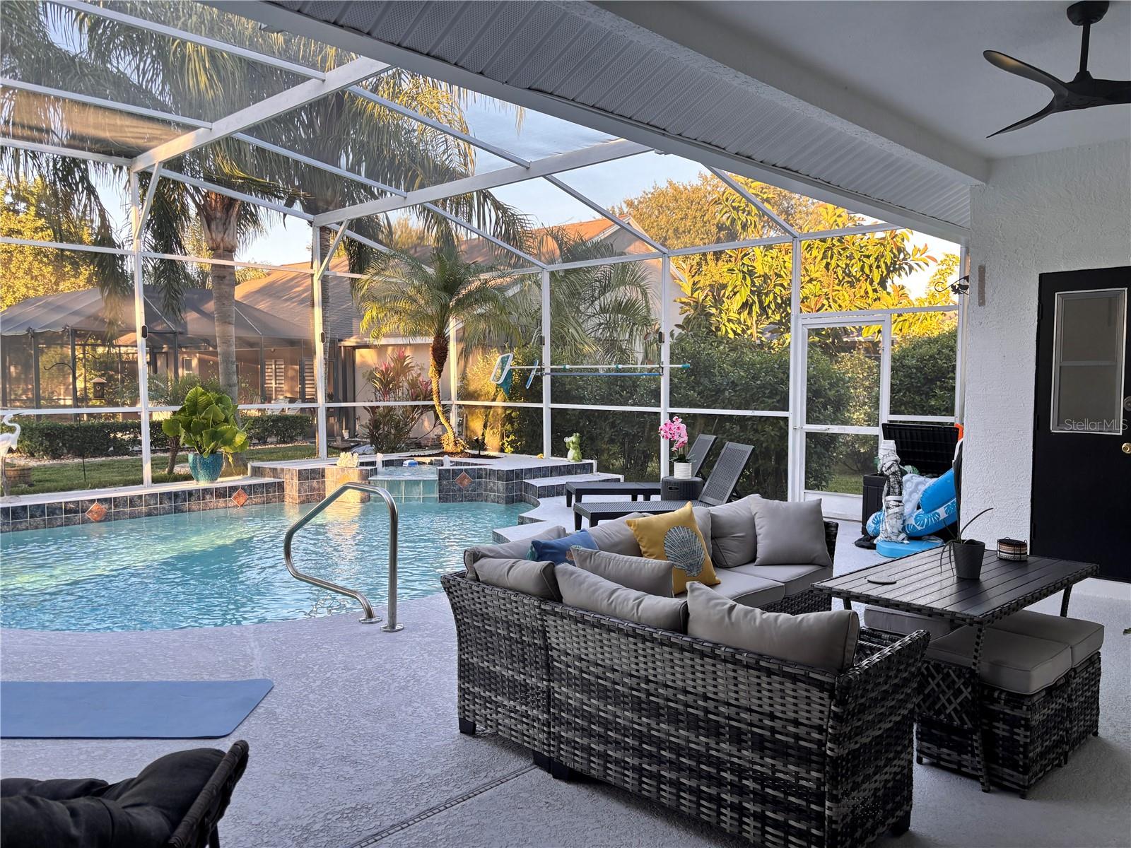 Step inside and the water views pull you in. Beautifully updated one-story home. Offering 2,336 SF of living space. This 4-bedroom, 2.5-bath home opens with sunlit living and dining. A split bedroom floorplan, this well-maintained home is flooded with natural light & presents easy entertaining & features a large Master Bedroom overlooking the pool & tranquil pond view. Showcases his & hers sinks & a Roman tub. The gourmet kitchen boasts granite countertops, updated stainless steel appliances, and custom cabinetry. Roof and A/C are new. Enjoy outdoor living at its finest in the spacious patio and pool area surrounded by lush landscaping. Located in a quiet community close to A-rated schools, parks, dining, and shopping. A perfect blend of luxury, comfort, and location. A 24-hour notice is required for all appointments. Use Showing time button. Owner occupied and Dog on Premises.