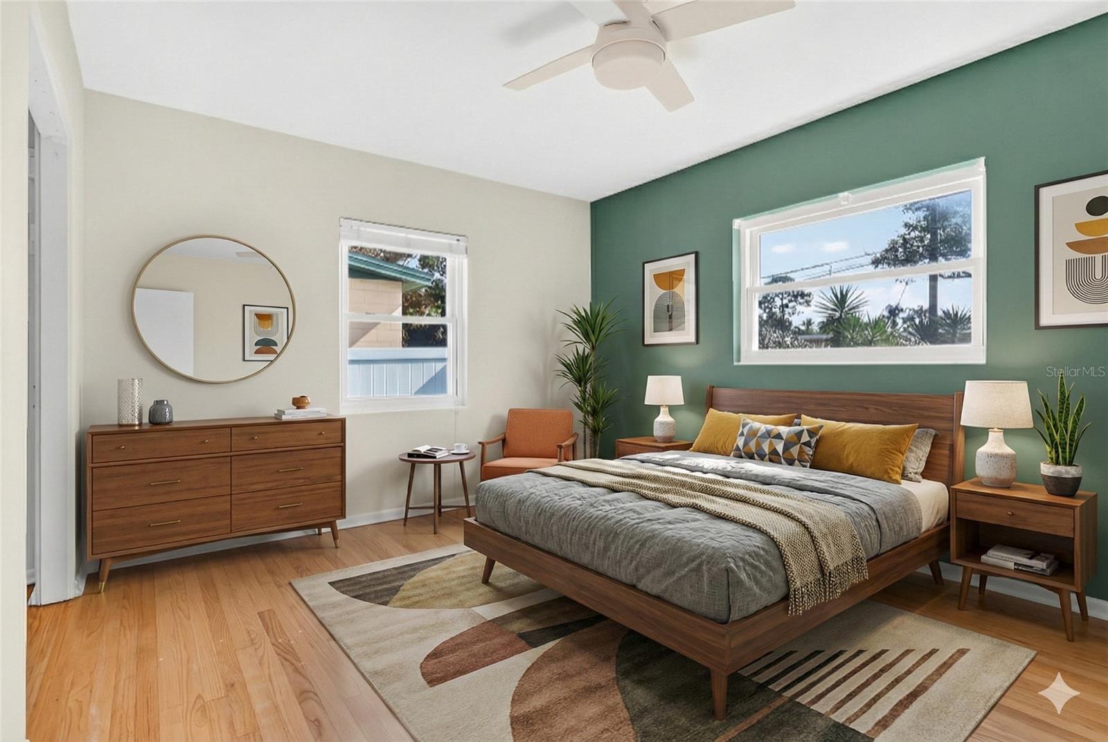 One or more photo(s) has been virtually staged. In the heart of the Hourglass District, 3726 Edland blends modern updates with the charm of an established Orlando neighborhood. The soft mint exterior, white trim, and welcoming front porch set a warm first impression that continues throughout the home. Inside, timeless hardwood floors run through most rooms, and sunlight pours in through upgraded hurricane-rated windows. The kitchen stays bright and functional with granite countertops, great prep space, and newer appliances including a refrigerator and range (2025) and a dishwasher (2024). The expansive family room, opened by new sliding doors (2023), creates a wide, airy connection to the backyard, an everyday gathering spot for movie nights, casual weekends, and everything in between. A rebuilt flex room off the entry (2023) adds intentional versatility with commercial-grade LVT flooring, upgraded electrical, a new window and door, and its own mini-split system, ideal for an office, studio, or creative space. All three bedrooms sit together on a private wing, with the primary suite offering an understated retreat and the additional bedrooms sharing a clean, well-positioned bath. Outside, the fenced yard feels open and private, enhanced by a new wood deck (2025), fresh sod (2025), mature landscaping, and a storage shed tucked neatly out of sight. It’s a spacious, usable outdoor area ready for hosting or quiet mornings. Significant upgrades support long-term value: a new roof (2022), new A/C (2022), water heater (2022), solar panels (2023), an upgraded breaker panel with 200-amp copper service (2023), the first set of hurricane-rated windows (2020), and additional windows and exterior doors added in 2023. The vinyl fence was installed in 2018. Zoned for Boone High School (Go Braves!), this home sits in that familiar East Orlando rhythm, established streets, neighbors who still wave, and easy access to Lake Como and the 408. Here, the creative pulse of the Hourglass District meets the stability of Conway, offering a home with strong updates, a flexible layout, and an energy that simply feels easy to live in.