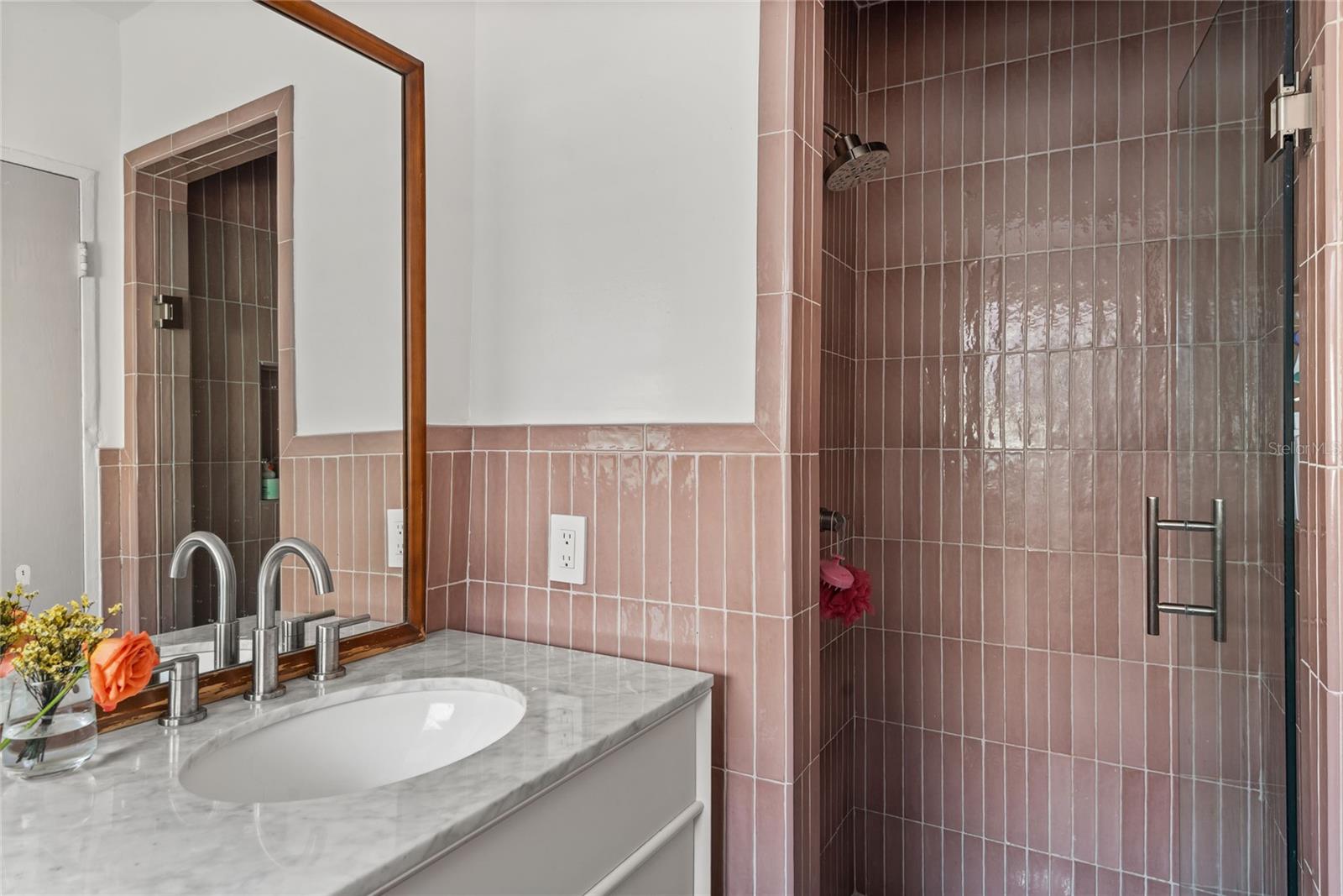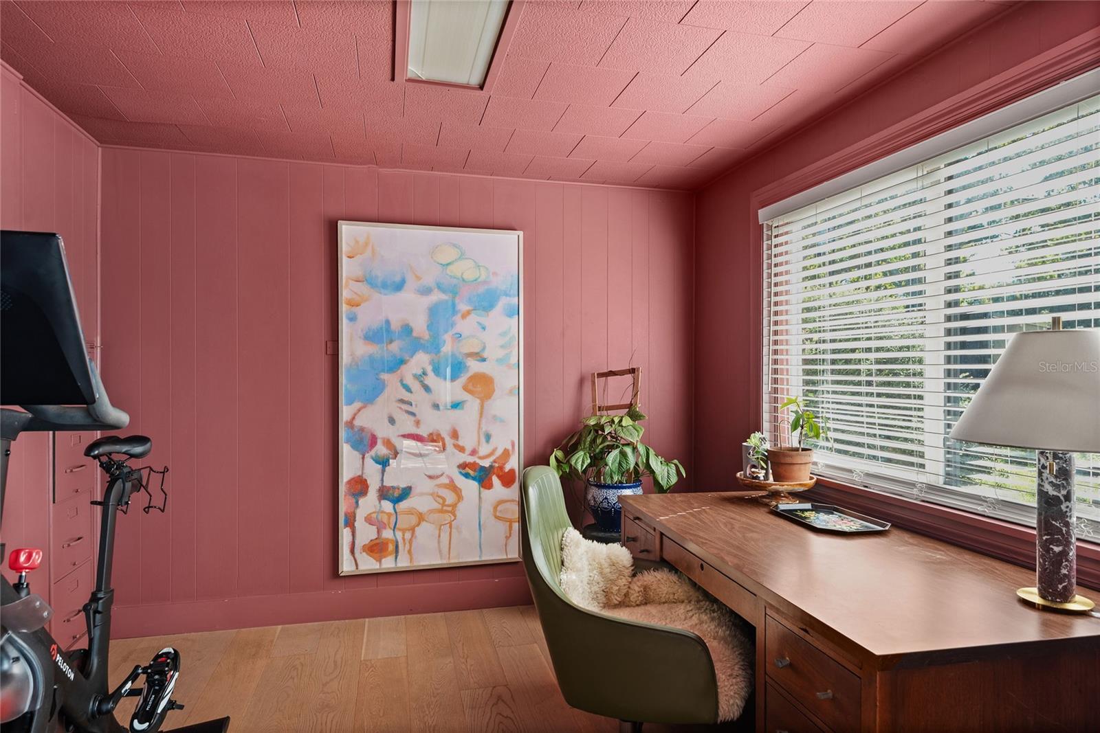 Where architecture meets nature, a rare mid-century modern retreat awaits in College Park. Tucked beneath a canopy of oaks on a double lot with deeded access to Lake Silver, this timeless 3-bedroom, 2-bath home plus office blends architecture, art, and landscape into a single, harmonious experience. Natural light pours through walls of glass, highlighting Sandstone brick fireplaces, warm wood tones, and carefully layered textures that feel both elevated and effortless. The reimagined kitchen is a minimalist masterpiece, featuring custom white oak cabinetry, sleek hardware, and striking quartzite countertops, a modern nod to timeless design. Sliding glass walls dissolve the barrier between indoors and out, opening to a private garden filled with native flora and fruit trees, creating a sanctuary for morning coffee or lingering evening gatherings. A romantic outdoor fireplace framed by patio lights sets the tone for slow evenings, quiet conversation, and starlit dinners. Every element feels intentional, textured, tactile, and connected to its surroundings. A dedicated office adds flexibility for creative work or study, while the serene bedrooms invite retreat. Every window frames greenery, infusing the home with a calming rhythm of light and shadow throughout the day. The fully remodeled bathrooms channel a designer’s eye for color and craftsmanship, each space a study in form and function. A rare find in the heart of College Park, just moments from Edgewater Drive’s boutiques and cafés, yet enveloped in privacy. This is mid-century perfection, where architecture and nature move in rhythm.