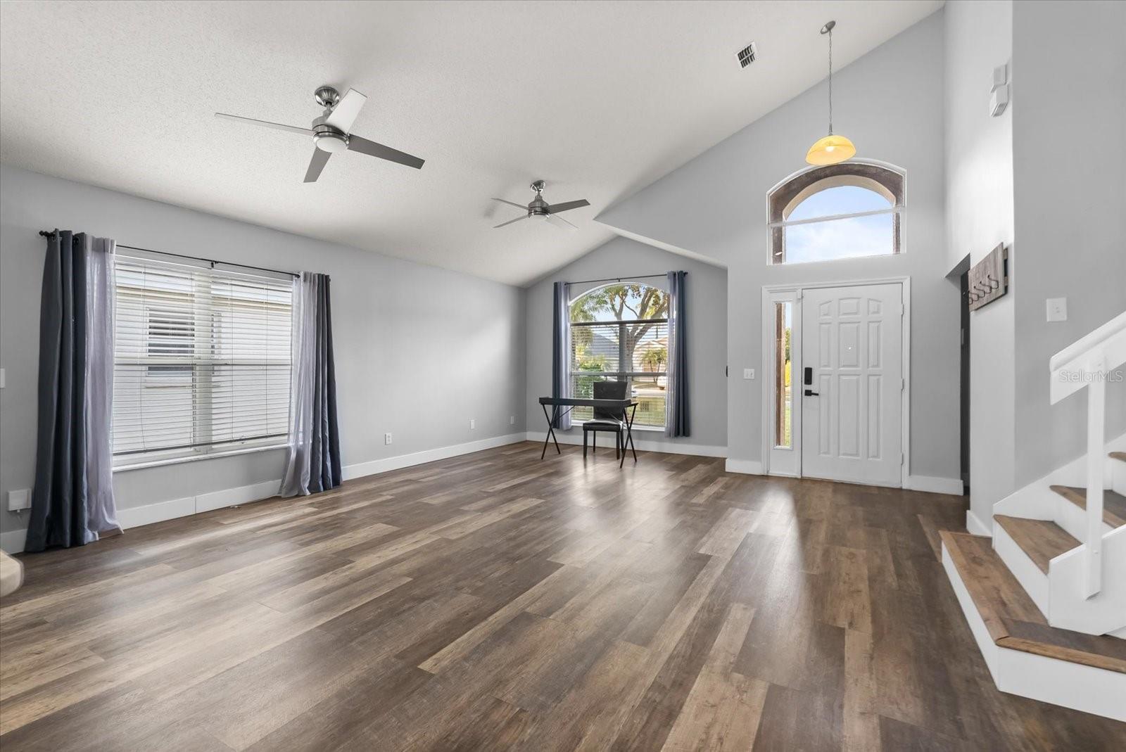 LOCATION, LOCATION, LOCATION! Come take a look at this beautifully remodeled home in the highly sought out neighborhood of Mallard Cove! As you walk in you will notice the 20+ft high ceilings and beautifully remodeled kitchen done in 2021, with high end quality cabinets and a large kitchen island for entertaining or cooking. The floors were redone with life proof Vinyl also in 2021, AC installed 2021, and solar panels that will be PAID OFF in 2021. You also have the primary bedroom on the 1st level which is a rare find in a two story home along with a HUGE walk in shower. The backyard is a Florida paradise, fantastic pool with a big screen enclosure to keep the pool cleaner throughout the year and the bugs out. You will be near shopping centers, highways, the parks, and restaurants! Schedule your tour today!