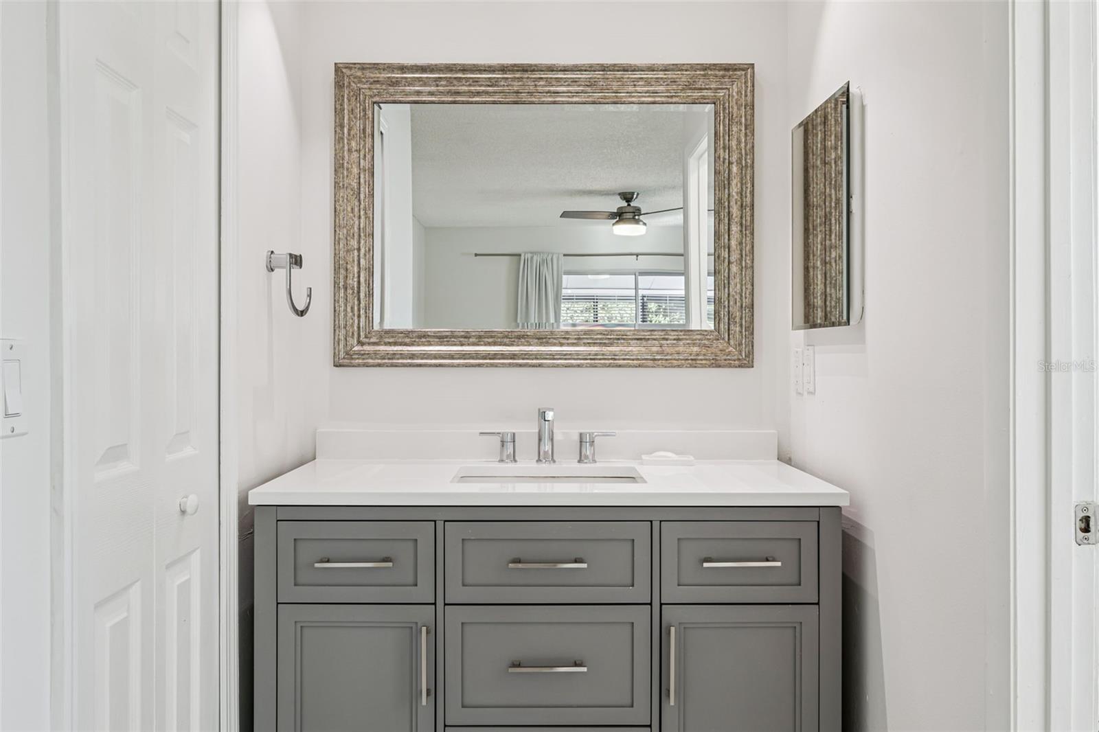 One or more photo(s) has been virtually staged. Presenting 5119 Lazy Lake Circle, Orlando, FL 32821, a single-family residence located in the Lake Ridge Village subdivision of Williamsburg. Built in 1983, this home offers 1,612 square feet of heated living space and a total area of 2,162 square feet. The interior features tile flooring throughout the entire property, creating a consistent look from room to room. The floor plan is designed with a split-bedroom layout that centers around an open living and dining area. Large windows allow for abundant natural light to fill these common spaces. The kitchen is equipped with granite counters, wood cabinetry, stainless steel appliances, and a gas range. Adjacent to the main living area, the primary suite is positioned for privacy and includes direct access to the rear of the home. An enclosed Florida room extends the living area, featuring tile floors and looking out toward the north-facing backyard and mature landscaping. This space offers a quiet area for relaxation protected from the elements. Practical features include an attached two-car garage, which houses the laundry area and includes a newer washer and dryer. Residents of this community have access to a pool and clubhouse, covered by a monthly HOA fee of $95. The location provides convenient access to major highways and is situated near SeaWorld, Universal Studios, International Drive, and the dining options along Sand Lake Restaurant Row. Schedule your showing today before it's too late.