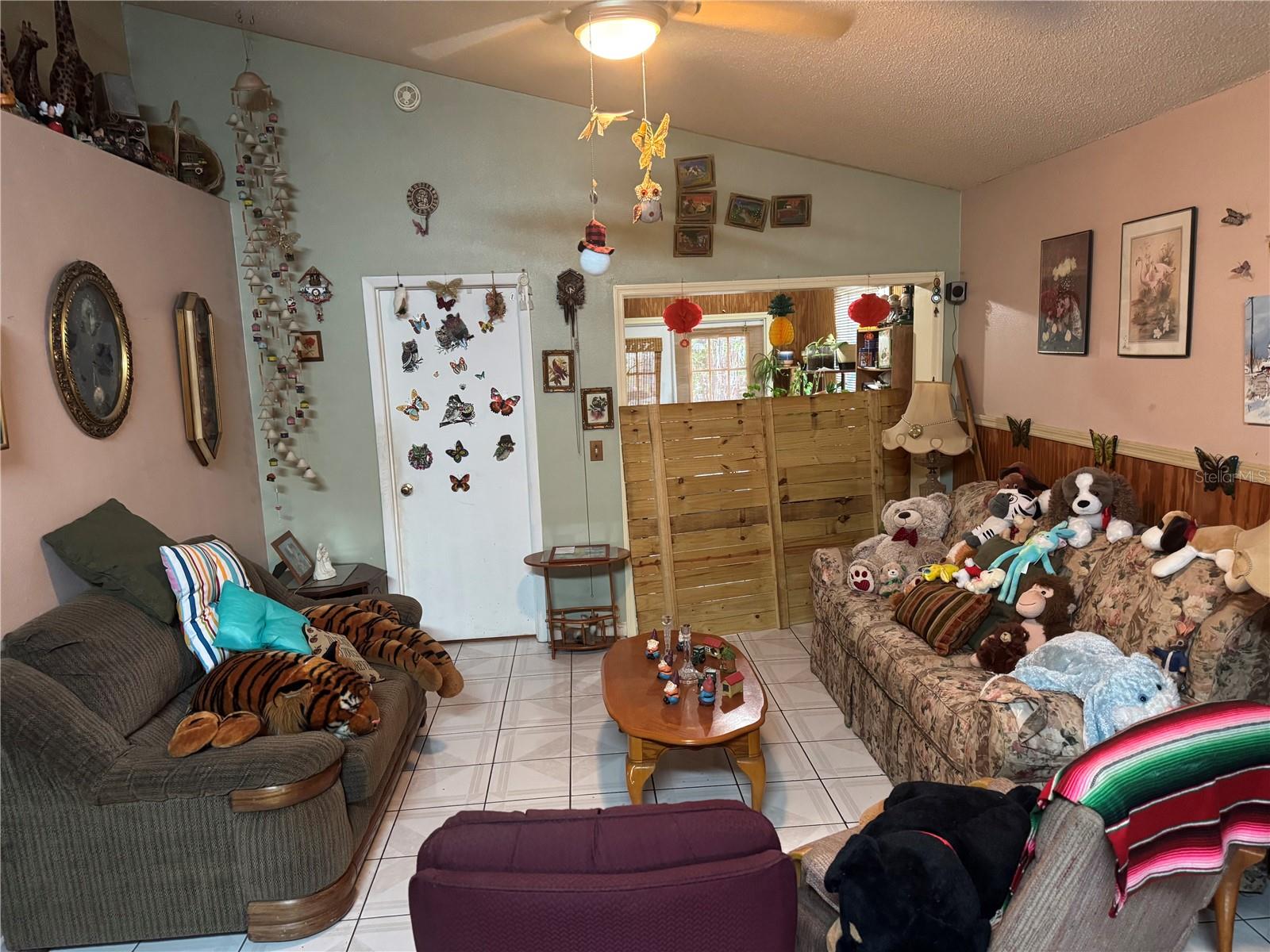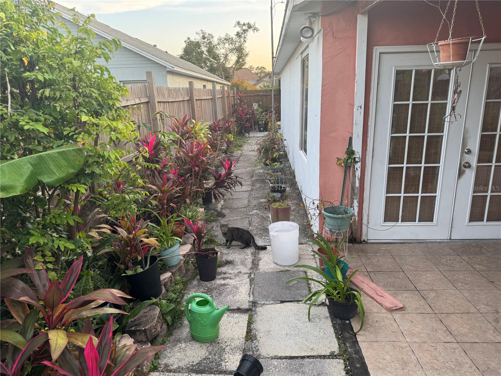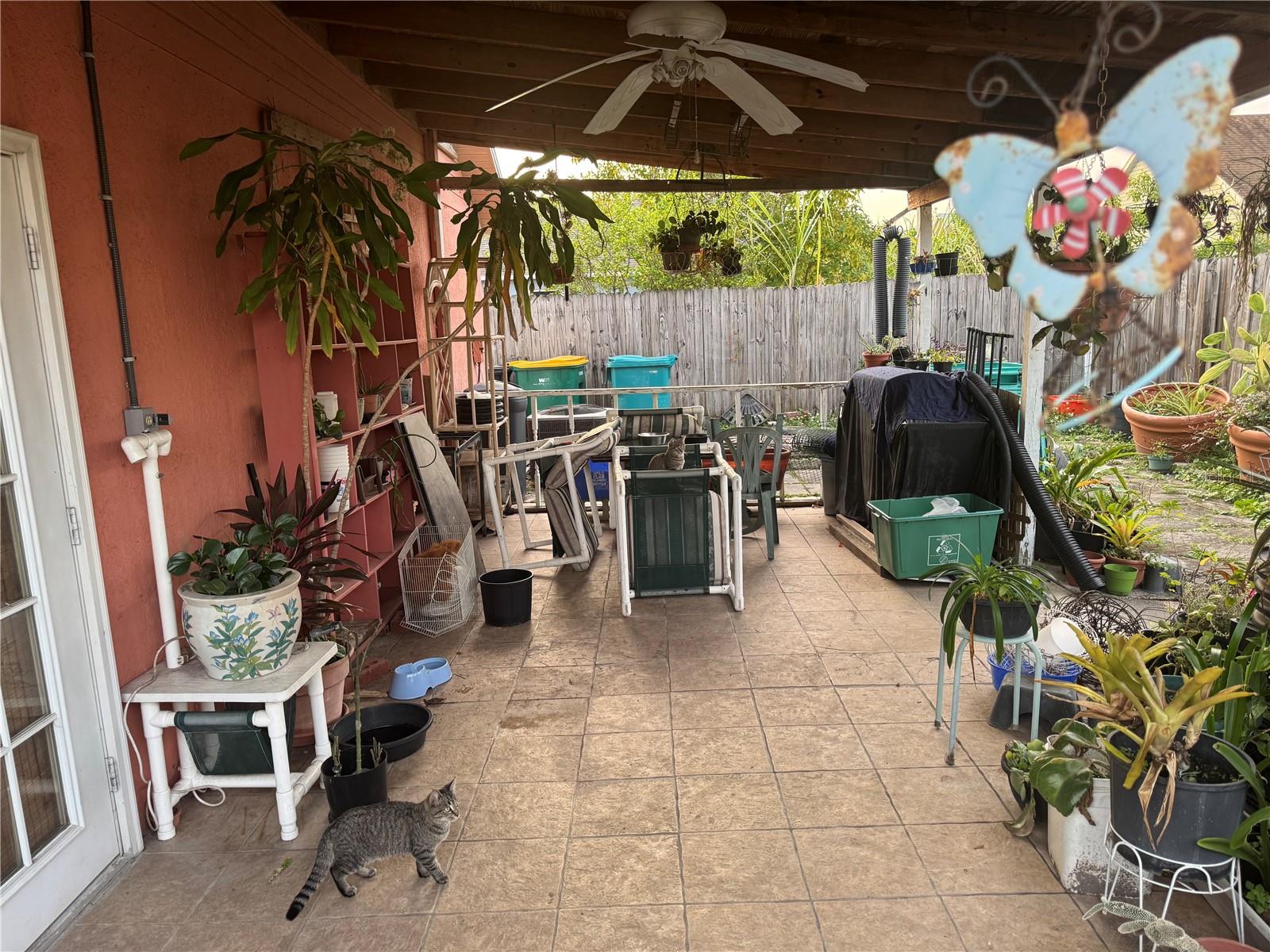 Welcome to this beautifully cared-for and thoughtfully designed 4-bedroom, 2-bath home that combines comfort, charm, and functionality. Step inside to discover a bright, open living space enhanced by soaring cathedral and vaulted ceilings, warm natural light, and a blend of stylish ceramic tile and plush carpet flooring. Upgraded ceiling fans throughout ensure a cool and comfortable atmosphere year-round. The inviting kitchen offers a spacious eat-in nook, perfect for morning coffee or casual family meals. The generously sized primary suite features a large walk-in closet, while the additional bedrooms provide versatility, ample storage, and room to grow. Step outside to your private oasis—an expansive, covered, and beautifully tiled rear patio ideal for entertaining or unwinding. The backyard is a true highlight, showcasing lush landscaping, mature fruit trees, and a thriving vegetable garden, creating a peaceful retreat for nature lovers and outdoor enthusiasts alike. This well-maintained home offers comfort, beauty, and the best of Florida living. Buyers will feel right at home the moment they walk through the door!