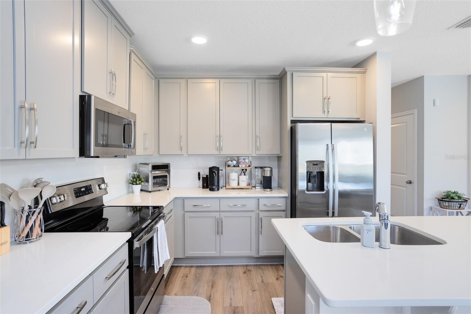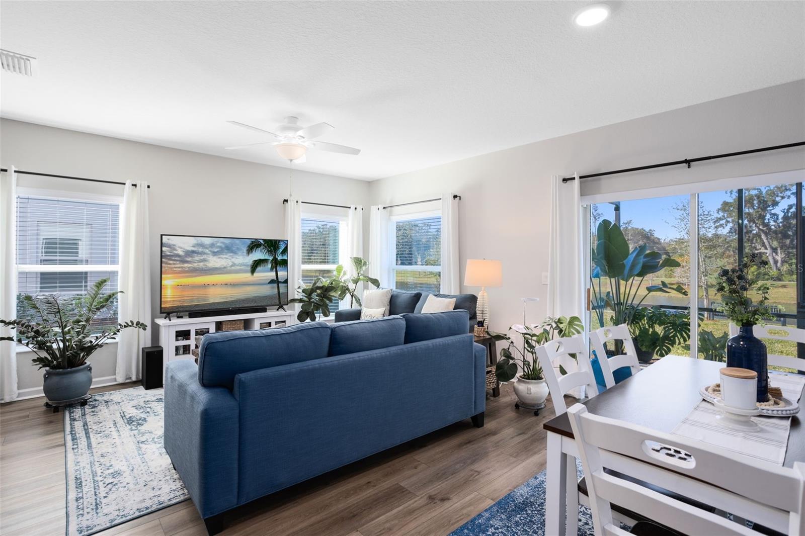 Welcome to this pristine 2023-built END-UNIT townhouse at 4394 Campsite Loop, where modern comfort meets peaceful POND VIEWS—with no rear neighbors to steal your sunset. Just under 1,800 square feet, this 4-bedroom, 3 full bath home features a first-floor bedroom, ideal for guests or a home office, plus an upstairs loft perfect for work, play, or movie nights. The open-concept main level showcases LVP flooring throughout, a bright great room and kitchen combo, and a chef-ready kitchen with QUARTZ countertops, stainless steel appliances, and custom cabinetry—everything you want, nothing you don’t. Upstairs, the spacious primary suite delivers a luxury bath with dual sinks, walk-in shower, and walk-in closet. Step out back to a screened patio overlooking the pond, a quiet retreat after a long day. Built with efficiency in mind, this home is 100% Energy Star 3.1 certified, featuring R-38 ceiling insulation, radiant roof barrier, Low-E double-pane windows, and Energy Star appliances—comfort that’s easy on the wallet. Ideally located minutes from Lake Nona, with quick access to Medical City, Orlando International Airport (MCO), and the new Nona West shopping complex on Lake Nona Blvd—scheduled for completion later this year—you’re perfectly positioned for work, travel, and everyday convenience Clean lines, smart design, and pond-side peace—this one checks all the boxes (and then some).