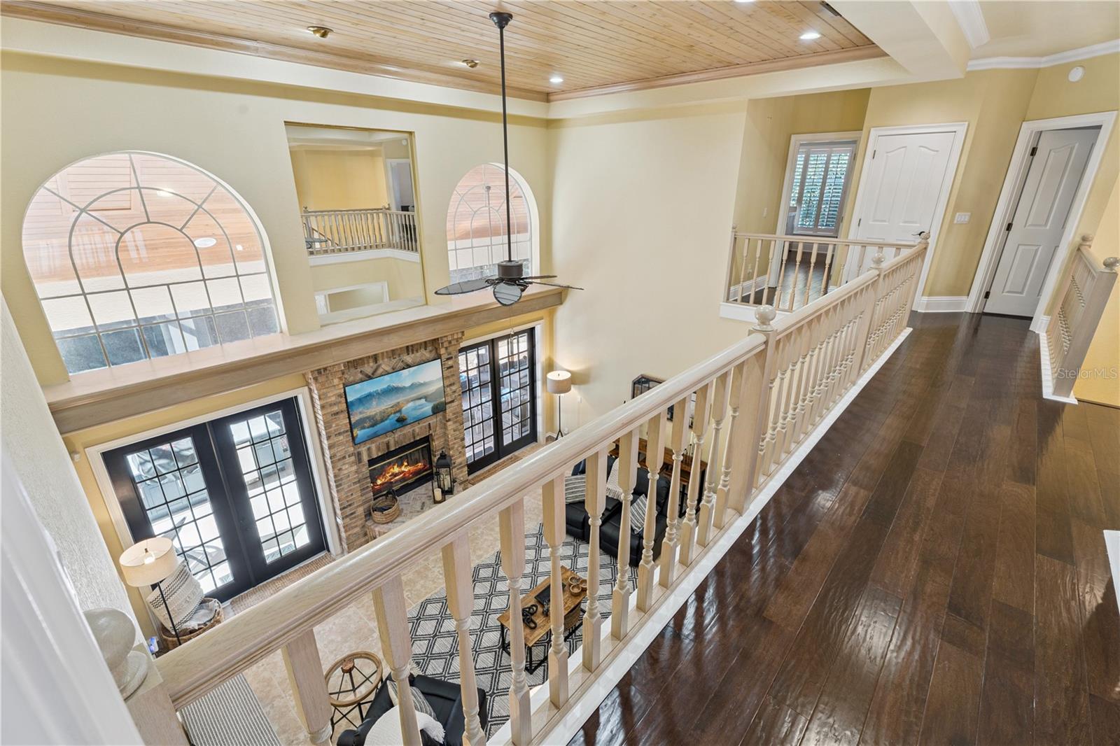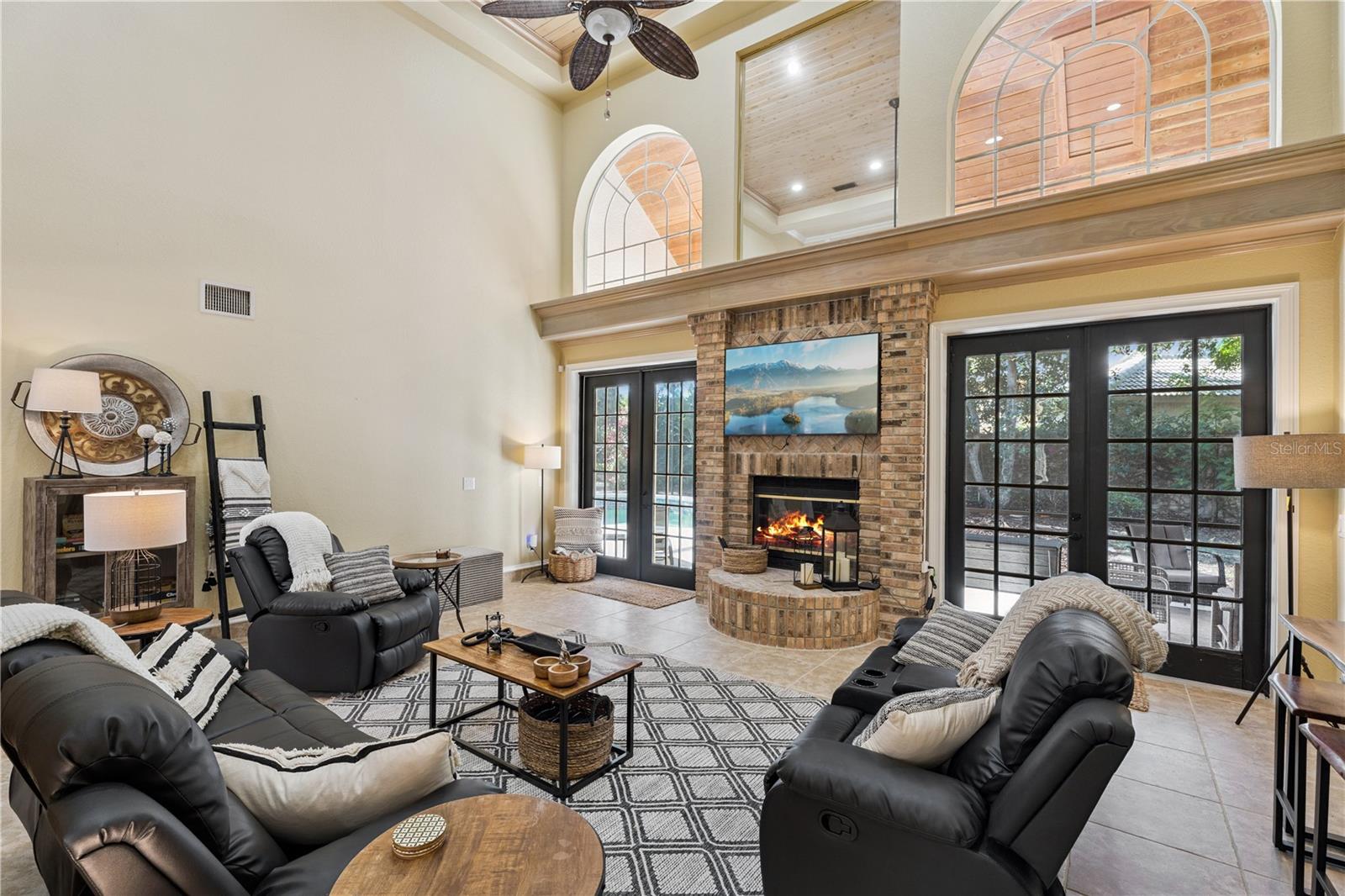 Incredible Custom quality home in highly sought after South Bay in SW Orlando! Built by J. Richard Watson, this beautiful 2-story doesn’t disappoint and always feels welcoming. 4 bedrooms, 3.5 baths, 3643 of living space and located on a quiet side street. The main floor has an oversized Primary suite with New wood floors, sitting area, 2 spacious closets, large separate garden tub & walk-in shower. An enormous Living room with TOWERING ceilings, fireplace & double French doors. A cozy Kitchen with island, Stainless appliances, breakfast bar & separate Sunny nook. A huge Dining room with custom Millwork & a ‘true’ Library with Tall ceilings, built-in 15’ bookcase with rolling ladder & French doors to a private courtyard. Upstairs on New carpeted runners, a split plan with a ‘catwalk’ traversing both ends, there’s a perfect additional Primary suite on one side, and 2 oversized guest bedrooms with Jack n Jill full bathroom & large closets on the other - wood floors throughout. A large rear covered & screened Lanai for entertaining with a portable Kitchen, lovely heated electric pool & spa with New cage, fire pit, and block wall around perimeter for your private space. Also included, inside laundry, oversized garage, pavers, tile roof (only a few years young!), propane-run generator (not in use) and more! South Bay has walking trails, tennis/pickleball courts, fishing dock and 24-hour roaming security. Minutes to the Bay Hill Club, Sand Lake Road shopping & restaurants & great Dr. Phillips schools. A gem of a home! Location, location, location!