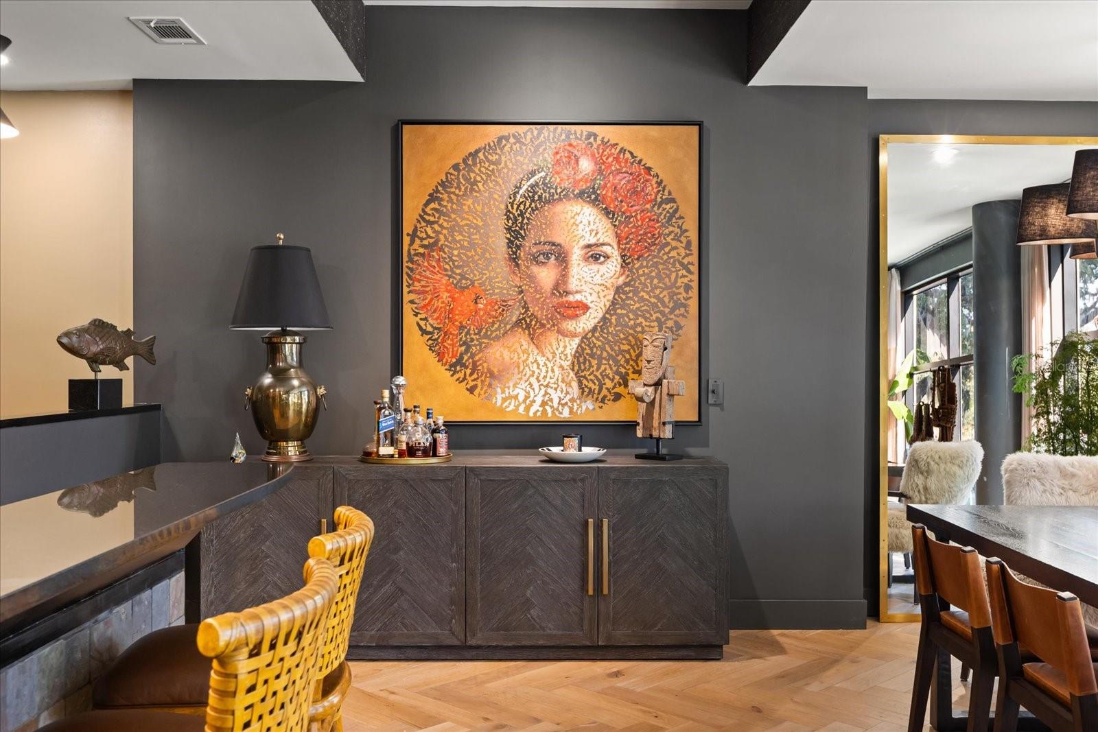 Exceptional luxury residence at 1 S. Eola, a boutique 23-unit low-rise Art Deco condominium overlooking Lake Eola Park. This extensively upgraded 3-bedroom, 3-bath residence with a large separate office offers rare architectural character, luxury finishes, and outstanding indoor-outdoor living. The home features both a second-floor interior entrance and a private ground floor entrance with an exceptionally large garden porch. One of only two ground-floor porches in the entire building, offering the convenience of no elevator wait and making it ideal for pet owners. The ground-level patio includes hot and cold water faucets and a floor drain, perfect for dog washing or outdoor entertaining. Inside, the residence has been thoughtfully renovated with engineered wood flooring throughout the second floor (2023), Britannia stair treads (2023), and black-and-white rectified porcelain “marble” tile flooring on much of the first floor. All interior doors were replaced with solid wood doors in 2024, including oil rubbed bronze Emtek hardware, and Buster & Punch wall switches and outlets were added in 2025. The kitchen and entertaining spaces feature granite countertops, Thermador refrigerator (2024), GE Monogram wine refrigerator (2023) and a new LG stacked washer and dryer (2023) with utility sink added in the laundry room (2023). Two new Carrier air-conditioning systems installed in 2023, hot water heater (2023), and Nest thermostats. Bathrooms are finished with quartz, slate, designer tile and custom wood cabinetry. Designer light fixtures, custom drapes, blinds and wood shutters (2024 – 2025) enhance the home’s refined style, along with Phillip Jeffries designer wallpaper and grasscloth wall coverings (2025). The residence offers two outdoor porches, including a rare oversized round second-floor balcony-one of only three in the building directly overlooking Lake Eola Park, providing exceptional views of the lake, park, and city skyline. Parking is equally rare with two deeded garage spaces, including one oversized space which is closest to the building’s door, with private built-in storage. Dogs are allowed (up to two, with weight and breed restrictions), and the unit may be sold furnished (Restoration Hardware, Washburn Imports, etc.). Truly a turnkey luxury opportunity in the heart of Downtown Orlando.