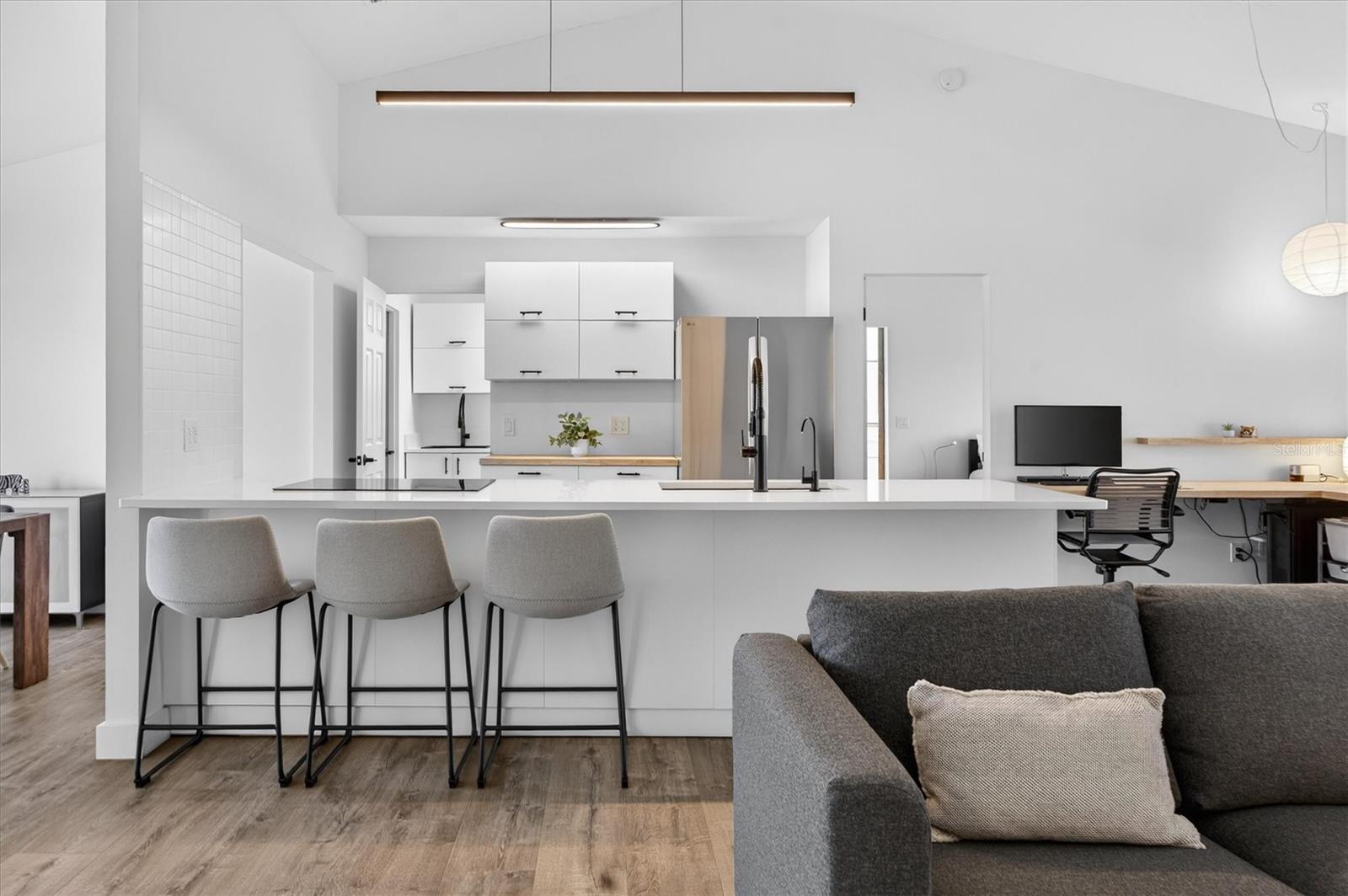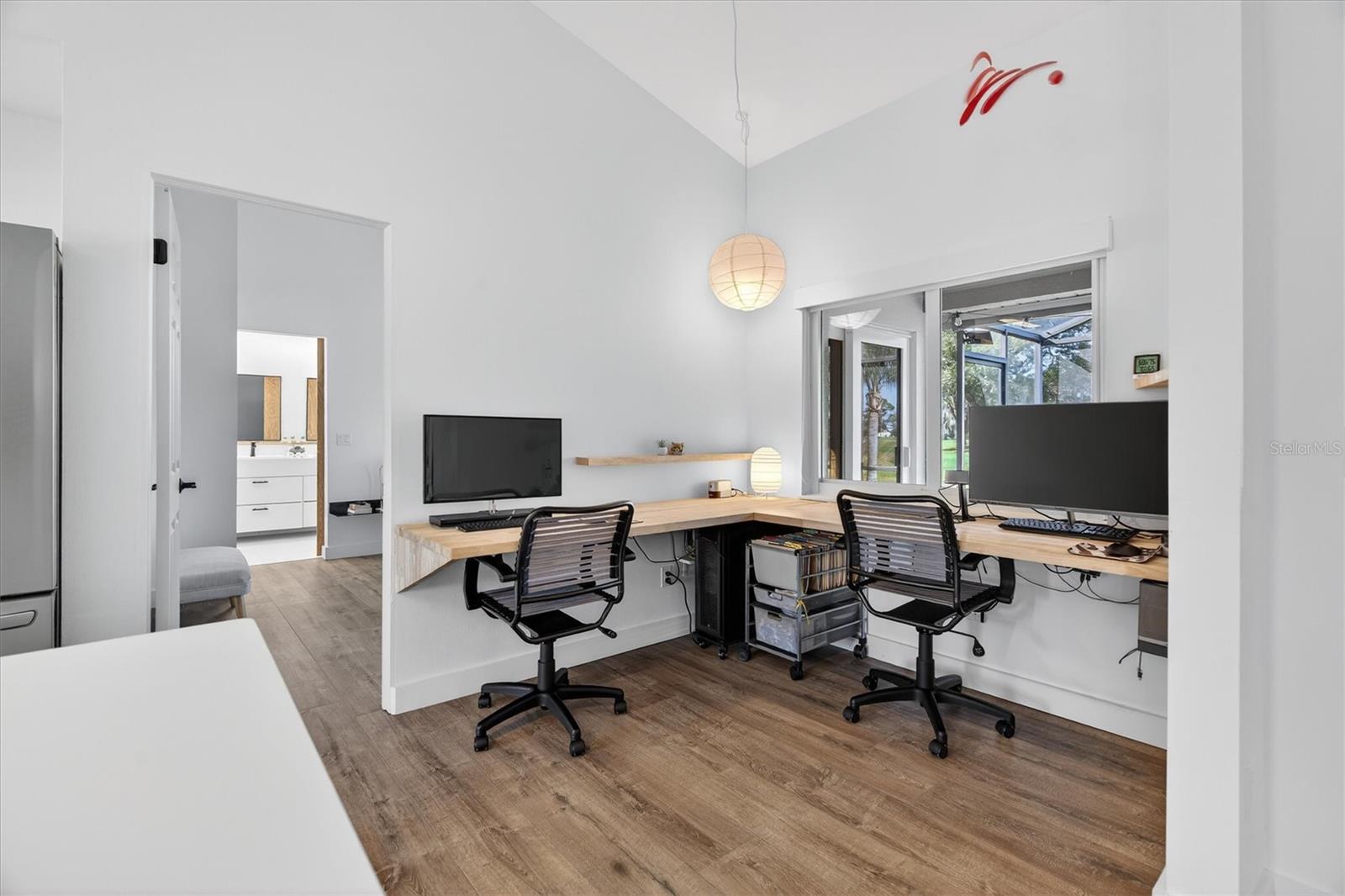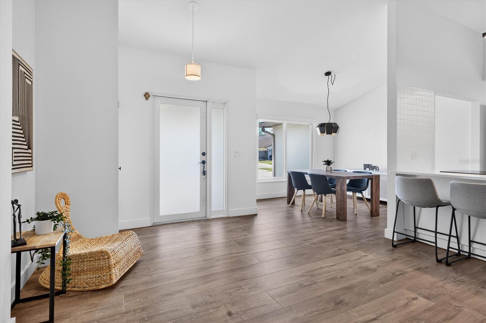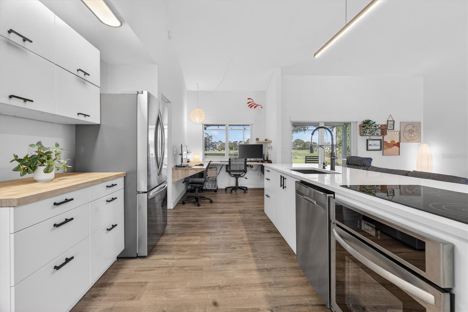 No filters needed on this home! Situated along the golf course in the sought-after Wedgefield community, this completely renovated 3-bedroom, 2-bath home offers refined finishes, thoughtful upgrades, and beautiful outdoor living. Major improvements include a NEW ROOF & GUTTERS (2020), NEW IMPACT WINDOWS, A/C, HOT WATER HEATER, ELECTRICAL PANEL, APPLIANCES, WHOLE-HOME REVERSE OSMOSIS SYSTEM, SECURITY SYSTEM, REAR LANAI HAS NEW SCREENS (everything replaced within the last 2 years), creating a truly move-in-ready opportunity. Inside, the home features new flooring, fresh interior and exterior paint, updated light fixtures, and custom closet organizers throughout. The redesigned kitchen showcases quartz countertops, new cabinetry, and an oversized island with seating for up to six, ideal for entertaining. Cathedral ceilings enhance the open feel, while a formal dining room adds versatility for gatherings. The former breakfast nook has been converted into a dedicated office space overlooking the golf course. All bedrooms are generously sized, with both the primary bedroom and Bedroom 2 offering sliding glass doors that open directly to the lanai, blending indoor and outdoor living. The bathrooms have been fully updated with walk-in showers featuring tile extending to the ceiling for a clean, modern look. Outdoor living shines with an expansive screened lanai (recently rescreened) featuring a cedar-plank ceiling and sweeping golf course views. The property also includes an irrigation system on its OWN PRIVATE WELL, providing efficient and cost-effective lawn care. The two-car garage offers an extra storage room and built-in folding workbenches, while the large laundry room includes ample storage. Located approximately 30 minutes from Orlando, the beaches, and Port Canaveral, Wedgefield offers a unique balance of space and convenience. Community amenities include parks with baseball fields, basketball, volleyball, pickleball courts, and dog parks, plus nearby hiking trails at Hal Scott Preserve. This turnkey golf-course home blends high-end renovations, spacious living, and an exceptional Central Florida location. No cat-fishing here, this home shows even better in person!