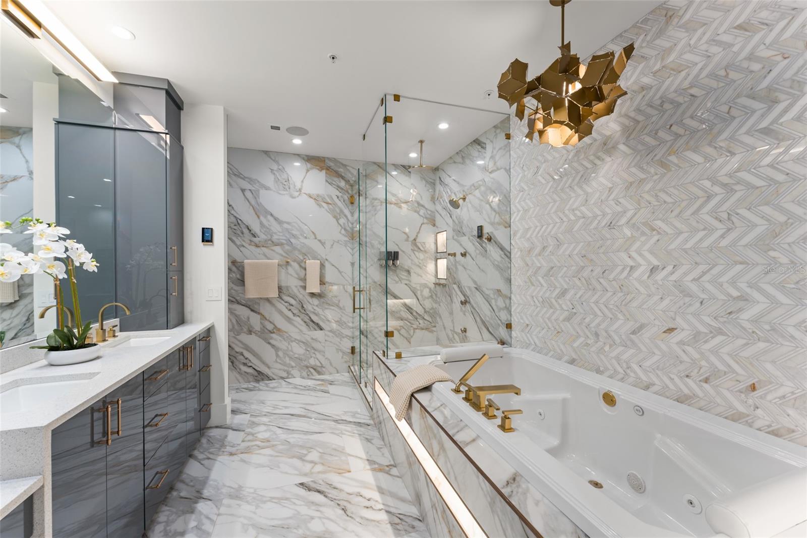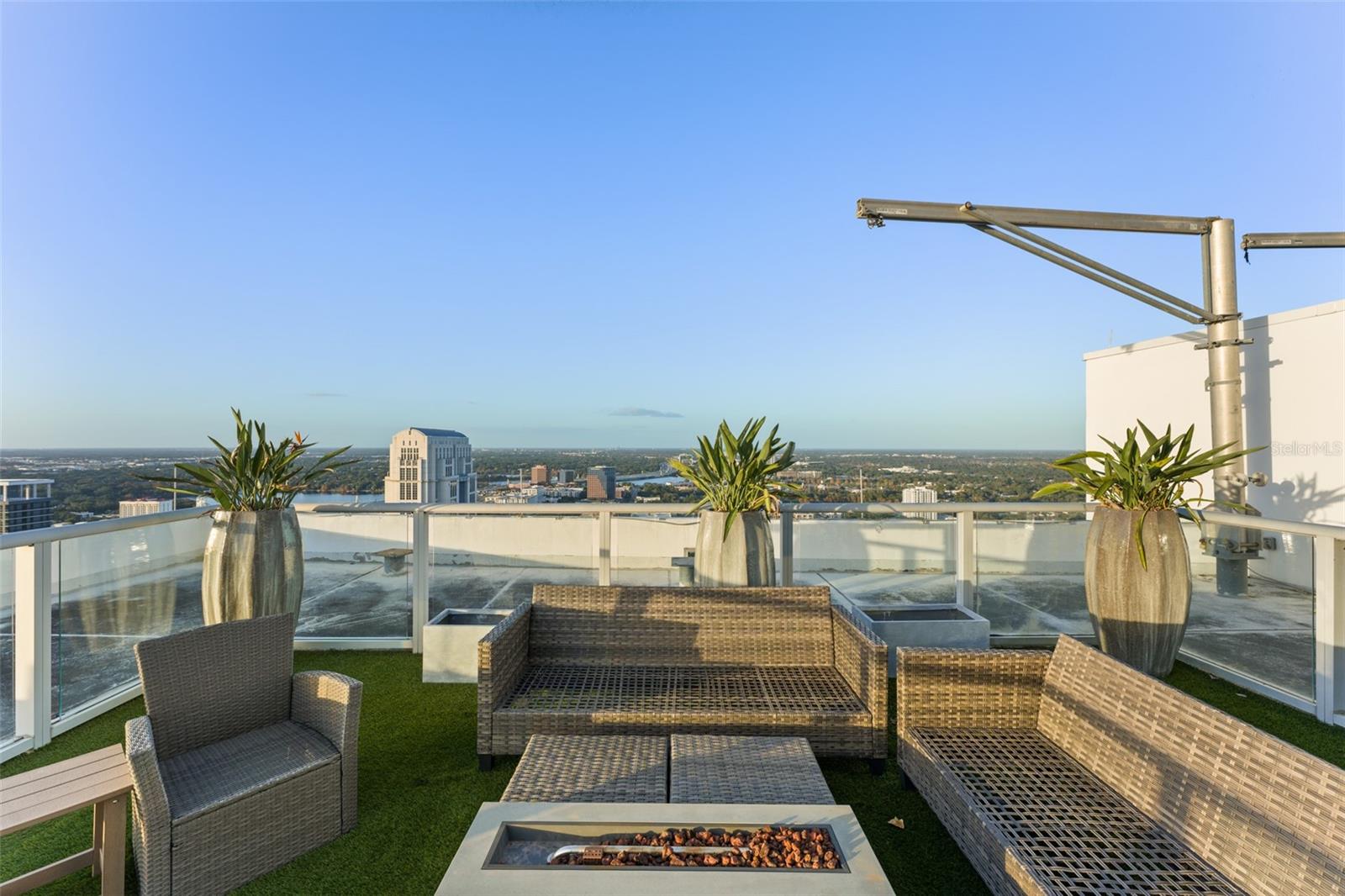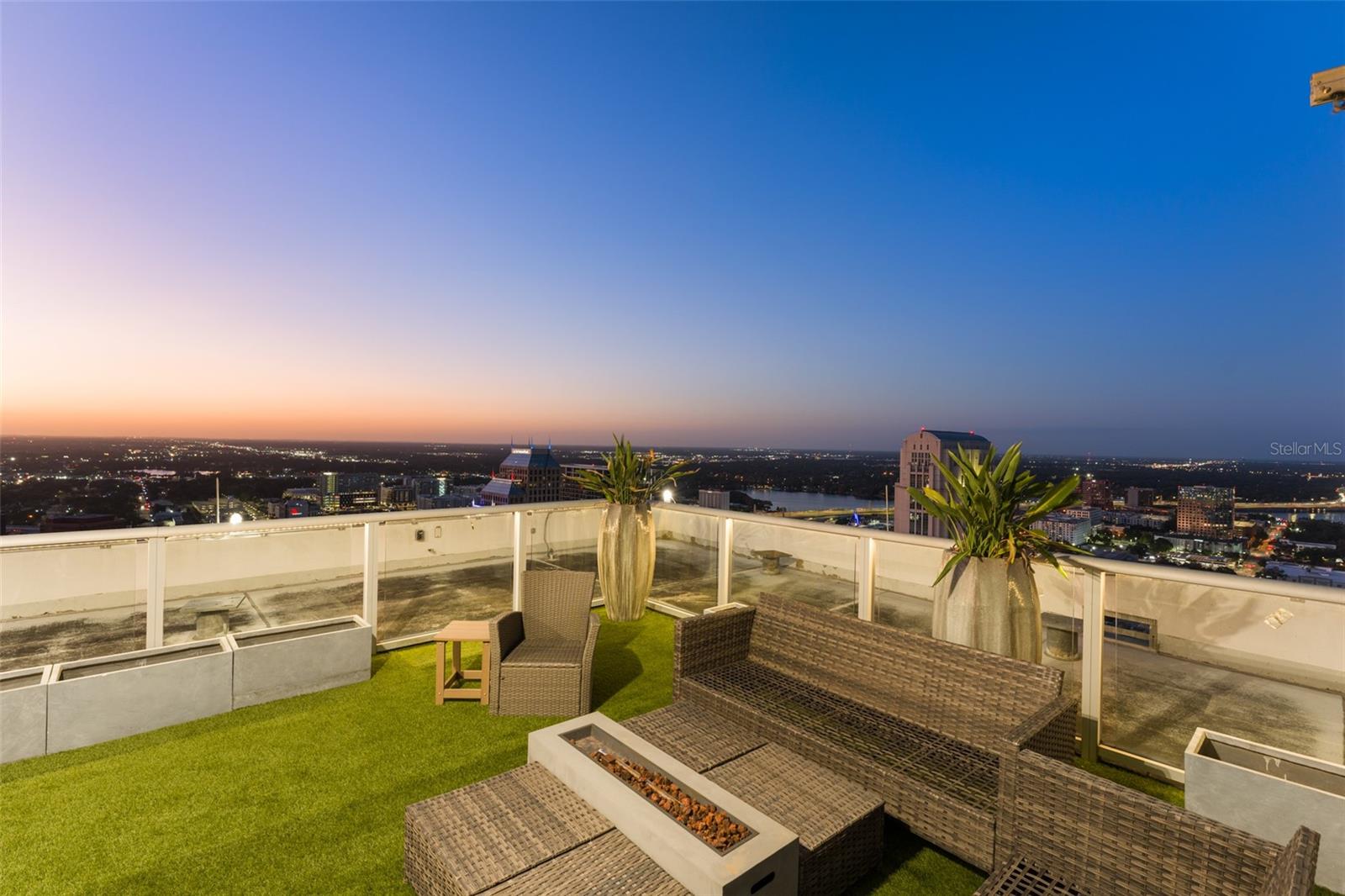 Welcome to Penthouse Living where you can indulge in unparalleled luxury with this elegant two-story, corner penthouse, commandingly positioned atop the heart of Downtown Orlando. Boasting just under 2500sf with 3 bedrooms, 3 full bathrooms, and 1 half bath, this tastefully upgraded residence offers the ultimate in modern comfort and style, with sweeping western-facing views that provide stunning city and sunset views every evening. As you enter the home, you’re greeted by opulent finishes and a warm contemporary design while the expansive floor-to-ceiling windows flood the home with natural light. You’ll find a thoughtfully and efficiently designed kitchen with Subzero appliances, complemented by a butler’s serving area with wine refrigerator in the dining room that is ideal for curating your collection and hosting dinner parties in style. The spacious primary suite is a calming and comfortable sanctuary, complete with custom accent built-in shelving and drybar. Walking through the oversized custom closet with backlit onyx, you’ll find yourself in the jaw-dropping spa-like bathroom adorned in marble. This luxurious space was designed with both glamour and function in mind to include heated floors, backlit mirrors and personalized touchscreen shower system. The two additional bedrooms complete the main floor each with its own beautifully appointed bathroom and floor to ceiling windows for the same captivating views. A true highlight of this penthouse is the private rooftop terrace - as you ascend up the spiral staircase to the landing area you’ll find another wet bar for convenience and powder bathroom. Whether you’re enjoying the sunset, entertaining guests, or simply relaxing in your personal outdoor retreat, this rooftop space adds a unique and rare element to this already stunning residence. Additional enhancements include a Creston system for complete home automation and remote control window shades. Control lighting, temperature, and entertainment at the touch of a button. LED accent lighting throughout the home adds a modern touch, enhancing the home’s ambiance and highlighting its sleek design. The Vue is a highly coveted Downtown Orlando address offering access to top-tier building amenities such as valet parking, state-of-the-art fitness center, pool and deck overlooking Lake Eola, basketball/tennis court and concierge service. This lavish home in the sky is steps away from fine dining, shopping, entertainment, and cultural attractions, offering the perfect balance of urban convenience and luxury living.