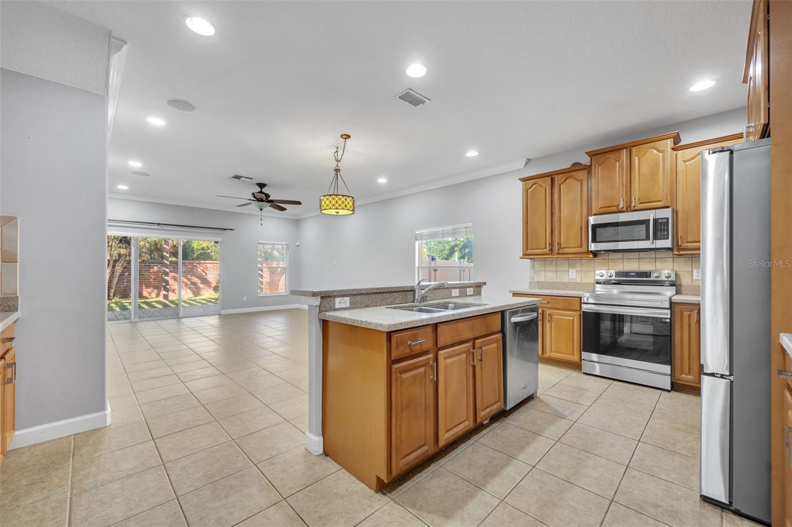 Inside, the home welcomes you with soaring ceilings, elegant crown molding, and an abundance of natural light that enhances the open-concept design—ideal for both everyday living and entertaining. The gourmet kitchen serves as the heart of the home, featuring granite countertops, stainless steel appliances, custom cabinetry, and a large center island perfect for gathering and meal prep. The spacious primary suite is a private retreat, complete with a spa-like bathroom offering dual vanities, a soaking tub, a walk-in shower, and ample closet space. Additional bedrooms are generously sized and versatile, accommodating family, guests, or a home office with ease. Outdoors, enjoy a serene backyard with a covered patio designed for quiet evenings or hosting friends and family. Legacy Oaks is known for its privacy and unbeatable location, with easy access to downtown Orlando, major highways, premier shopping and dining, and top-rated schools. Homes of this caliber in Legacy Oaks are rarely available. Don’t miss the opportunity to make this remarkable property your own—schedule a private tour today.