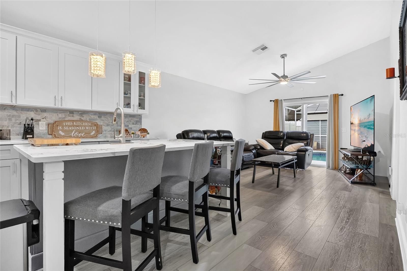 This home includes a $3,199 lender credit towards closing costs or interest rate buy down! Beautifully updated single-family home located in a quiet cul-de-sac within the desirable Victoria Chase community. This well-maintained residence features a bright, open floor plan with modern finishes throughout, including laminate flooring, updated kitchen cabinetry, stainless steel appliances, and an island with bar seating perfect for everyday living and entertaining. The home offers spacious bedrooms, renovated bathrooms, and ample natural light. The primary living areas flow seamlessly to the outdoor space, where you’ll find a screened-in pool and a private backyard ideal for relaxing or hosting guests. An additional highlight is the outdoor patio with pergola and pavered seating area, creating a perfect setting for outdoor gatherings. Conveniently located near major highways, shopping, dining, and schools, this property offers comfort, functionality, and an excellent lifestyle opportunity in an established neighborhood.