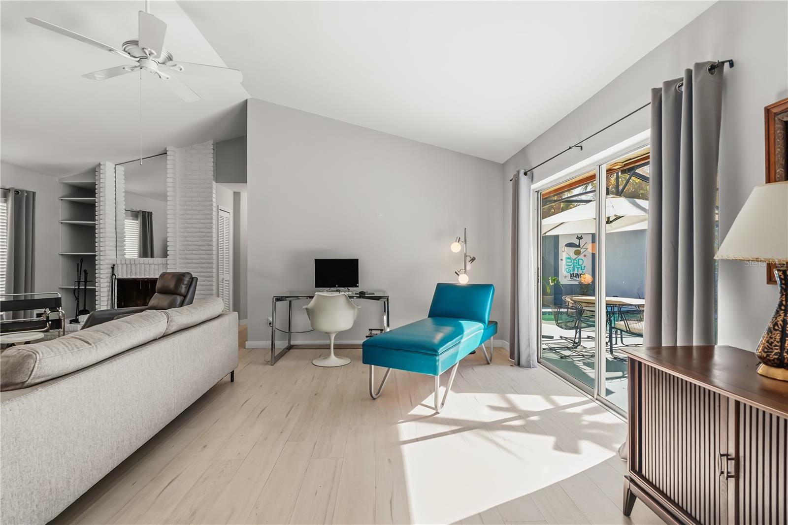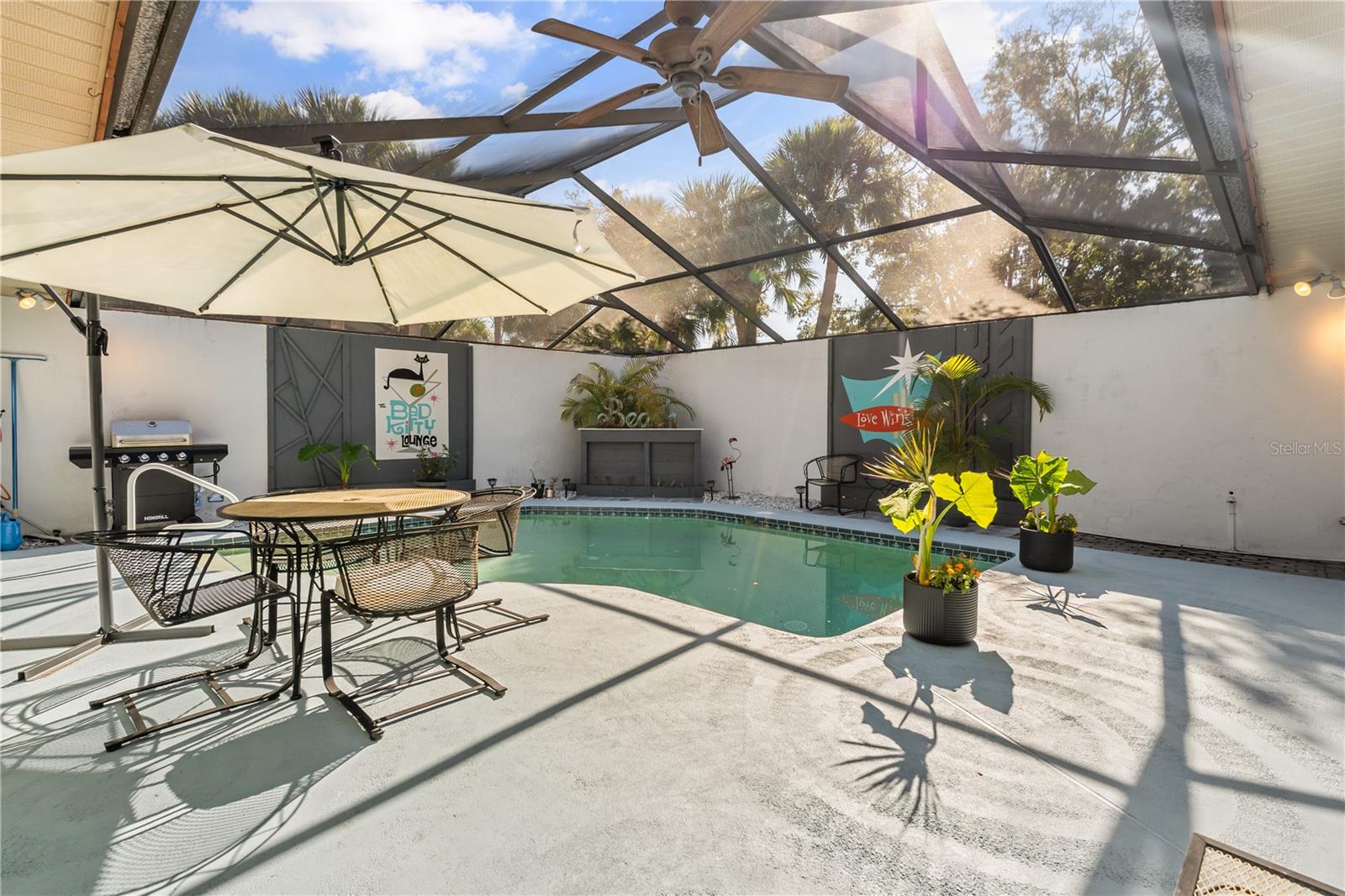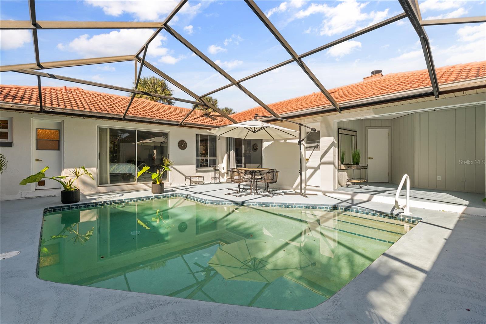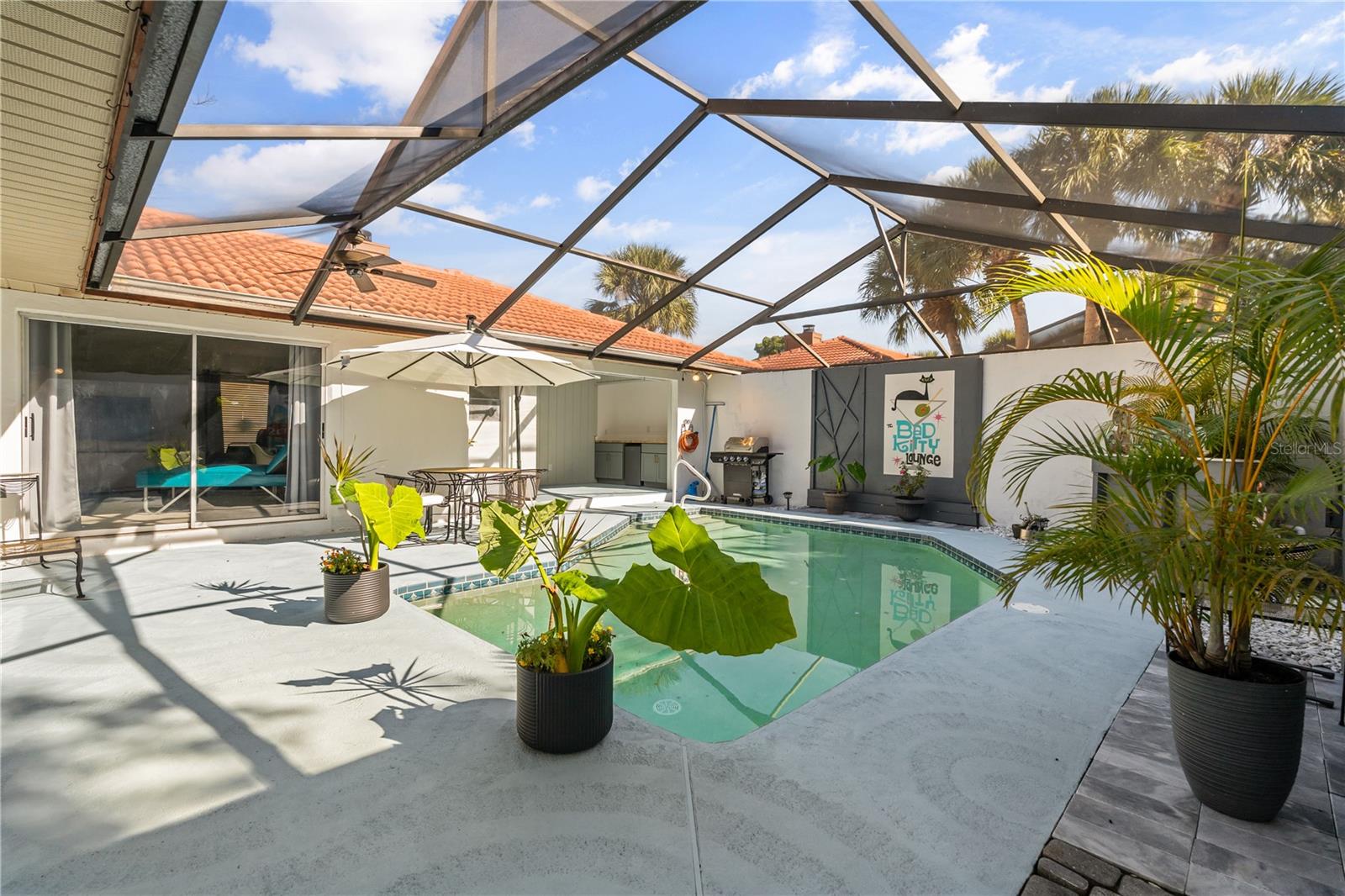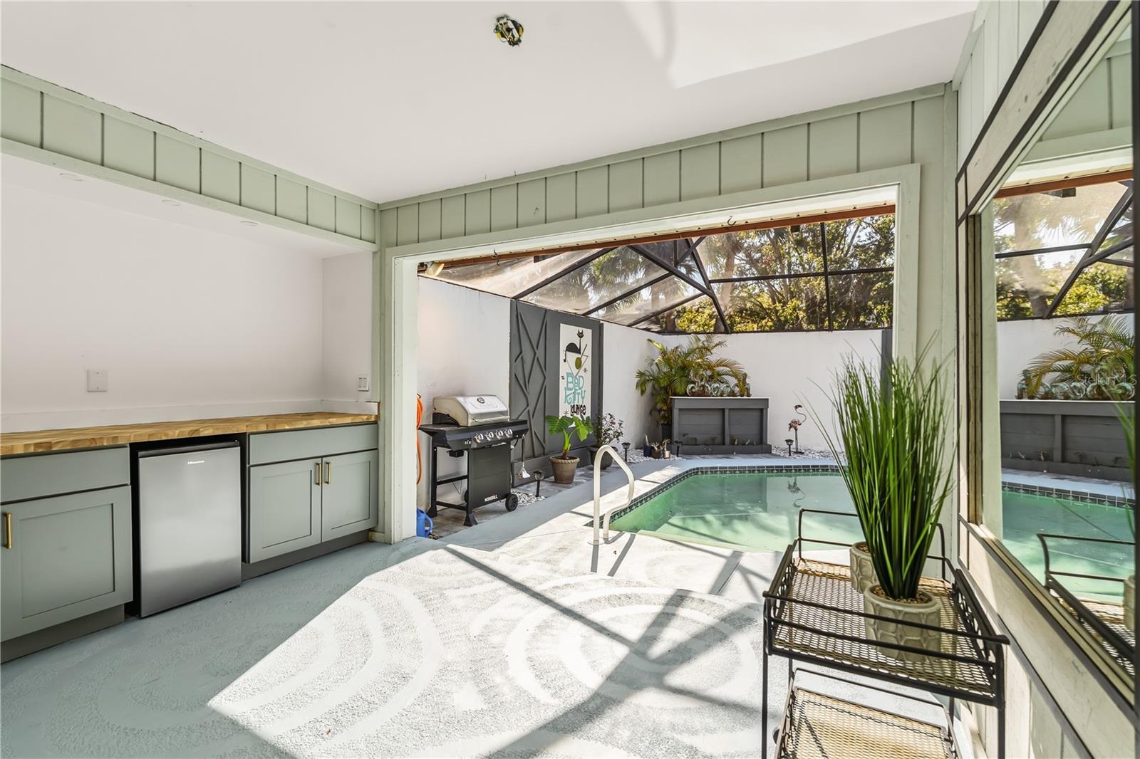 Maintenance free and completely renovated this one story villa features and open split floor plan and has its’ own private pool, fireplace, summer kitchen with wine fridge and 2 car garage! Upon entering, you’re greeted by soaring volume ceilings, a cozy fireplace, and serene views of the sparkling pool, creating a light and bright environment. The well-appointed kitchen features granite countertops, Frigidaire Gallery appliances including a gas/convection range, French-door refrigerator, wine refrigerator, and microwave, along with updated lighting, a touchless faucet, pull-out cabinet drawers, and abundant storage. The thoughtfully designed split floor plan offers privacy and comfort, with a spacious primary suite showcasing volume ceilings, generous closet space, and an ensuite bath complete with a large dual-sink vanity and separate shower area. The second bedroom includes a large closet with a built-in shelving system. Step outside to your private, landscaped pool area with an updated summer kitchen—perfect for entertaining and enjoying Florida living year-round. Notable upgrades include a newer HVAC system within the last 5 years, updated plumbing throughout, maintenance-free flooring, a new pool pump, LP tankless hot water system, new electrical outlets, freshly painted interior including ceiling. The oversized two-car garage has been freshly painted and features a new garage door and opener. Community amenities include a spacious community pool and gated entrance. While the property appraiser reflects the home as a three-bedroom, the layout is currently configured as a 2-bedroom, 2-bath home with a summer kitchen. New roofs will be installed and SELLER IS PAYING SPECIAL ASSESSMENT IN FULL AT CLOSING FOR ROOF REPLACEMENT. Conveniently located with easy access to I-4, the 408, and Winter Park is just minutes away.