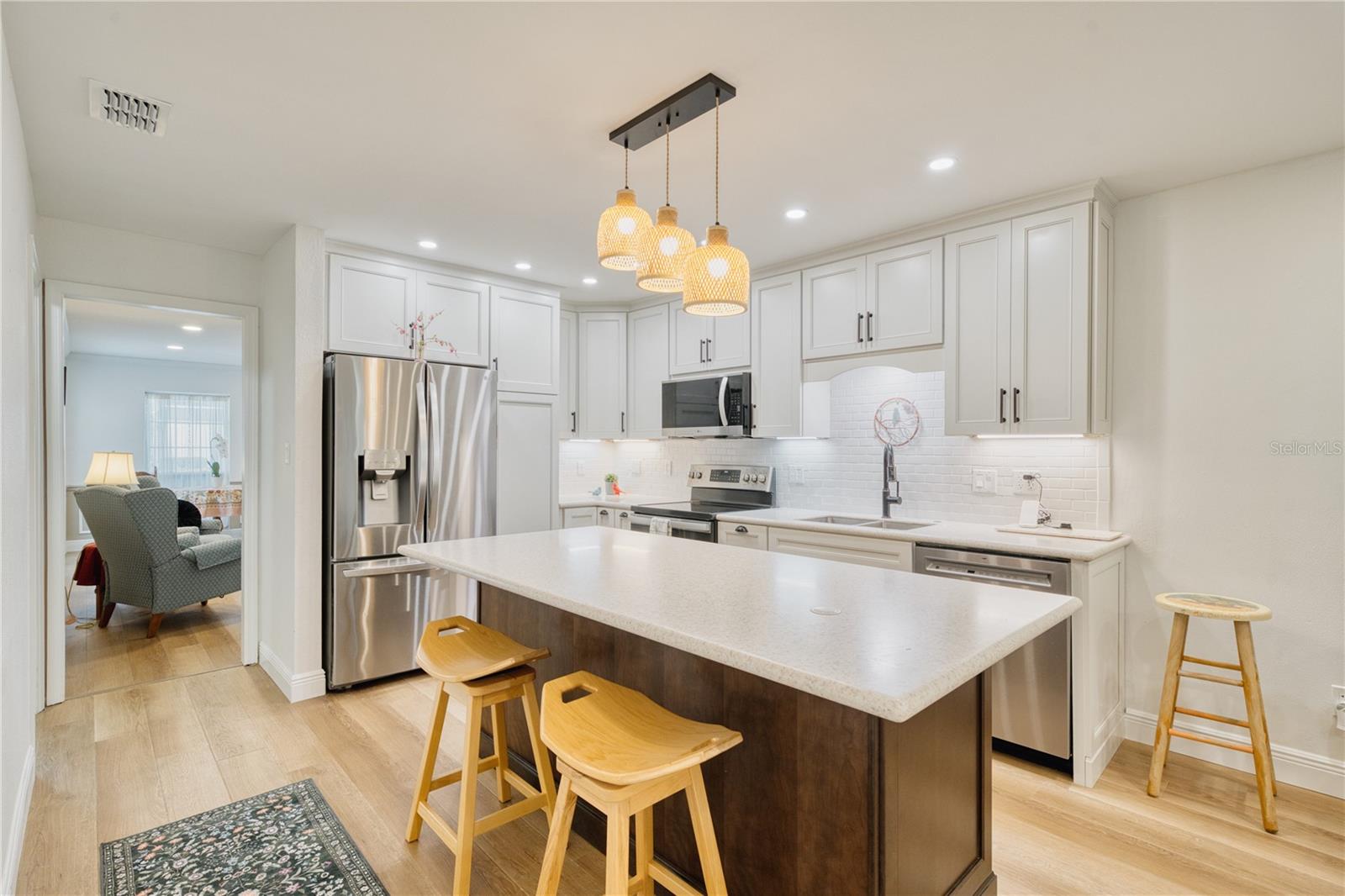 Welcome to this one story, renovated condo located in the desirable Country Club Townhouse Estates adjacent to the Spring Lake neighborhood and the Country Club of Orlando. This 2 bedroom, 2 bath, 1105 sqft condo, comes with newly renovated kitchen and baths, new luxury vinyl flooring and more! The entrance hall leads into the living and dining room combo, featuring Wainscoting and crown molding and a slider that leads to an enclosed, private patio. The renovated kitchen has ceiling high cabinets that include a corner Lazy Susan cabinet, spice and trash drawers, new SS appliances, a large island with bar seating and storage, an abundance of counter space and is open to the family room. A slider in the family room leads to another private outdoor space that includes a screened back porch and walled private backyard. Other features include a 2 car garage, with cabinetry for extra storage, new windows and doors, new interior and exterior paint, new duct work and vents. The roof over the garage was replaced in 2024, roof over the living space in 2011, re-pipe in 2005, an electric update in 2024 includes recessed lighting and ceiling fans and the water heater was replaced in 2010. Country Club Townhouse Estates is located close to downtown Orlando, downtown UCF and Valencia College campuses, I-4, the shops and restaurants in College Park and the Packing District which includes a YMCA, Publix, 4Roots Farm, Southern Box Co food hall and more! Community amenities include a community pool, front yard lawn care, pool maintenance, community entrance, community insurance and reserves. Don't miss out on this renovated condo in a great location!