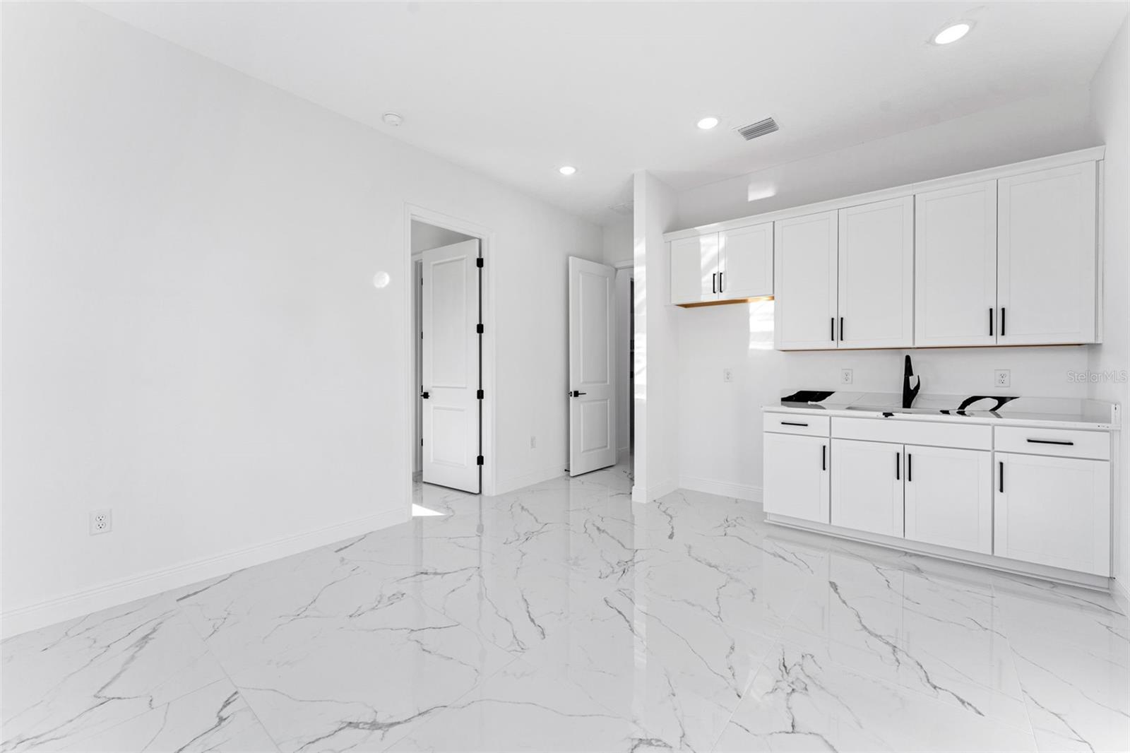 Welcome to your dream home in Wedgefield, where modern luxury meets peaceful country living. Situated on a full acre surrounded by mature trees, this elegant new construction residence offers the perfect blend of space, privacy, and thoughtful design. Step inside to high tray ceilings, custom flooring, and upscale finishes that set the tone from the moment you enter the open foyer. The split-bedroom floor plan provides both comfort and functionality, with two spacious guest bedrooms located at the front of the home and connected by a convenient Jack-and-Jill bathroom. The heart of the home is the expansive open living area, where the living room, dining space, kitchen, and breakfast nook flow seamlessly together. The designer kitchen is a showstopper, featuring custom cabinetry, stone countertops, and beautiful tile throughout—perfect for everyday living and entertaining alike. Tucked away at the back of the home for maximum privacy, the primary suite offers a quiet retreat with plenty of space to unwind. A standout feature of this home is the private-entry fourth bedroom suite, complete with an additional flex room equipped with a kitchenette (sink and countertop). This versatile space is ideal for multigenerational living, long-term guests, or a private home office setup. Additional highlights include a large laundry room, a 3-car garage, and the peace of mind that comes with brand-new construction. Step outside to enjoy the covered lanai and an extended paver patio—perfect for entertaining or relaxing while taking in the serene, tree-lined surroundings. Located in the desirable Wedgefield/Rocket City area of East Orlando, this property offers the feel of country living while remaining close to everything. Enjoy shopping and dining at Waterford Lakes Town Center (about 20 minutes away), explore nature at Hal Scott Preserve (under 10 minutes), or head to Cocoa Beach (approximately 35 minutes) for a day by the ocean. You’ll also appreciate convenient access to Lake Nona’s Medical City, UCF, Orlando International Airport, and major highways including SR-528 and SR-520. If you’ve been searching for room to breathe without giving up city convenience, this exceptional home delivers it all. Whether you're looking for your forever home or a private retreat with flexibility, this is a must-see opportunity.