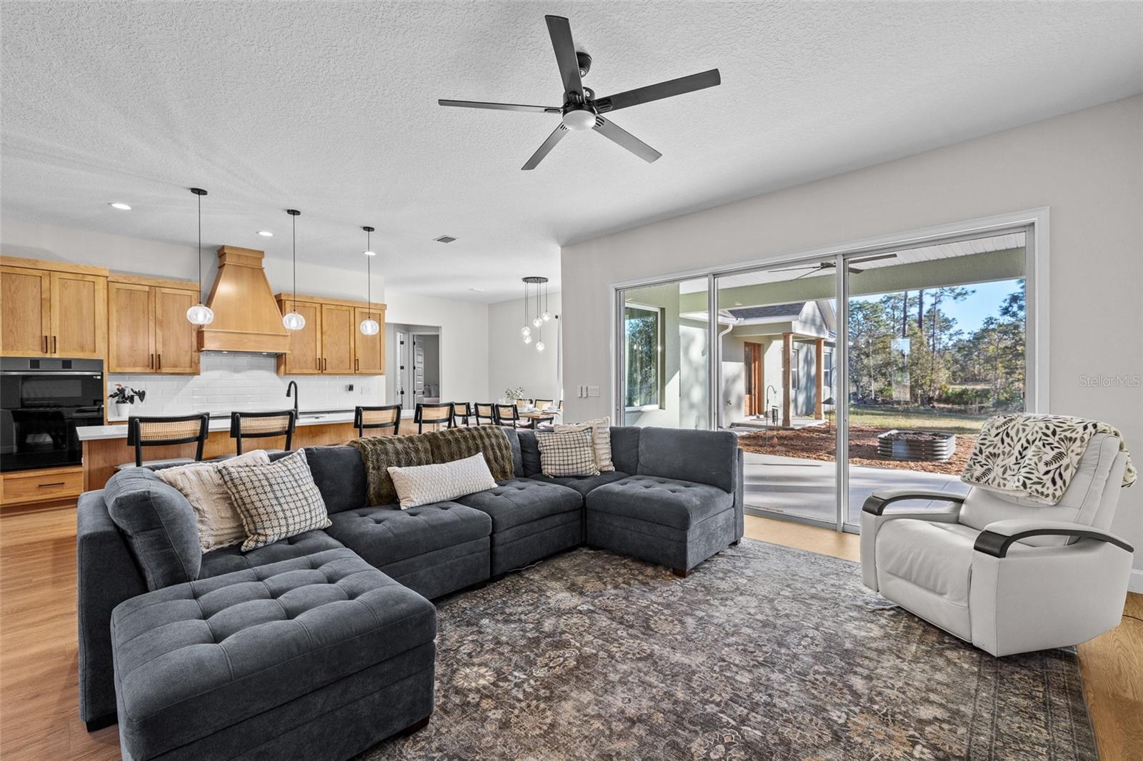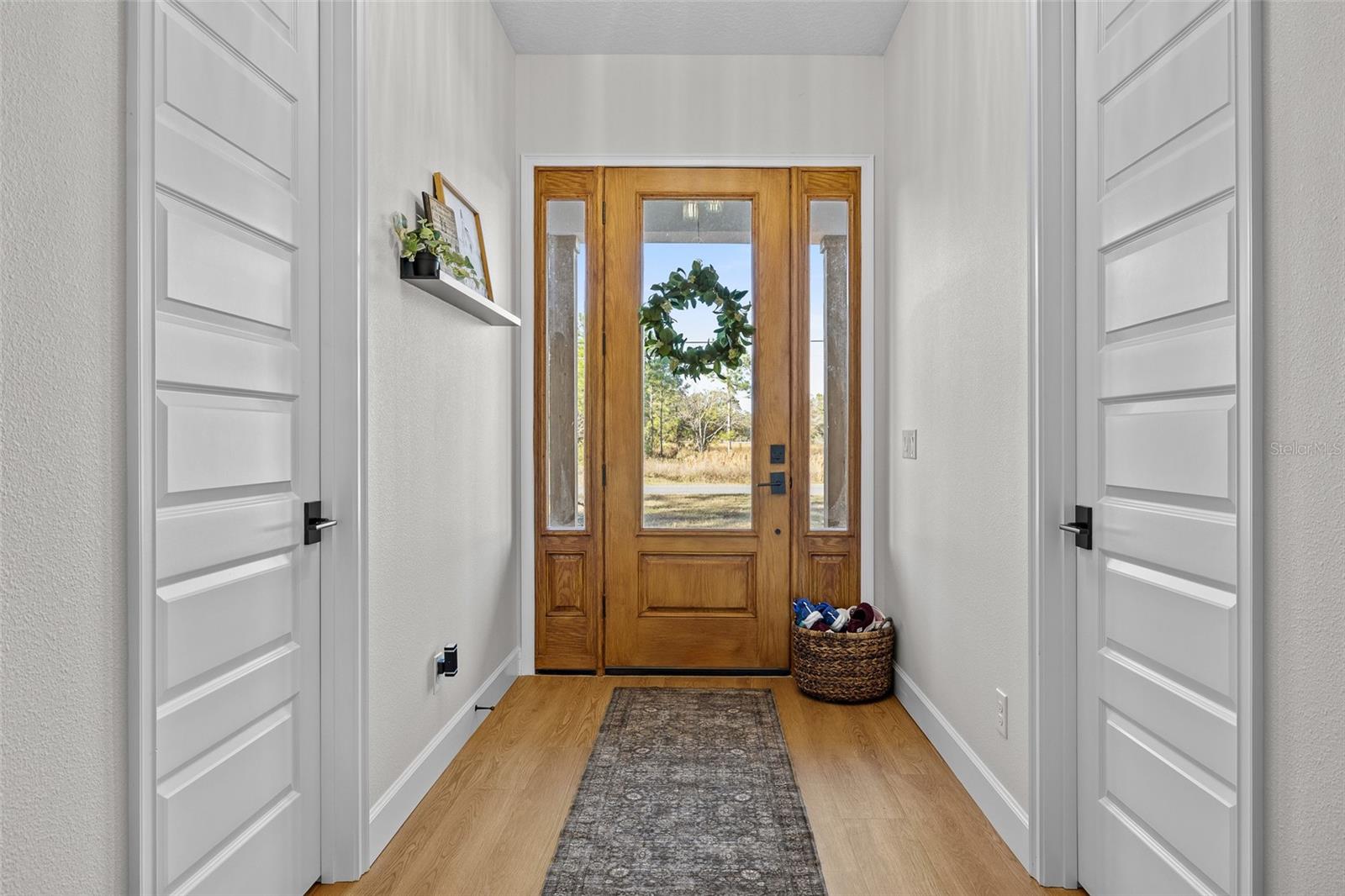 One or more photo(s) has been virtually staged. Discover serene, no-HOA country living on Orange County’s peaceful eastern edge—surrounded by nature and acreage, yet just 18 miles to Orlando International Airport (MCO), 31 miles to Walt Disney World and theme parks, 39 miles to Cocoa Beach, and 32 miles to Kennedy Space Center. Families love the top-rated schools: Wedgefield School (K-8) with an ‘A’ grade and 8/10 GreatSchools rating, plus East River High with a ‘B’ grade. Enter the bright foyer with high ceilings, leading to flex spaces: a spacious office/gym/bonus room on the left with fan, TV, and laminate; a full guest bath on the right with vanity, shower, and laminate. The open-concept kitchen-great room features nearly new Samsung appliances (four-door fridge, built-in oven/microwave, cooktop, hood, dishwasher), granite counters, island seating, eat-in bar, formal dining for 10 with chandelier, wall-mounted TV, fan, laminate floors, 10-ft ceilings, 8-ft doors, and 13-ft sliders to a truss-covered back porch. This 5-bed, 4-full-bath, 2-half-bath home (expandable to 7 beds) has laminate flooring main areas (carpet in beds), crown molding, and tray ceilings. The oversized primary suite includes dual vanities, standalone tub, double shower, tiled walls, water closet, 7x5-ft shower, 8x10-ft walk-in closet, fan, and TV. Additional bedrooms include king-sized potential, walk-ins, and Jack-and-Jill baths. Upstairs loft (potential 7th bed) has fan, half bath (room for full conversion), built-in shelving, and 225-sq-ft finished storage with wood floors and mechanical room. Luxuries include two full kitchens (main and in-law suite), two laundry rooms (main with Electrolux washer-dryer, counters, sink; suite with stacked unit and private heater), three extra wall-mounted TVs (total four), fans everywhere, and curtains on all windows. Furnishings negotiable outside price. The mother-in-law suite has private entry/patio, living room with two fans and TV, massive kitchen (20-ft counters, appliances, walk-in pantry), full laundry with storage/exit, oversized primary bed with carpet, fan, TV, en suite (dual vanities, handicap-accessible toilet/shower), and huge walk-in closet. Ideal for family, guests, or income. Outside: 8x32-ft front porch under truss, spacious back porch with fire pit, 751-sq-ft four-car garage with golf cart space, tandem parking, openers, epoxy floors, cabinets, scenic canal views, mature landscaping, and acreage for hobbies. Energy-efficient with insulating foam throughout for extreme savings, move-in ready with premium finishes—no HOA means freedom for families, or multi generational families near golf, shopping, attractions, and Hal Scott Preserve. Schedule your showing today—contact for details. Don’t miss this gem! MLS Embed Code: <iframe width="853" height="480" src="https://my.matterport.com/show/?m=ZPkqydEPUCr& mls=1" frameborder="0" allowfullscreen allow="autoplay; fullscreen; web-share; xr-spatial-tracking;"></iframe>