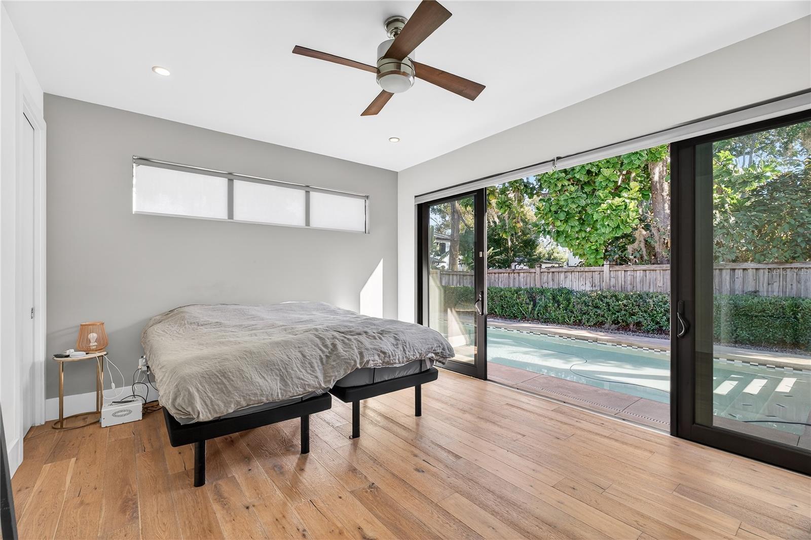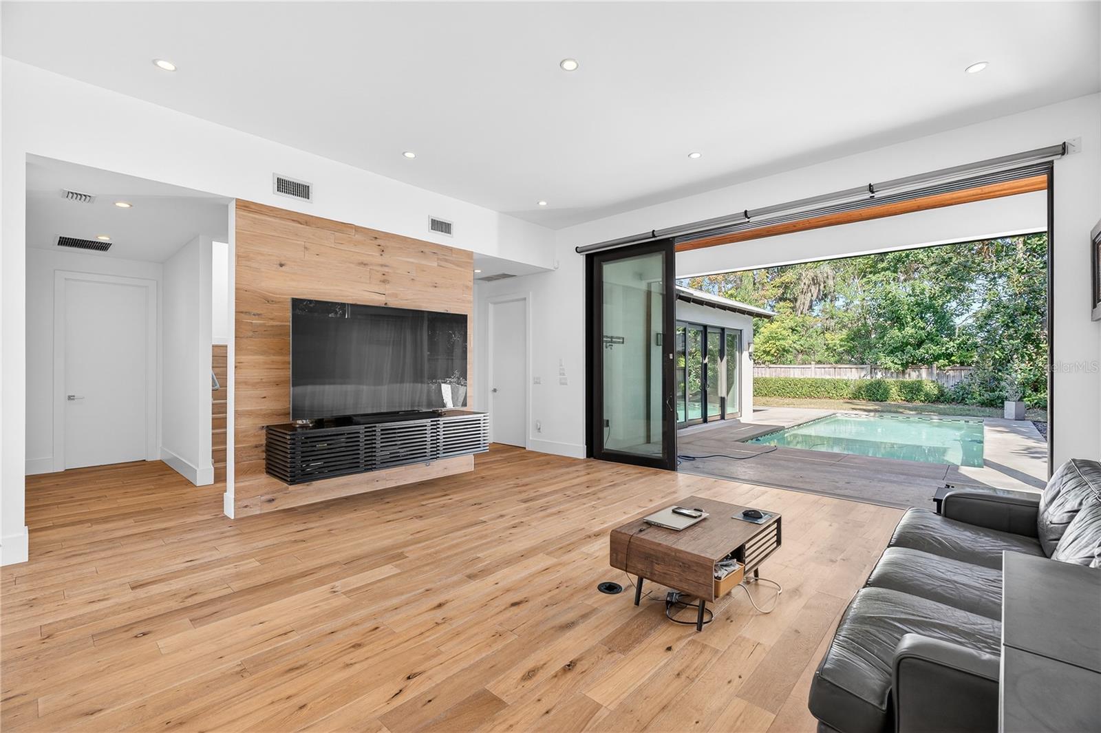 Located in the heart of College Park, one of Orlando’s most desirable neighborhoods, this contemporary residence was thoughtfully designed by renowned architect Michael Wenrich and expertly built by respected custom builder Winter Brothers Construction. The home showcases exceptional craftsmanship, with fine finish carpentry and refined architectural details throughout. Upon entry, the open-concept floor plan immediately impresses with soaring 12-foot ceilings and expansive commercial-grade sliding doors and windows that flood the home with natural light, creating a bright and inviting atmosphere. Reclaimed oak wood flooring, custom built-ins, a durable metal roof, and sophisticated interior finishes reflect both quality and timeless elegance. The design strikes a rare balance—rich in detail yet understated and refined. The gourmet kitchen is ideal for both everyday living and entertaining, featuring bar seating, solid wood cabinetry, Thermador Professional Series appliances, and Cambria solid-surface countertops. The spacious owner’s retreat offers retractable sliding doors that open directly to the backyard and pool area, seamlessly blending indoor and outdoor living. The spa-inspired primary bathroom includes a standalone soaking tub, a luxurious walk-in shower, and a dual-sink vanity. Upstairs, three additional bedrooms and two full bathrooms provide ample space, each enhanced by abundant windows and sliding doors that maintain an open, airy feel throughout the level. The backyard is a private retreat, offering a tranquil setting with a saltwater pool, outdoor shower, and a wooden deck ideal for relaxation or entertaining. Additional features include an automated window blind system, motorized patio screens, and a high-efficiency blown-in foam insulation system designed for superior energy savings. This home is a testament to superior construction quality, thoughtful design, and enduring craftsmanship—an exceptional opportunity to enjoy modern luxury living in College Park.