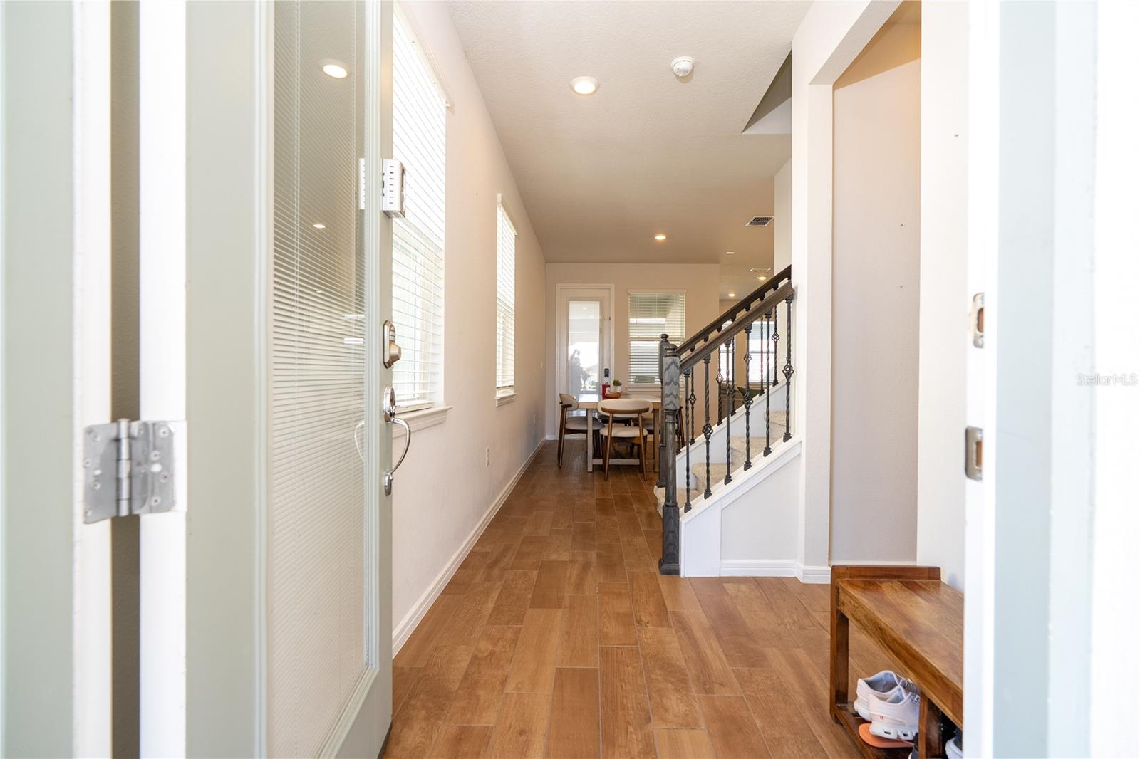 Built in 2023, this beautiful Juniper floor plan is located in the highly desirable, gated resort-style community of Isles of Lake Nona, offering serene water views and an exceptional Lake Nona lifestyle. Ideally positioned just minutes walking distance to Luminary Elementary and Middle school, also from Lake Nona Town Center, Medical City, and the USTA, this two-story home combines modern design, comfort, and convenience. The welcoming foyer opens to a private first-floor bedroom and full bathroom at the front of the home, showcasing peaceful water views—perfect for guests or a home office. The open-concept layout flows into the upgraded gourmet kitchen, complete with built-in appliances, quartz countertops, a large center island, pantry, and a spacious gathering room ideal for entertaining. Enjoy a covered lanai and a charming courtyard connecting the home to the rear-entry two-car garage. Recent enhancements include a privacy fence, low-maintenance synthetic grass, and a whole-home water filtration system, creating an inviting and functional outdoor space. Upstairs, you’ll find a versatile loft, a generous owner’s suite with en-suite bathroom and walk-in closet, two additional bedrooms sharing a full bath, and a conveniently located laundry room. All four bedrooms feature walk-in closets. Designer finishes throughout include white cabinetry, wood-look porcelain tile flooring, pendant lighting, window blinds, and a complete appliance package—including washer and dryer. The home is also pre-wired for Smart Home technology. The HOA provides exceptional value, covering landscaping for individual homes, internet service, gated access, and full use of the community’s resort-style amenities, including a clubhouse, fitness center, pool with splash pad, playgrounds, and basketball, tennis, and pickleball courts. Easy access to SR-417 allows for a quick commute to downtown Orlando, Disney, and Florida’s beaches. Experience modern living with resort-style comfort—this Lake Nona home is ready to impress.