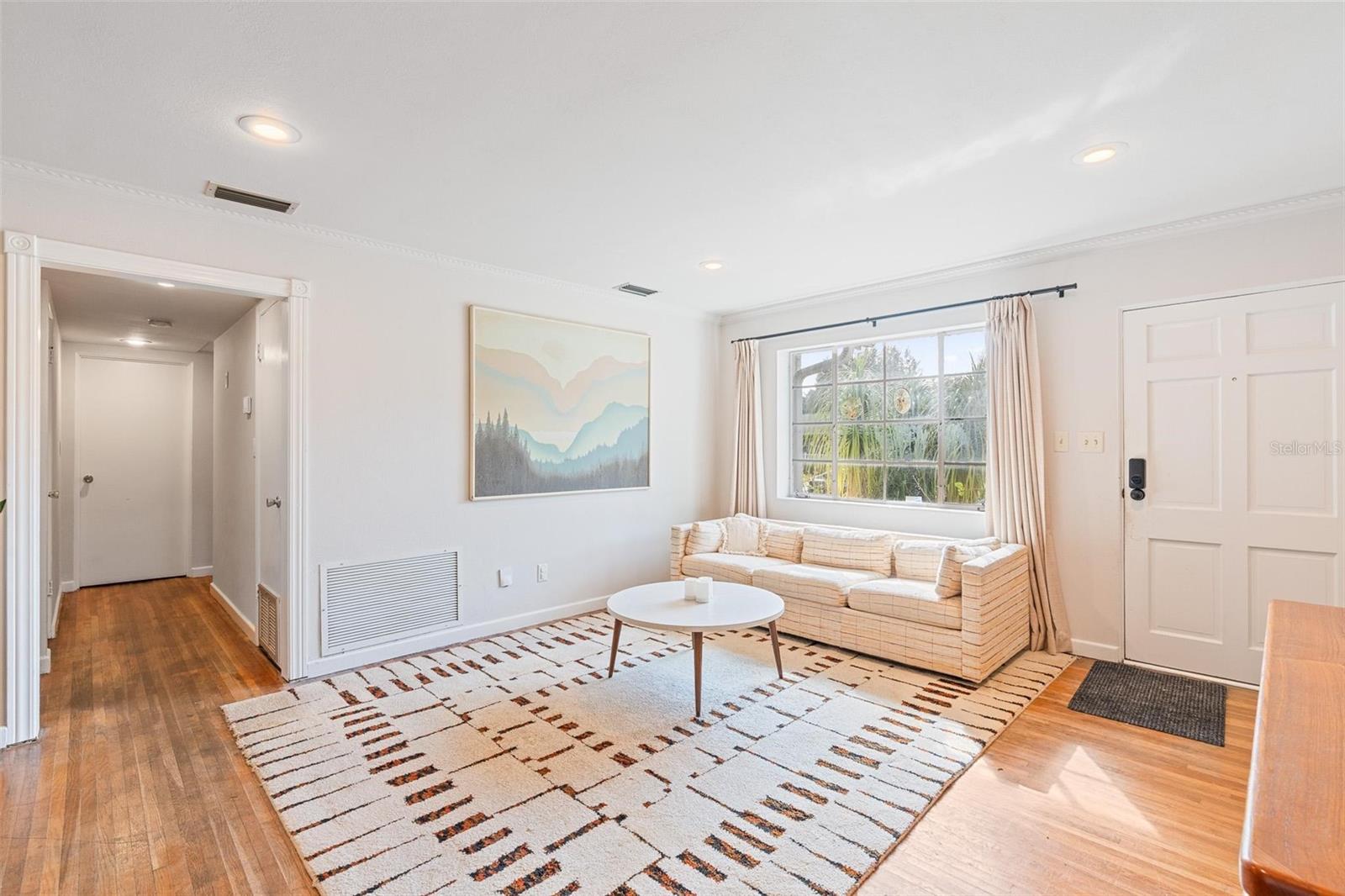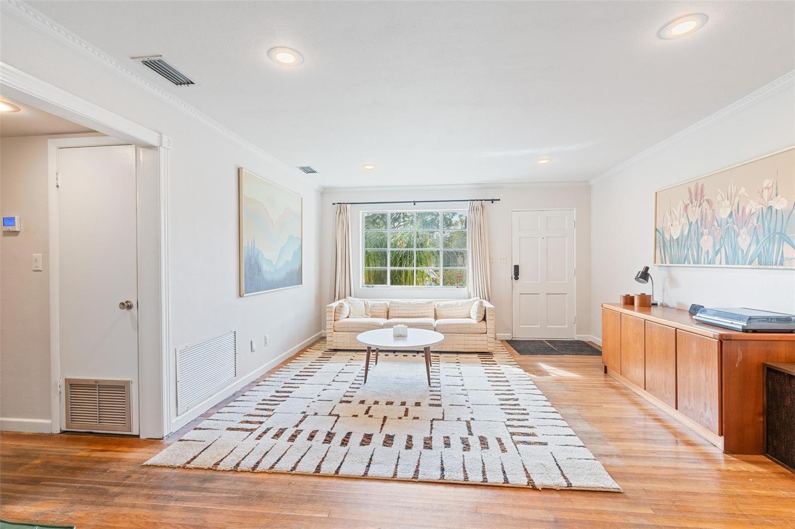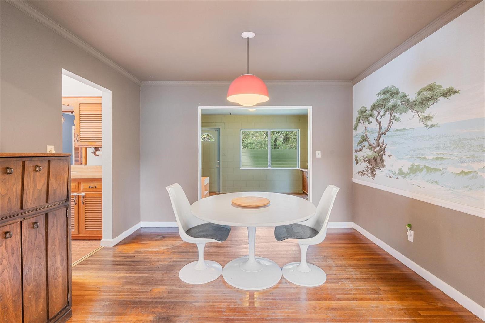 LOCATION, LOCATION, LOCATION!!!!! Don't miss the opportunity to own this charming 4 bedroom and 2 full bath home located in the heart of Orlando! Offering an open floorplan with seamless transitions throughout the main living areas creates an inviting space you’ll love. Upon entering, you’re welcomed by an expansive living area highlighted by original hardwood floors, abundant natural light, and serene views of the private backyard. The centrally located dining area flows effortlessly into the galley kitchen and Florida room, making it ideal for entertaining. Kitchen features solid wood cabinetry, an extended dinette area, and a private entry to the garage with a convenient side door. Florida room offers an additional flexible space and with custom solid wood built-in shelving. Primary bedroom and two oversized secondary bedrooms are located at the end of hallway off main living area, while the fourth bedroom is privately situated off the Florida room—perfect for guests, home office or flex space. Step outside to your private backyard oasis complete with mature landscaping, botanicals, and fruit trees. Walking distance to the NEW Pershing K-8 school only two blocks away and minutes from the Fort Gatlin Recreation Complex Outdoor Activity Venue & Crystal Lake Park. Just minutes from downtown Orlando, SODO, the Milk District, Orlando International Airport, theme parks, shopping, and more.