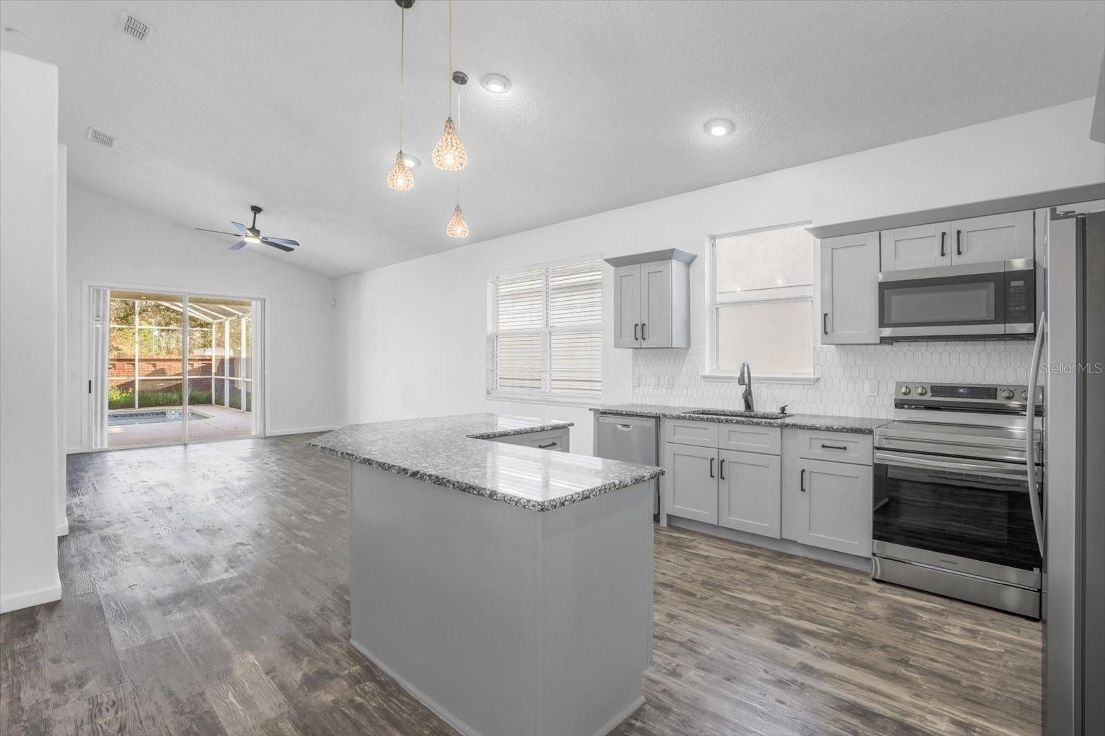 Beautifully updated 4-bed, 2-bath home with an open layout and modern finishes throughout. Features include a walk-in closet, new kitchen with granite countertops, and luxury vinyl flooring across the entire home. Enjoy a newly upgraded pool with new tile and resurfacing, plus a screened-in private pool area. Recent upgrades include fresh interior and exterior paint, new fans and lighting, a newly tiled common bathroom, and brand-new stainless steel kitchen appliances including a Whirlpool side-by-side refrigerator and dishwasher, and a Samsung 5-burner smart stove with oven and air-fry. Extended covered patio is perfect for outdoor dining and relaxing. Conveniently located near Lake Nona, major highways, Disney, and top-rated Orange County schools. Schedule your private showing today.