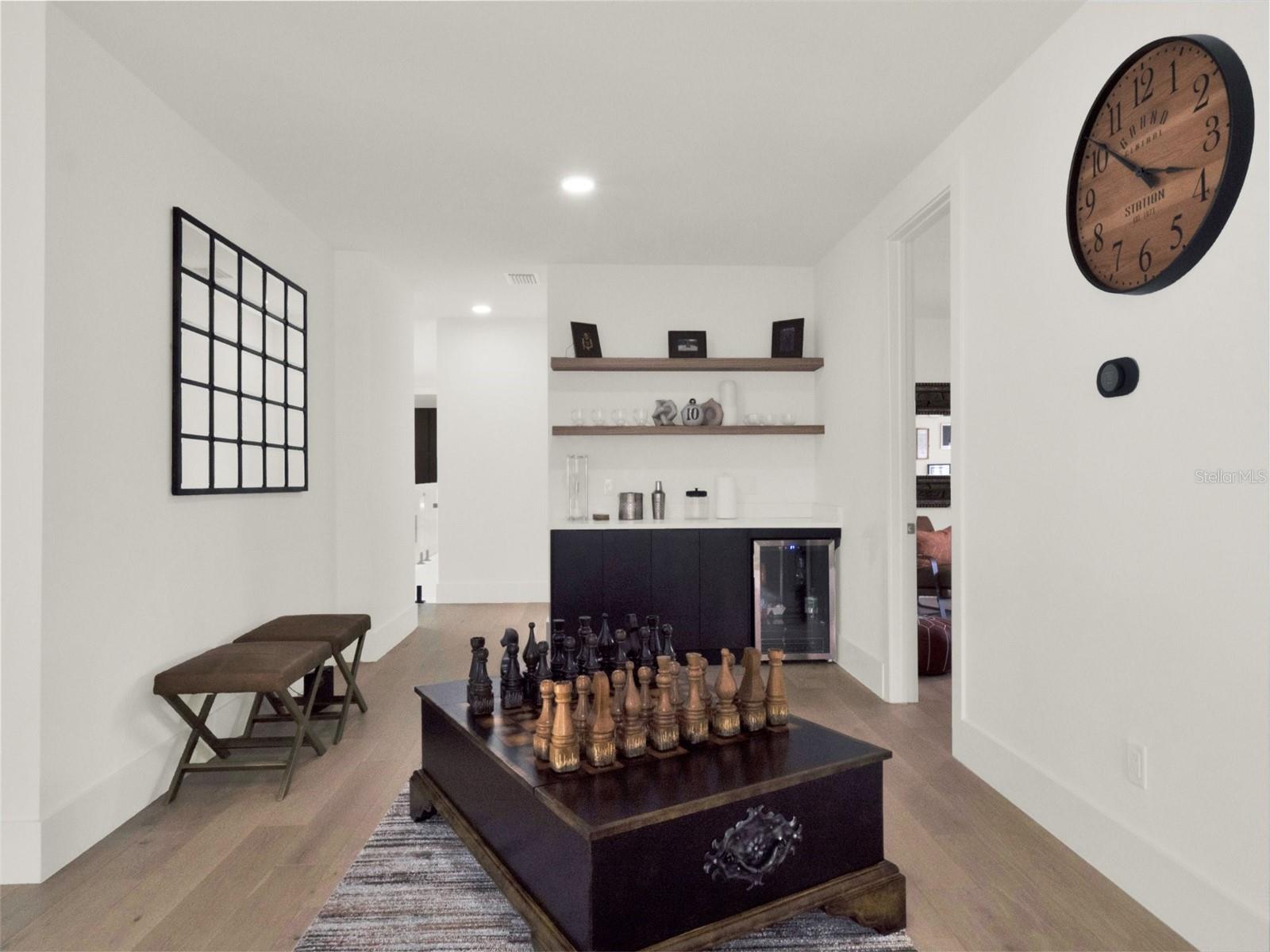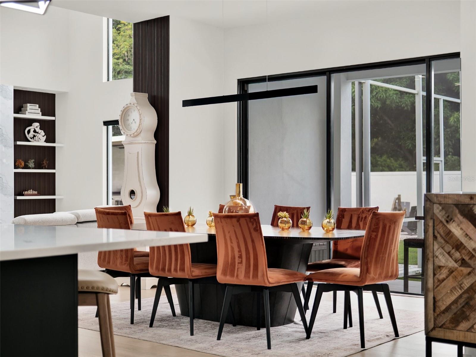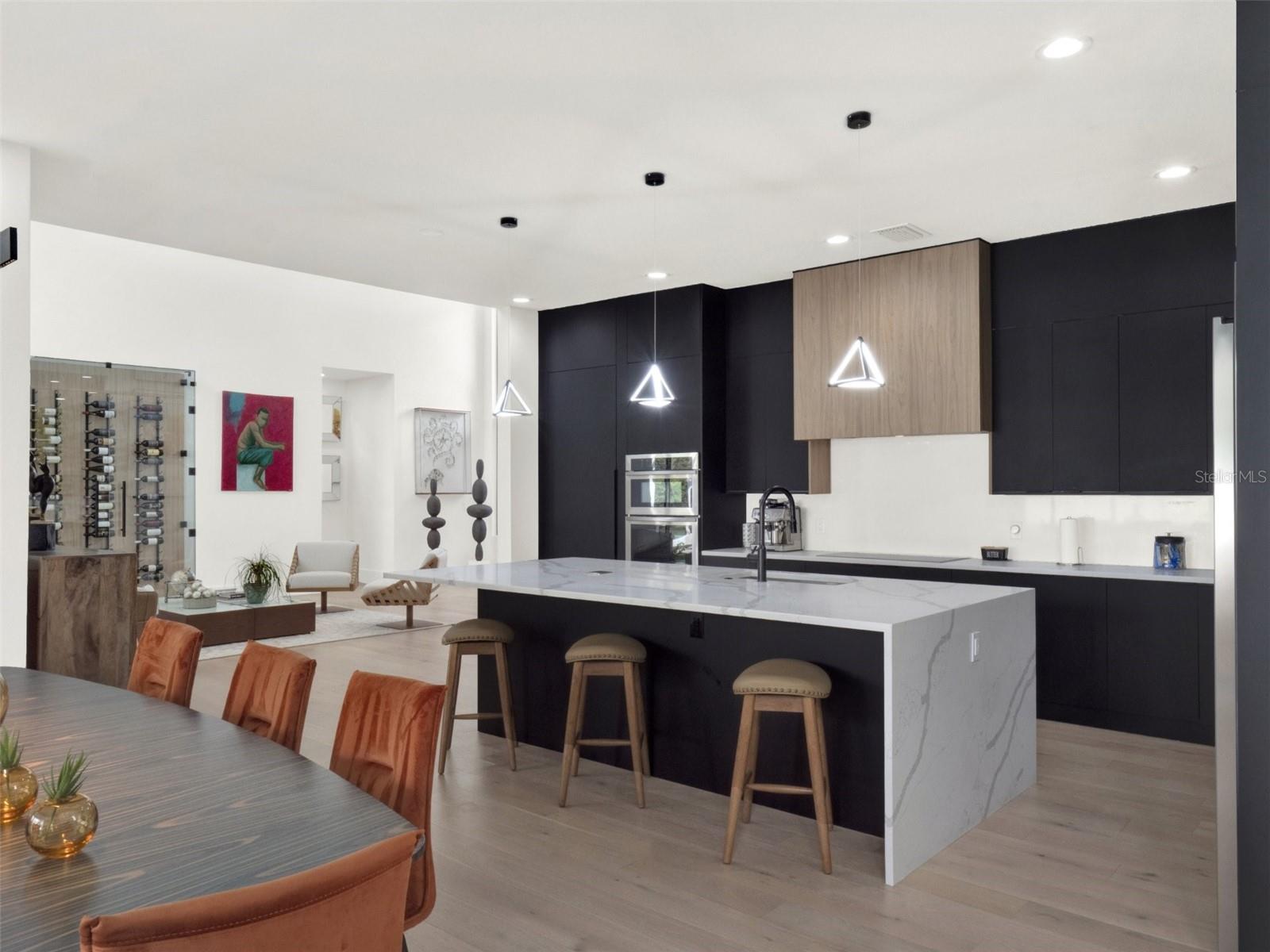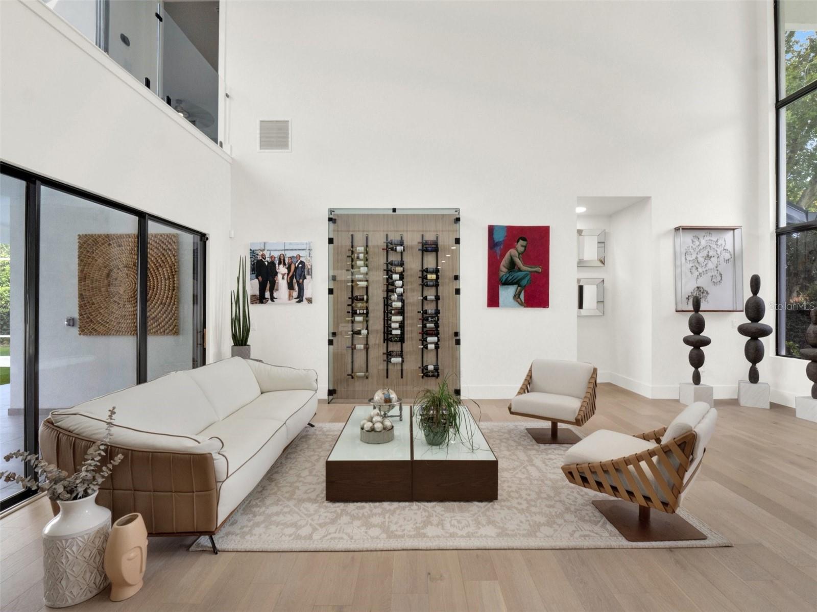 Set within the prestigious Bay Hill Golf and Country Club, this architecturally striking five-bedroom residence delivers a rare blend of contemporary design, luxury finishes, and refined craftsmanship. From the moment you arrive, the home’s modern elevation, clean lines, and manicured grounds create an immediate sense of presence and understated luxury. The entry experience is dramatic and intentional. Upon arrival, you are welcomed into a formal living room defined by soaring 20ft ceilings, gallery-style wall space, and abundant natural light. A custom glass-enclosed wine room anchors the space, serving as both a functional showpiece and an architectural focal point, ideal for entertaining and display. The home unfolds seamlessly into its main living areas, designed with openness and flow in mind. The gourmet kitchen is a centerpiece, featuring an oversized waterfall-edge island, sleek custom cabinetry, large walk-in panrty, premium appliances, and striking modern lighting. Adjacent to the kitchen, the dining area offers a refined yet inviting setting, framed by expansive glass doors that connect indoor living to the outdoor entertaining spaces. Beyond the dining area, the family room commands attention with its dramatic double-height 20ft ceiling, custom feature wall, and an abundance of oversized windows that flood the space with natural light. The volume, sightlines, and connection between rooms create an effortless balance between elegance and comfort, making the home equally suited for intimate living and large-scale gatherings. A private first-floor office adds versatility for work or quiet retreat. The thoughtfully designed floor plan includes two luxurious primary suites, one on each level, offering exceptional flexibility for multigenerational living or guests. Each suite features a spa-inspired en-suite bathroom, while the upper-level primary retreat opens to a private balcony overlooking the backyard and the ground level enjoying a large walk-in closet. Additional bedrooms are generously sized and intelligently arranged, including a Jack-and-Jill configuration and a separate en-suite bedroom upstairs. Outdoors, the home transforms into a private resort-style setting. A sparkling pool, summer kitchen, and fire pit create an inviting environment for entertaining, relaxing, and enjoying Florida’s year-round lifestyle. The seamless indoor-outdoor flow enhances privacy and livability. Located within one of Orlando’s most iconic golf communities, residents of Bay Hill enjoy access to world-class amenities including championship golf, tennis, fitness facilities, and an exclusive clubhouse lifestyle. This residence presents a rare opportunity to own a boldly designed, newly refined luxury home in one of Central Florida’s most sought-after communities.