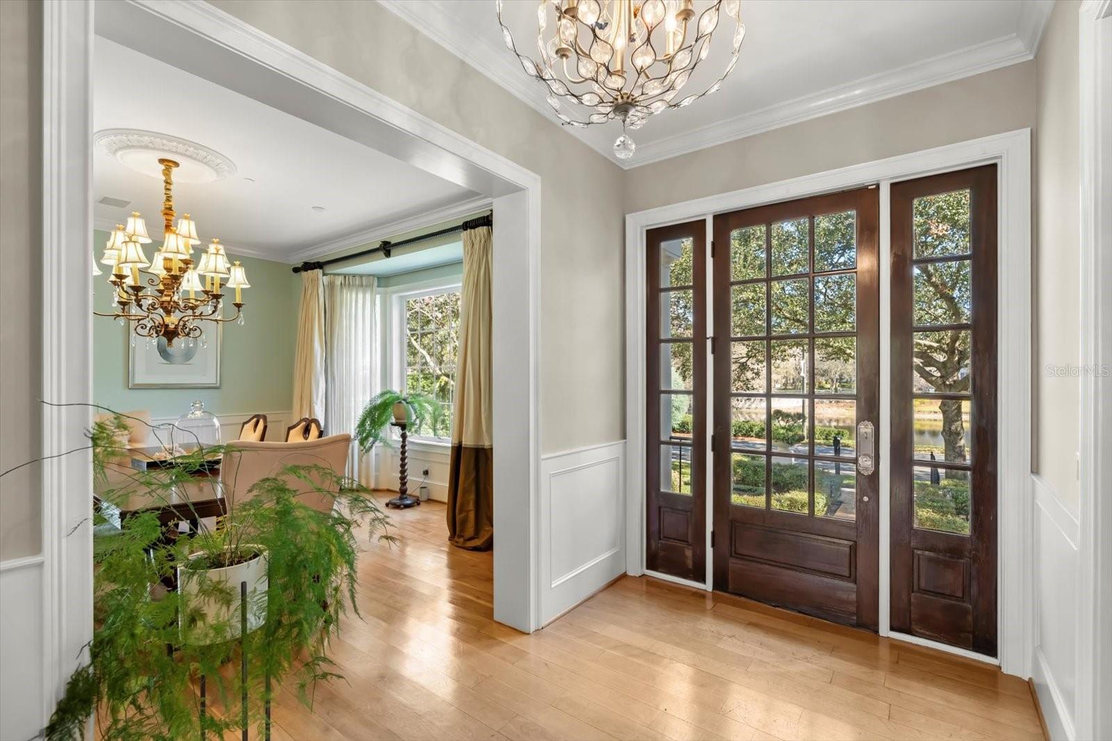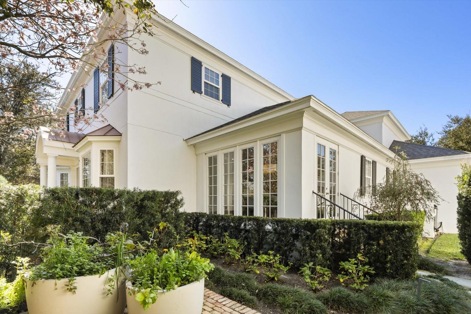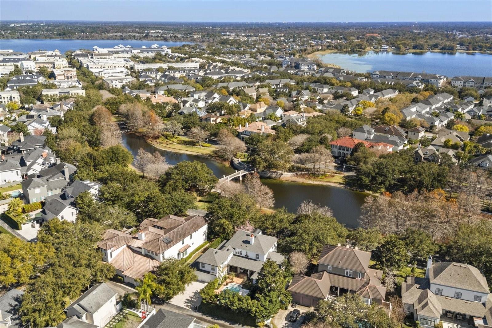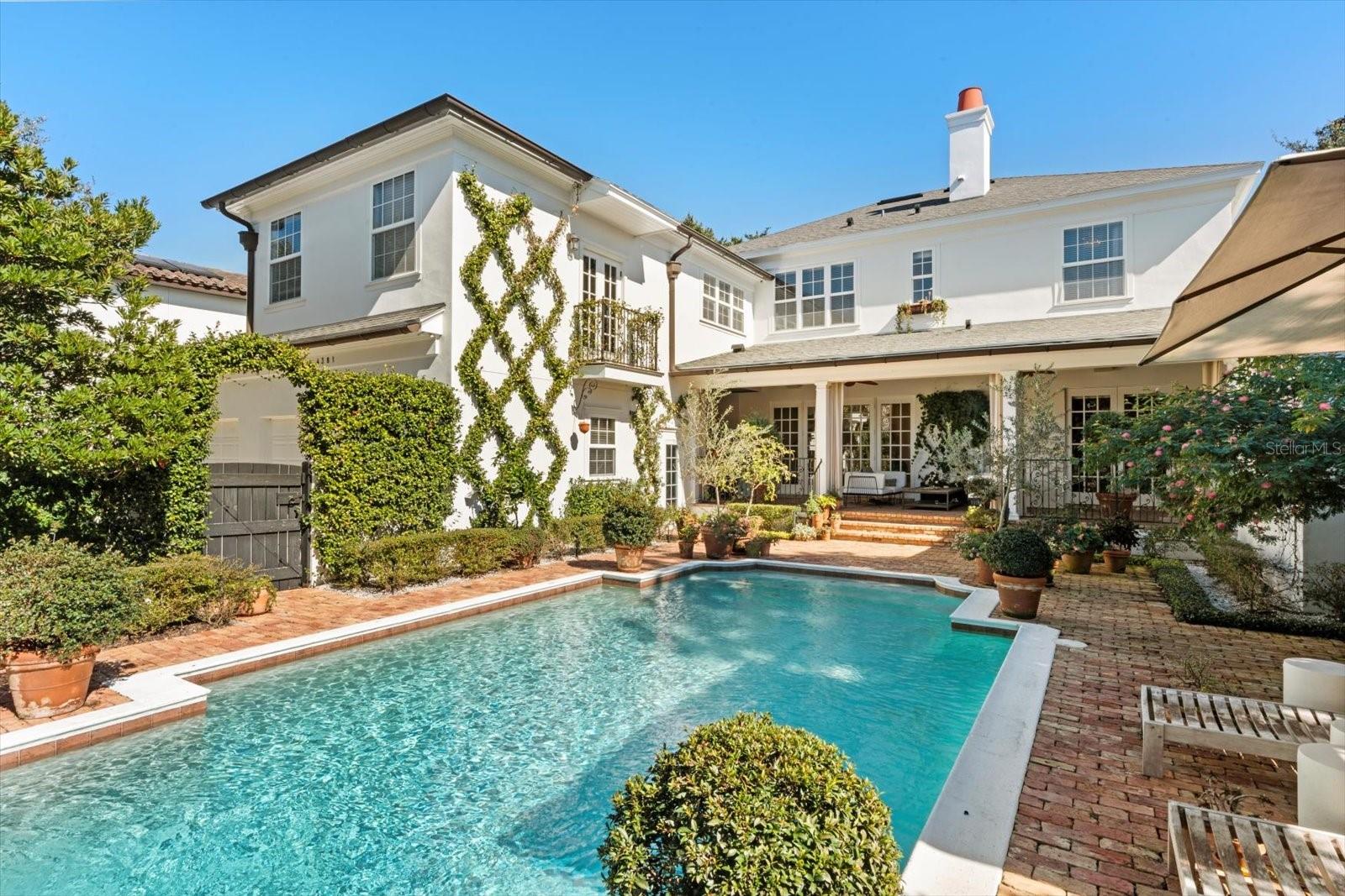 Experience refined living in the heart of Baldwin Park with this stunning Custom Rex Tibbs estate home, perfectly positioned to capture serene views of the surrounding park and waterway. The open floor plan offers elegant formal living and dining spaces that flow seamlessly into a beautiful gourmet kitchen and a warm, inviting family room with a fireplace. French doors from both the living room and the first-floor primary suite open to a breathtaking pool area and private garden, creating an effortless indoor–outdoor lifestyle. A private study/den is also located downstairs, ideal for work or quiet retreat. Upstairs, you’ll find three spacious bedrooms, a flex space with a wet bar, and an expansive bonus room featuring rubber gym flooring and a charming balcony overlooking the estate grounds. This home showcases many upgrades, including quartz countertops, a marble primary bathroom, extensive millwork, crown molding, hardwood floors, elegant lighting, and custom built-ins throughout. The beautifully landscaped backyard is designed for entertaining, offering a historic reclaimed brick patio, a large private pool, and a covered outdoor kitchen. Additional updates include a new roof (2022) and three A/C units replaced between 2024 and 2022. All new Salt Water Filter and Heater in 2023, along with all new outdoor landscaping lighting, and sound system. The landscaping was installed for the front and back in 2022 to maximize privacy. All of this is located in the heart of Baldwin Park, one of Orlando’s most sought-after communities known for its pedestrian-friendly design, top-rated schools, lakeside trails, multiple parks, community pools, dog parks, boutique shopping, fitness studios, waterfront dining, and vibrant year-round events including concerts, farmers markets, and seasonal festivals. his exceptional home is a must-see. Schedule your private showing today.