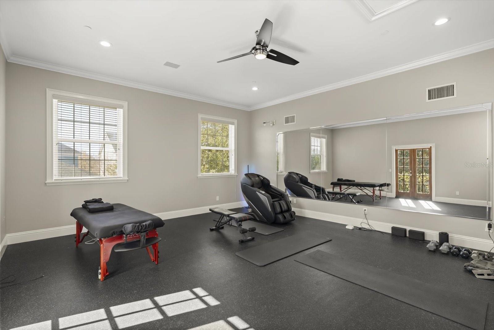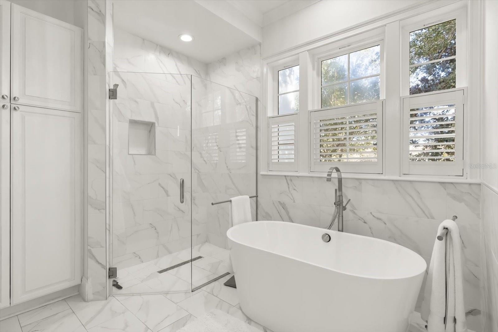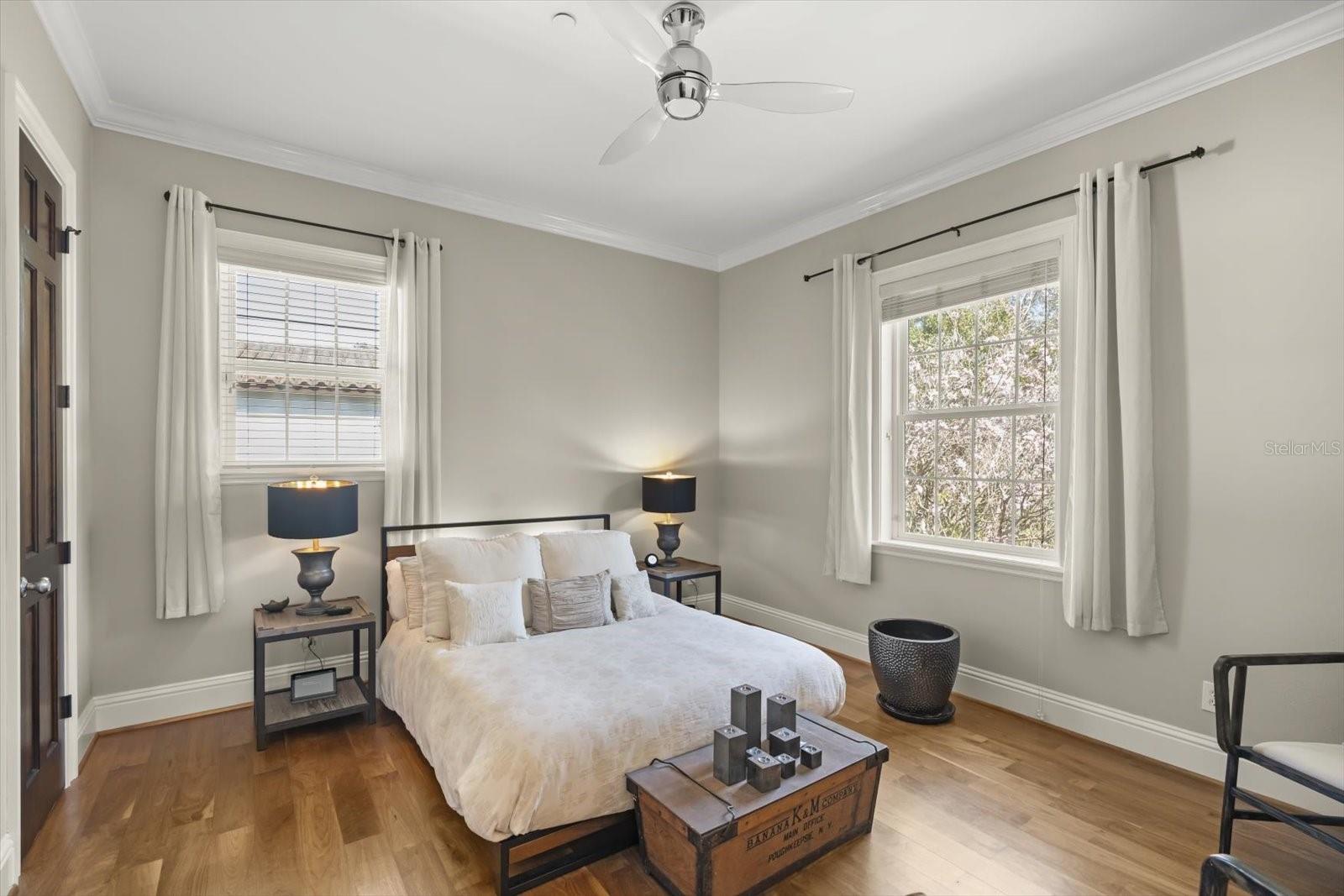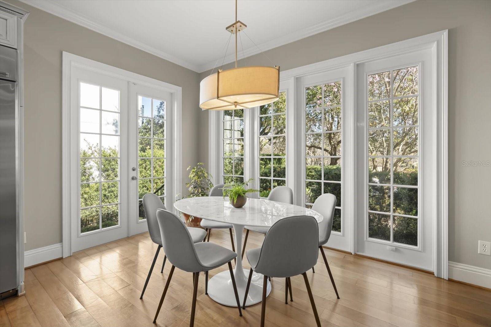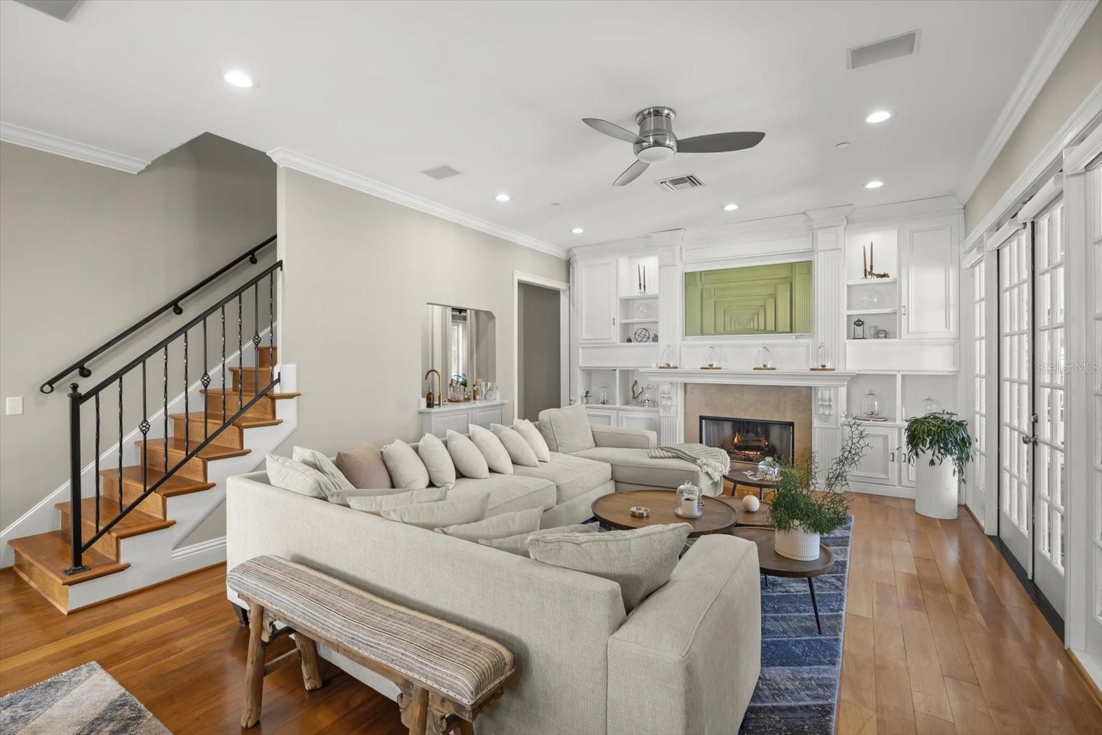 Experience refined living in the heart of Baldwin Park with this stunning Custom Rex Tibbs estate home, perfectly positioned to capture serene views of the surrounding park and waterway. The open floor plan offers elegant formal living and dining spaces that flow seamlessly into a beautiful gourmet kitchen and a warm, inviting family room with a fireplace. French doors from both the living room and the first-floor primary suite open to a breathtaking pool area and private garden, creating an effortless indoor–outdoor lifestyle. A private study/den is also located downstairs, ideal for work or quiet retreat. Upstairs, you’ll find three spacious bedrooms, a flex space with a wet bar, and an expansive bonus room featuring rubber gym flooring and a charming balcony overlooking the estate grounds. This home showcases many upgrades, including quartz countertops, a marble primary bathroom, extensive millwork, crown molding, hardwood floors, elegant lighting, and custom built-ins throughout. The beautifully landscaped backyard is designed for entertaining, offering a historic reclaimed brick patio, a large private pool, and a covered outdoor kitchen. Additional updates include a new roof (2022) and three A/C units replaced between 2024 and 2022. All new Salt Water Filter and Heater in 2023, along with all new outdoor landscaping lighting, and sound system. The landscaping was installed for the front and back in 2022 to maximize privacy. All of this is located in the heart of Baldwin Park, one of Orlando’s most sought-after communities known for its pedestrian-friendly design, top-rated schools, lakeside trails, multiple parks, community pools, dog parks, boutique shopping, fitness studios, waterfront dining, and vibrant year-round events including concerts, farmers markets, and seasonal festivals. his exceptional home is a must-see. Schedule your private showing today.