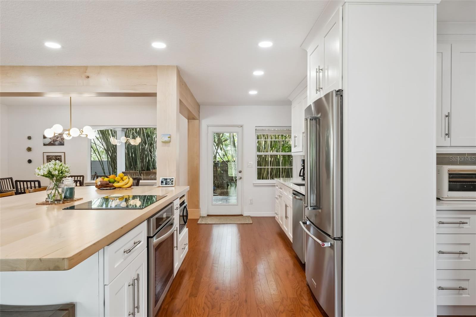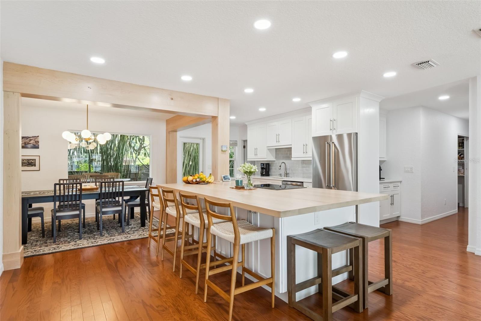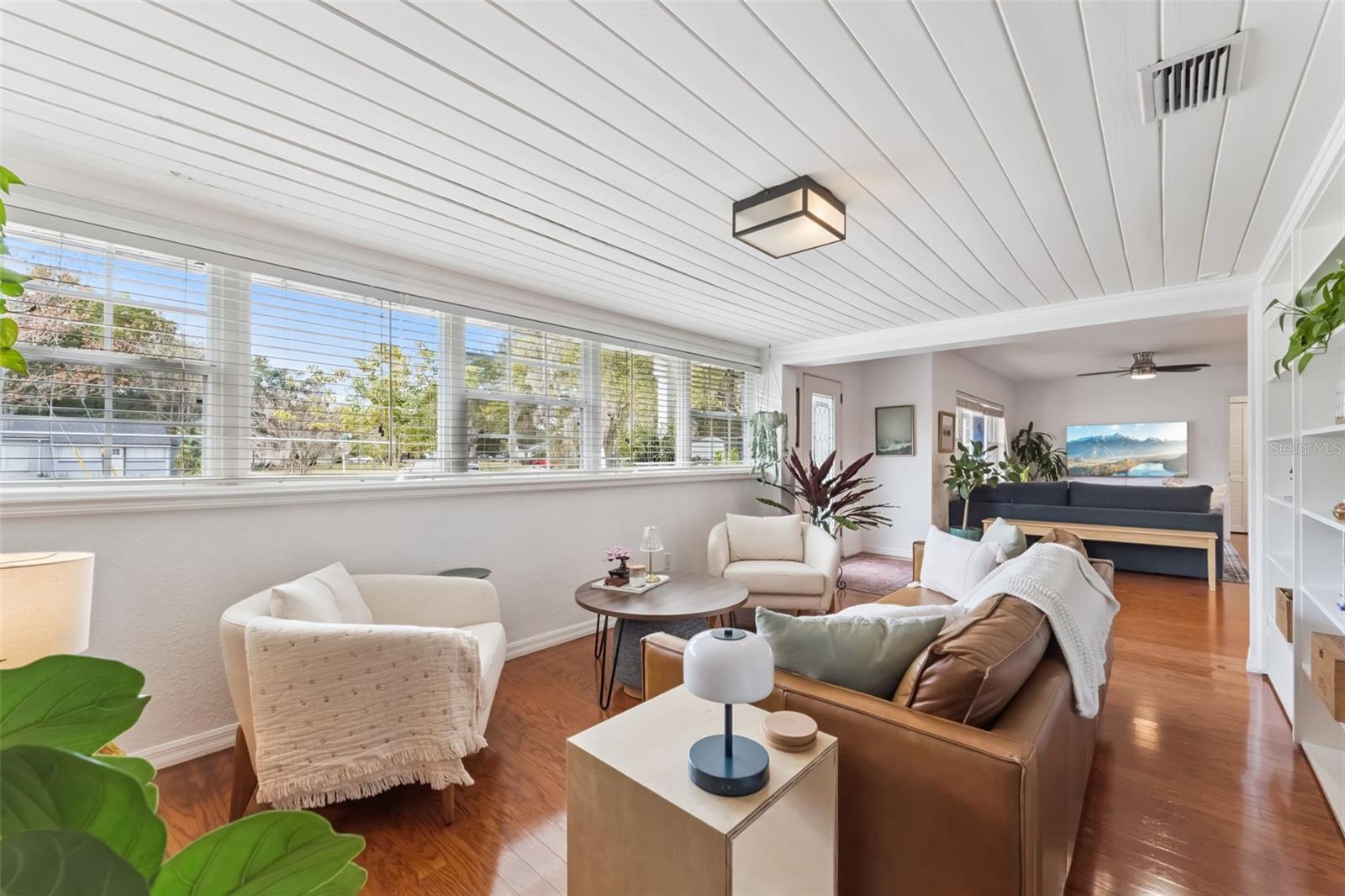 Ideally located in Orlando’s sought-after Colonialtown neighborhood, this charming, move-in-ready home offers the perfect blend of comfort and lifestyle. Set on a spacious .23-acre corner lot, this 3-bedroom, 2-bath residence features just under 2,000 square feet of heated living space and a 2-car side-entry attached garage. An open floor plan and abundant natural light create a bright, welcoming interior with excellent storage throughout. The recently remodeled kitchen is a true centerpiece, showcasing shaker-style cabinetry, quartz countertops, and a stainless steel appliance package with built-in oven and cooktop. A maple wood island countertop with seating adds warmth and character, complemented by a walk-in pantry, dry bar with built-in wine rack and wine fridge, and a dedicated coffee bar. The cozy living room is anchored by a brick, wood-burning fireplace with mantel, tongue-and-groove ceiling, and built-in bookshelves—an inviting space to curl up with a cup of coffee, a glass of wine, and a good book. Flexible living continues with two primary suite options, including a remodeled bathroom featuring a seamless glass walk-in shower and dual-sink vanity. An indoor utility closet adds everyday convenience. Step outside to a private, fully fenced backyard surrounded by mature bamboo—ideal for entertaining or relaxing. Enjoy a covered brick-paver patio spacious enough for both dining and lounge areas, an additional storage shed, and charming brick paver hardscaping including the driveway, walkway to the front door, and patio deck. A welcoming front porch completes the picture. Notable updates include a newer roof (2019), full re-pipe (2003), and an electrical panel replacement (2003), offering added peace of mind for the next owner. Located just minutes from downtown Orlando, Mills 50, and an array of dining, shopping, and entertainment options, this home truly delivers the best of Colonialtown living.