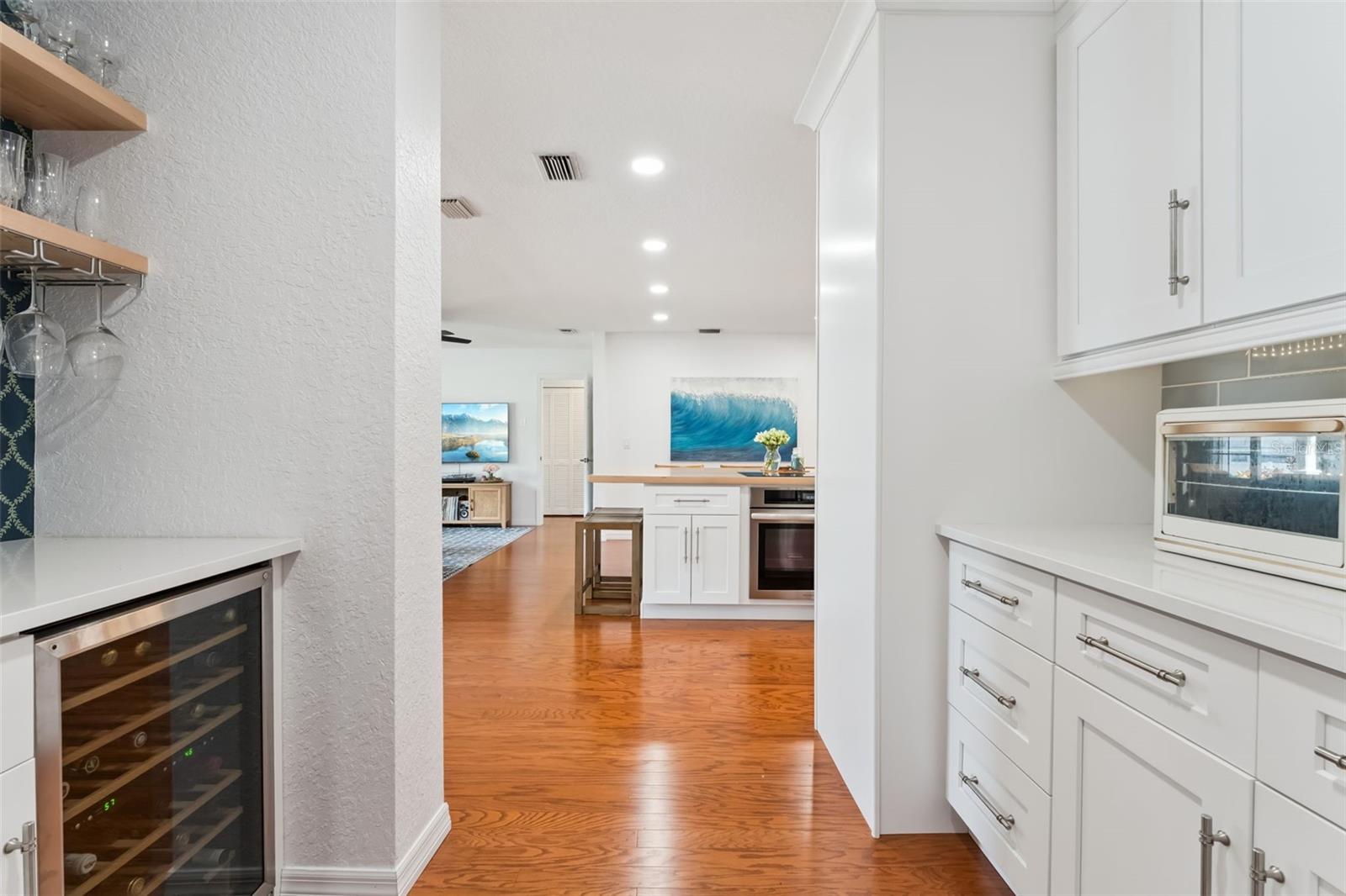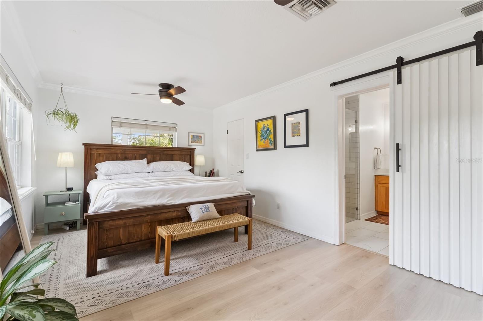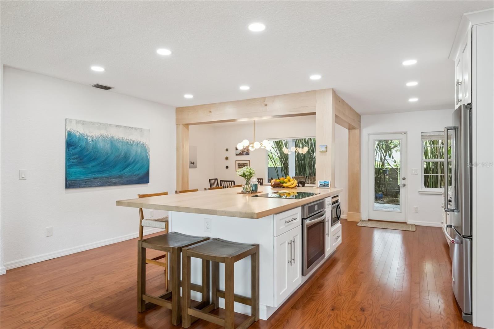 Ideally located in Orlando’s sought-after Colonialtown neighborhood, this charming, move-in-ready home offers the perfect blend of comfort and lifestyle. Set on a spacious .23-acre corner lot, this 3-bedroom, 2-bath residence features just under 2,000 square feet of heated living space and a 2-car side-entry attached garage. An open floor plan and abundant natural light create a bright, welcoming interior with excellent storage throughout. The recently remodeled kitchen is a true centerpiece, showcasing shaker-style cabinetry, quartz countertops, and a stainless steel appliance package with built-in oven and cooktop. A maple wood island countertop with seating adds warmth and character, complemented by a walk-in pantry, dry bar with built-in wine rack and wine fridge, and a dedicated coffee bar. The cozy living room is anchored by a brick, wood-burning fireplace with mantel, tongue-and-groove ceiling, and built-in bookshelves—an inviting space to curl up with a cup of coffee, a glass of wine, and a good book. Flexible living continues with two primary suite options, including a remodeled bathroom featuring a seamless glass walk-in shower and dual-sink vanity. An indoor utility closet adds everyday convenience. Step outside to a private, fully fenced backyard surrounded by mature bamboo—ideal for entertaining or relaxing. Enjoy a covered brick-paver patio spacious enough for both dining and lounge areas, an additional storage shed, and charming brick paver hardscaping including the driveway, walkway to the front door, and patio deck. A welcoming front porch completes the picture. Notable updates include a newer roof (2019), full re-pipe (2003), and an electrical panel replacement (2003), offering added peace of mind for the next owner. Located just minutes from downtown Orlando, Mills 50, and an array of dining, shopping, and entertainment options, this home truly delivers the best of Colonialtown living.