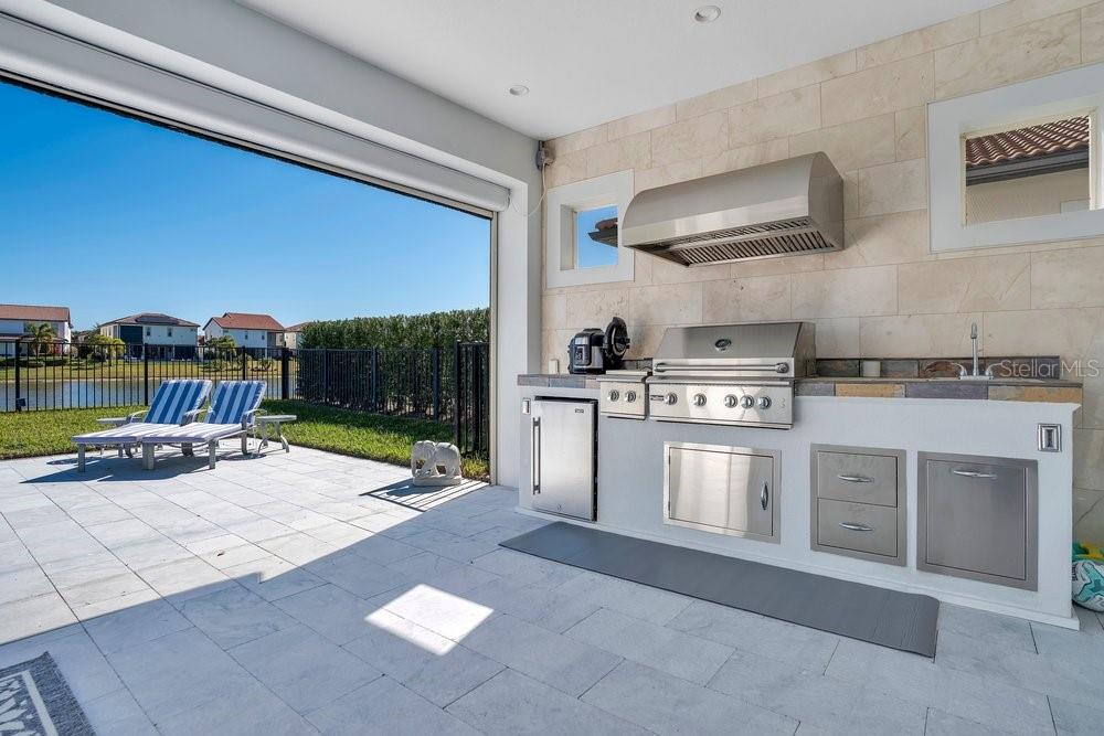 Lighting, Outdoor Grill, Outdoor Kitchen, Rain Gutters, Sidewalk, Sliding Doors